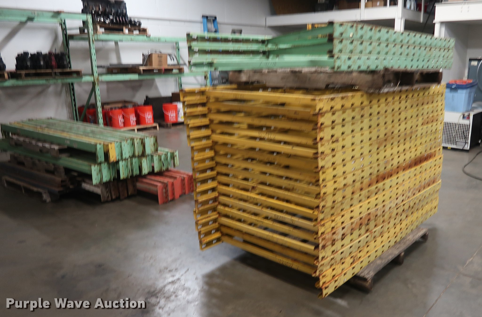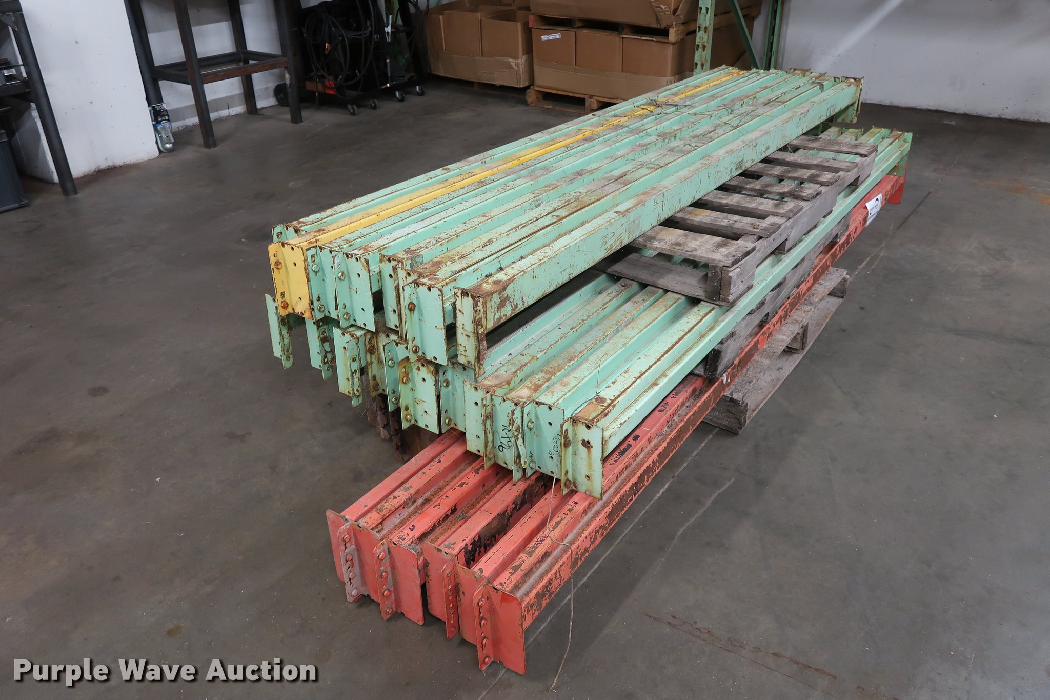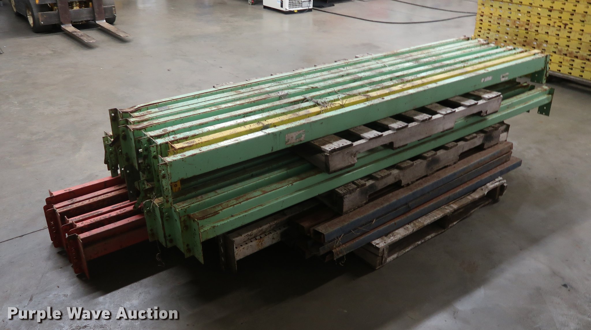 Purple Wave is selling a used Pallet Racking in Missouri. This item is a Pallet racking with the following: (18) uprights, 6'L x 42", (20) 8' crossbeams, (6) 10' crossbeams, (4) 7' crossbeams
