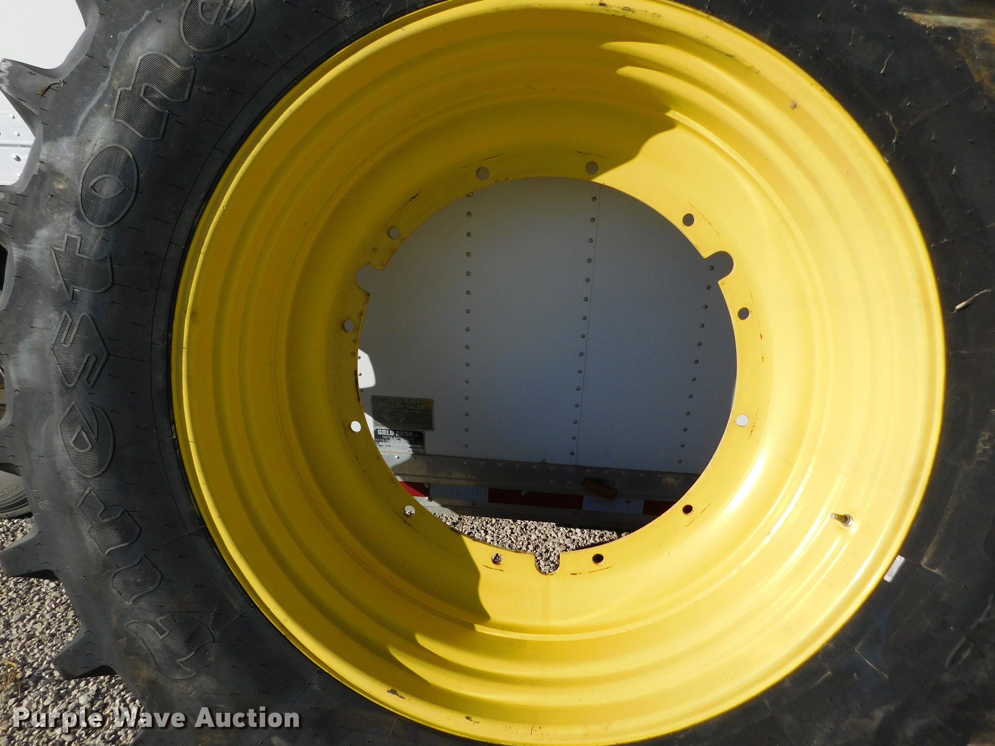 Purple Wave is selling a used Industrial Tires or Tracks in Kansas. This item is a (4) Firestone 520/85R46 Deep Tread tires with the following: (2) 10 lug inner wheels, (2) 12 lug outer wheels
