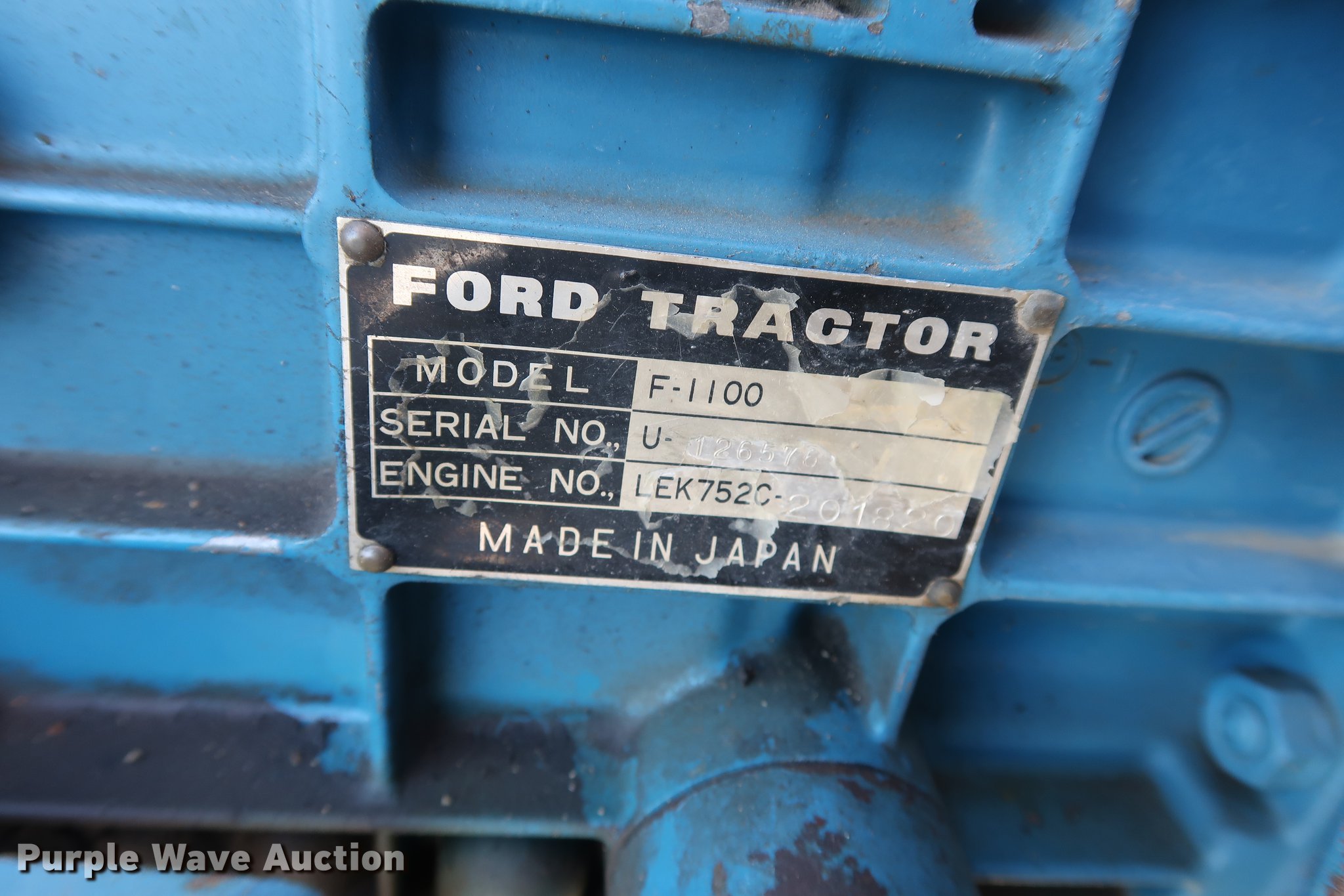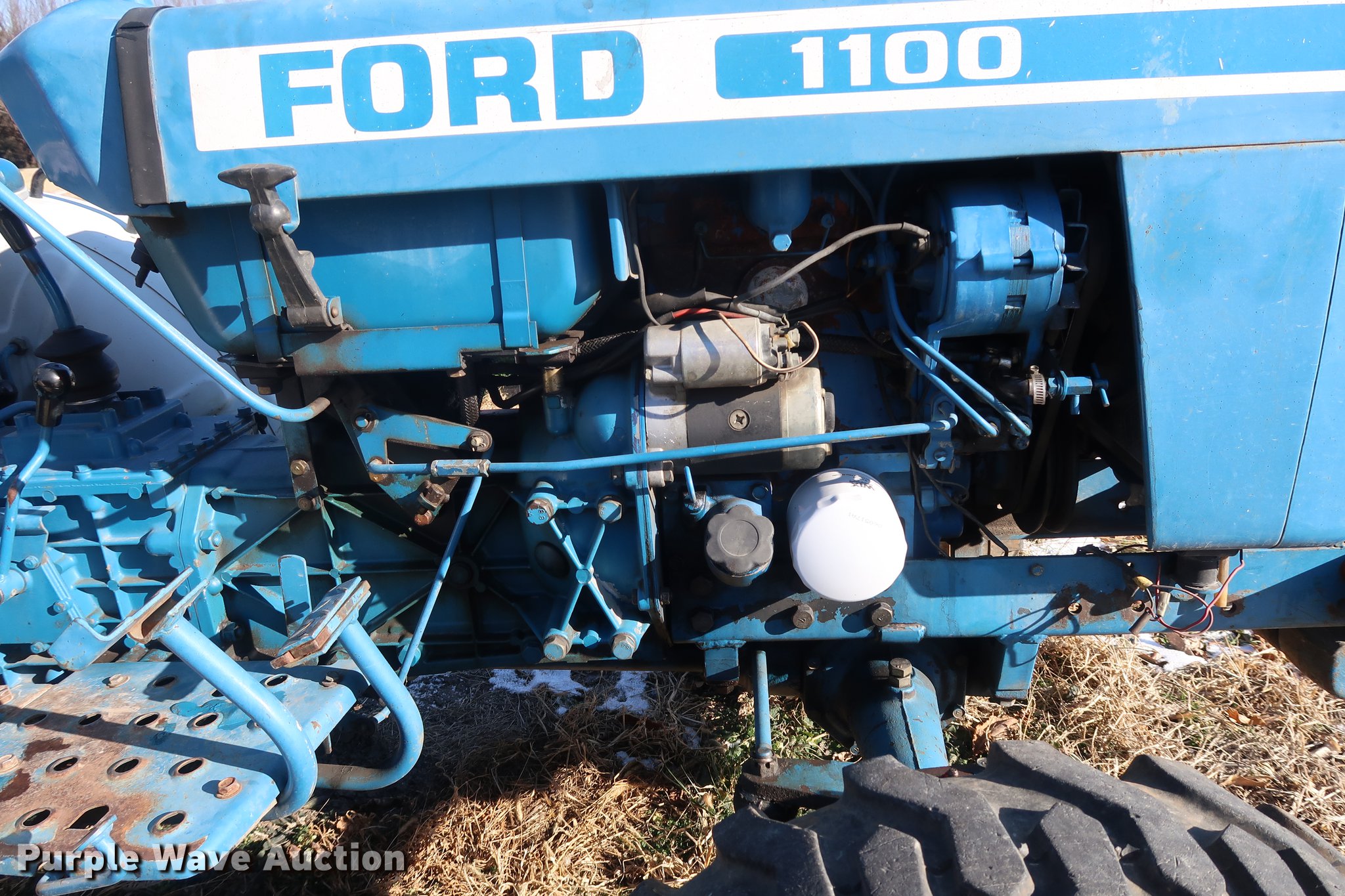 Purple Wave is selling a used Tractor in Missouri. This item is a Ford 1100 MFWD tractor with the following: Two cylinder diesel engine, Five speed manual transmission, Three point, Top link, 540 PTO, Suitcase weights, 23x8.50-12 front tires, 8-16 rear tires, Serial 126576