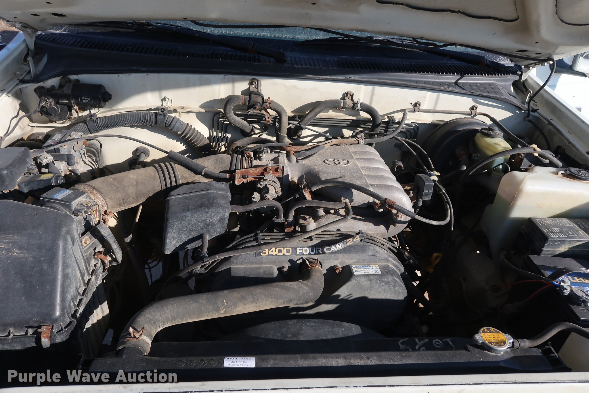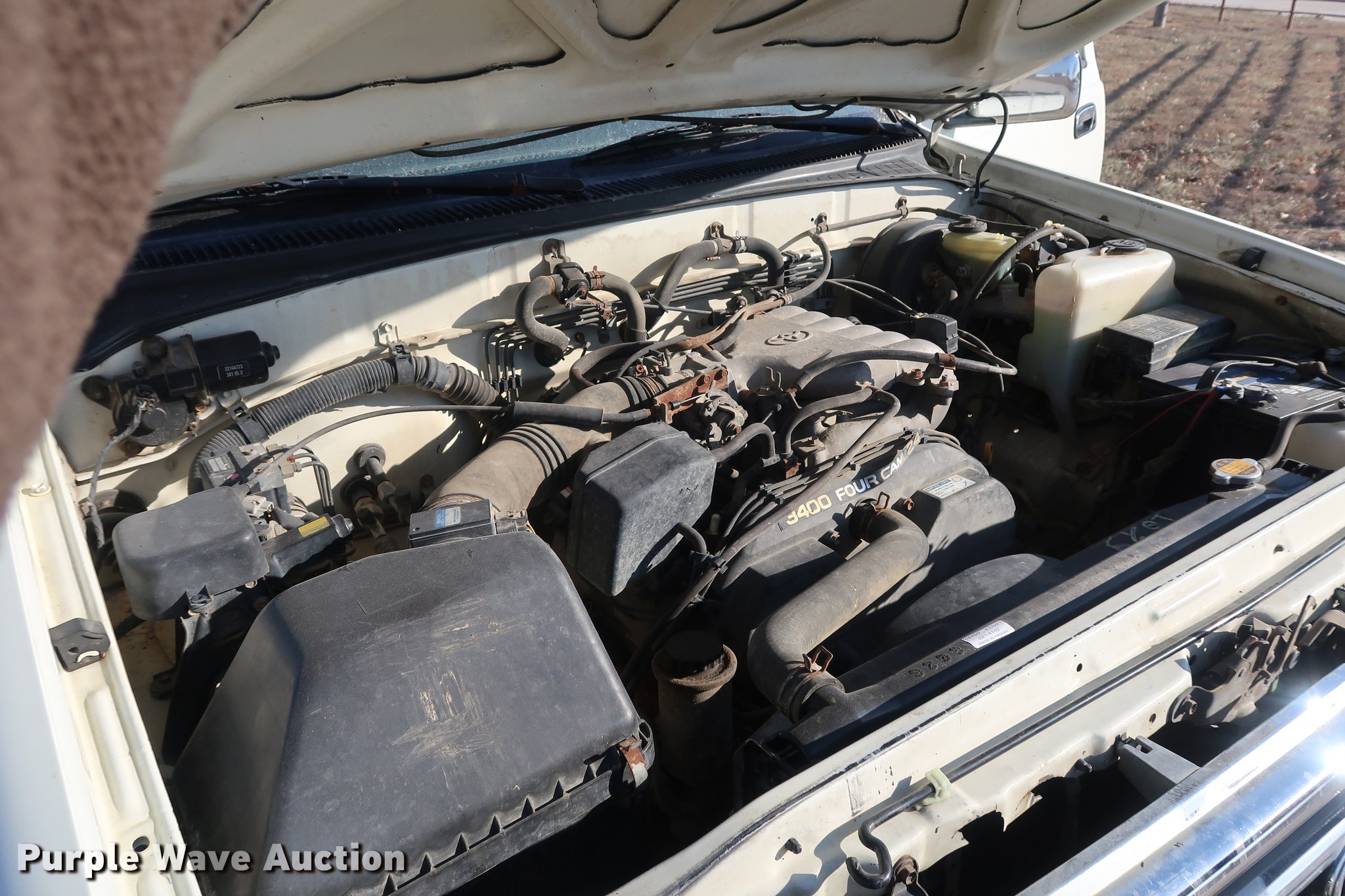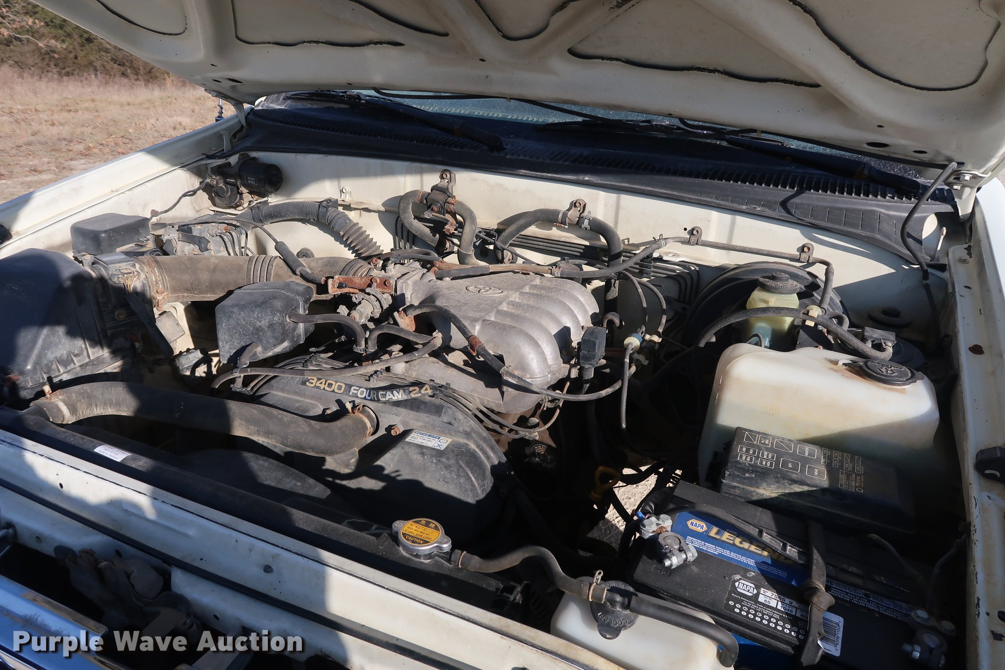 Purple Wave is selling a used 1/2 Ton Pickup or Van in Missouri. This item is a 1996 Toyota T100 SR5 XtraCab pickup truck with the following: 220,540 miles on odometer, 3.4L V6 DOHC 24V gas engine, Five speed manual transmission, Four wheel drive, AC and heat, AM/FM/CD, Power windows, locks, and mirrors, Cloth interior, Auxiliary fuel tank, Currently plumbed to engine, Receiver hitch, Trailer wiring, 33x12.50R15 tires, Factory fuel tank needs replaced, Cracked windshield