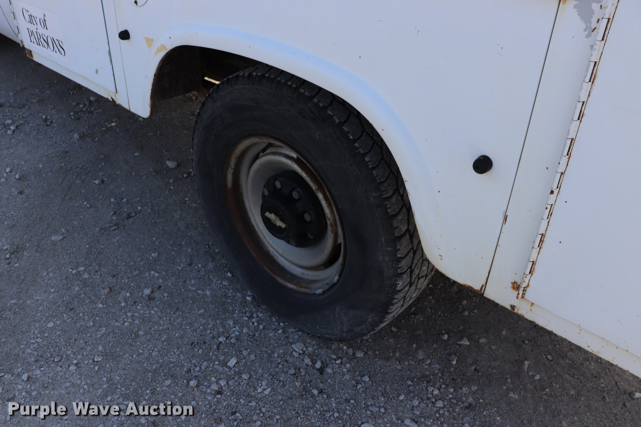 Purple Wave is selling a used 3/4 or 1 Ton Pickup or Van in Kansas. This item is a 1996 Chevrolet Cheyenne 2500 utility bed truck with the following: 85,973 miles on odometer, 5.7L V8 OHV 16V gas engine, Automatic transmission, AC and heat, Cruise, AM/FM, Manual windows and locks, Cloth interior, Knapheide 696FC1 utility bed, Serial 770924-863554, Receiver hitch, 245/75R16 tires
