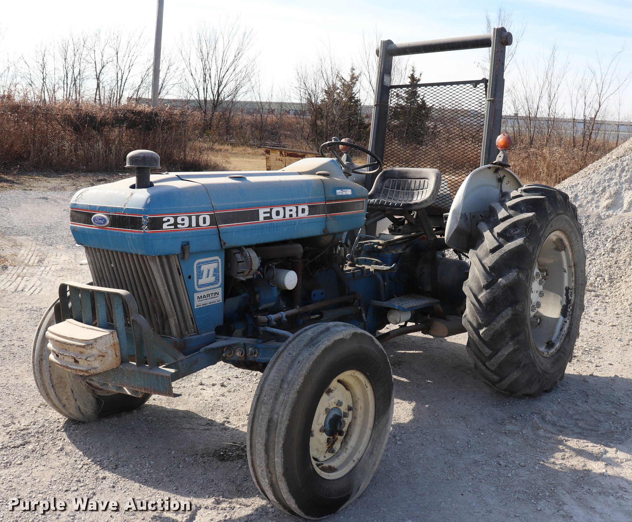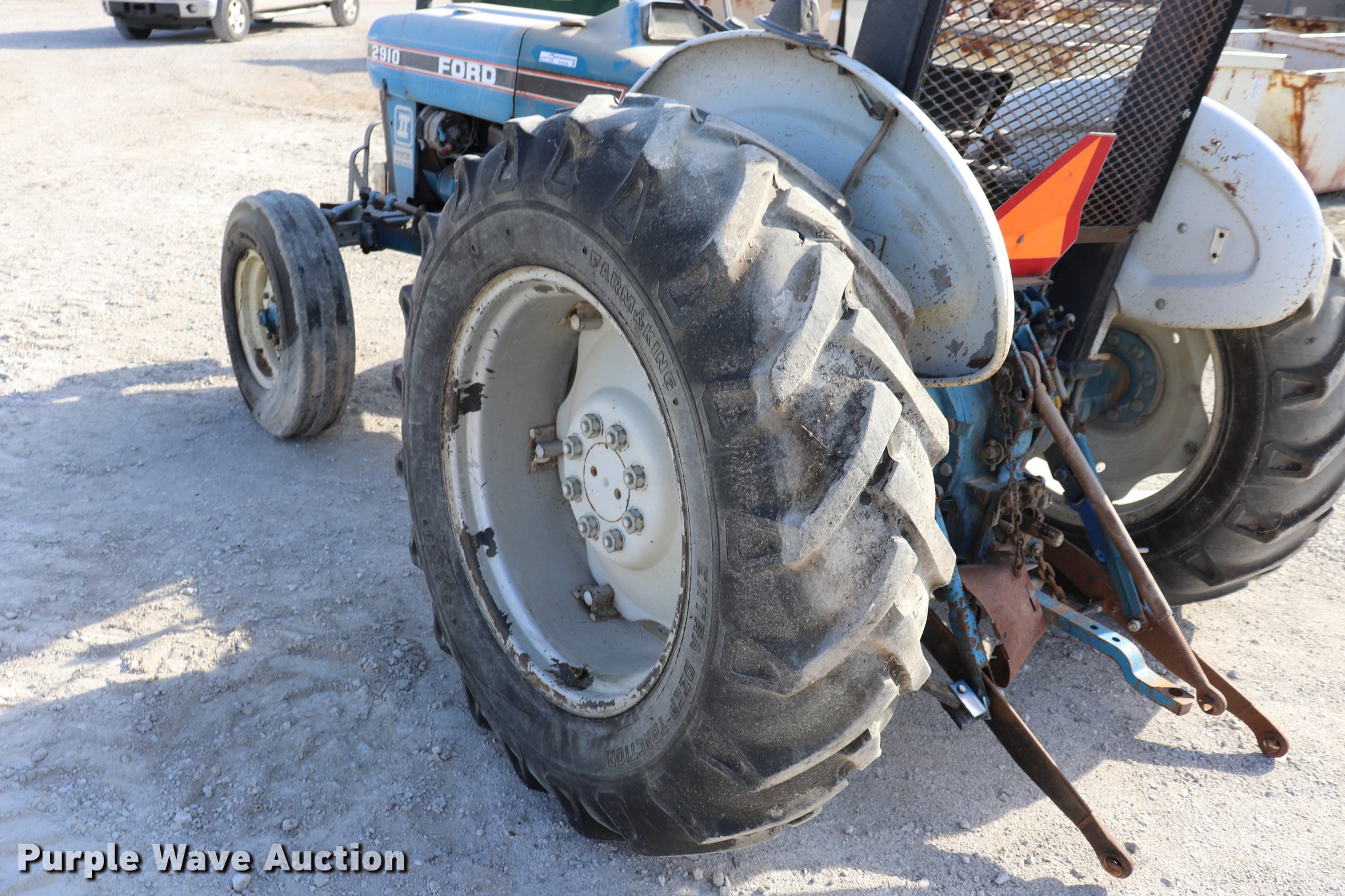 Purple Wave is selling a used Tractor in Kansas. This item is a Ford 2910 tractor with the following: 3,724 hours on meter, Three cylinder diesel engine, Serial 40, Manual transmission, 8F-2R, Suspension seat, Three point, 540 PTO, One rear hydraulic remote set, 7.50-16 front tires, 13.6-28 rear tires, Serial C766265
