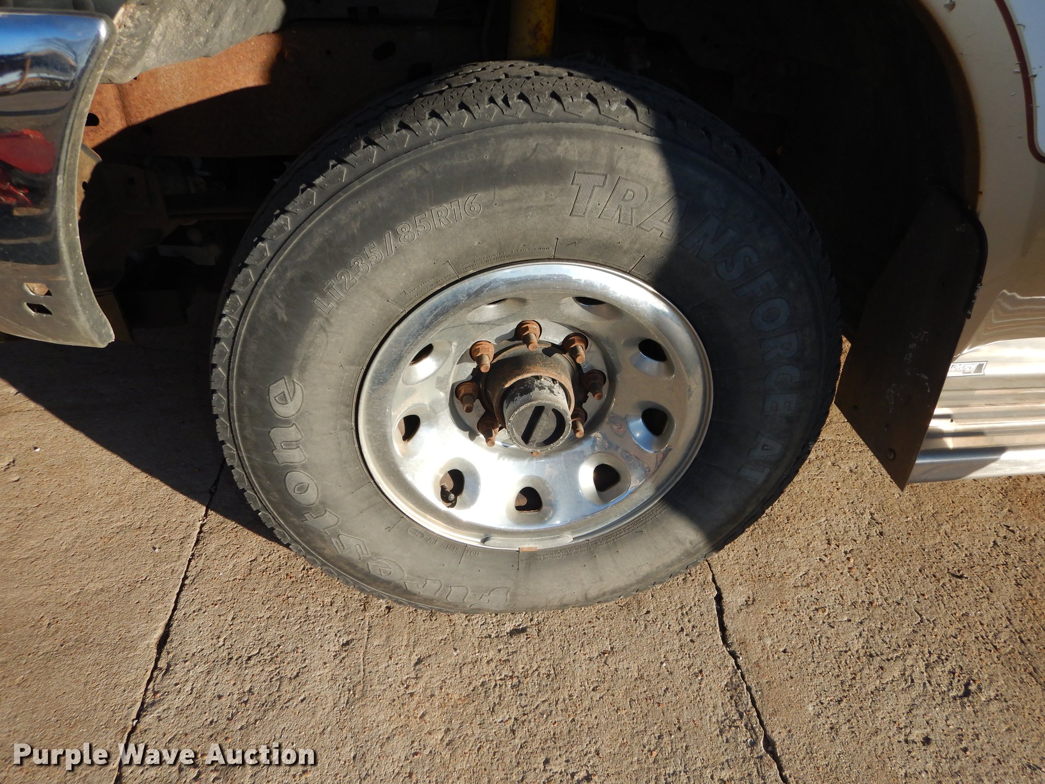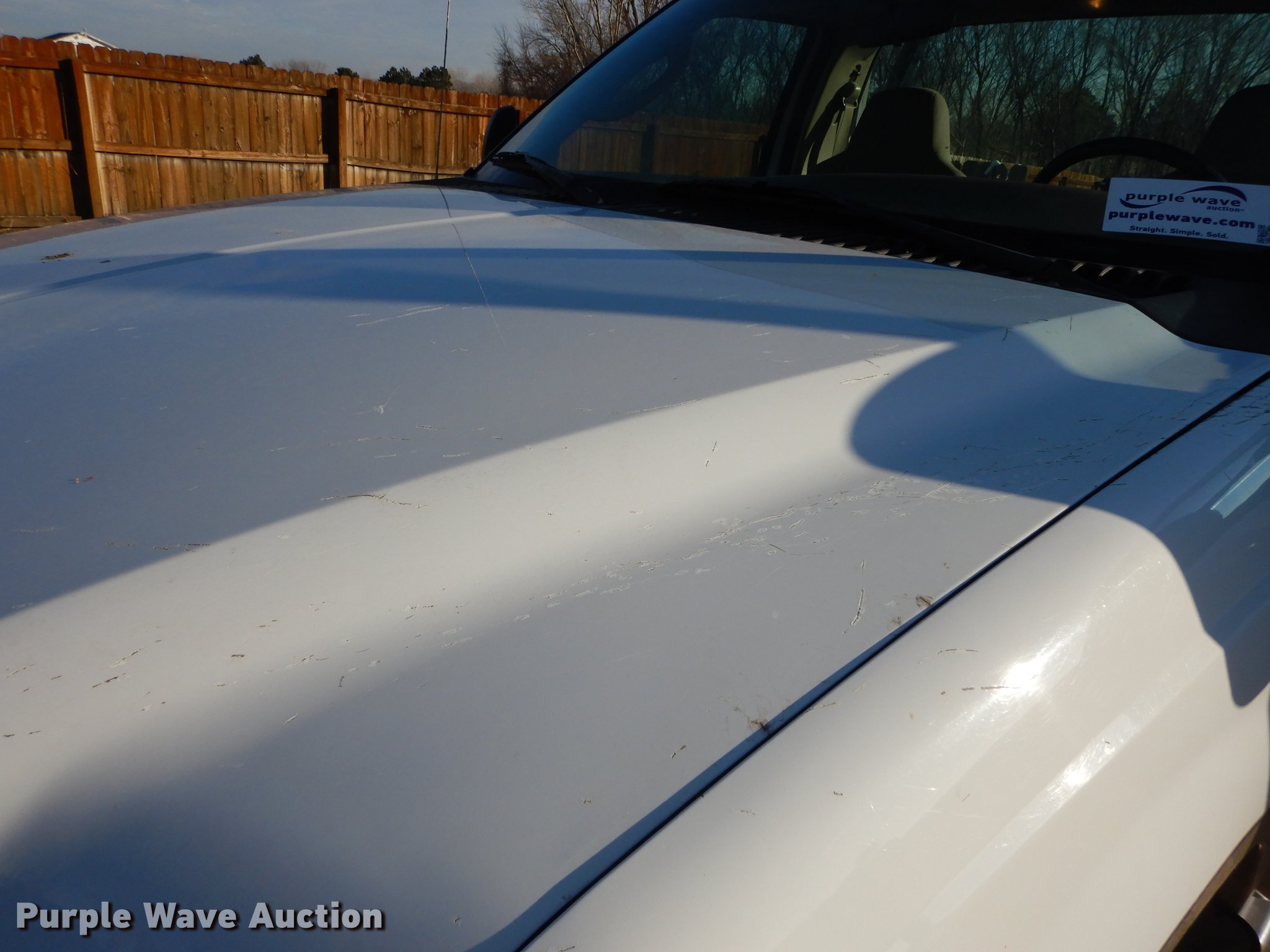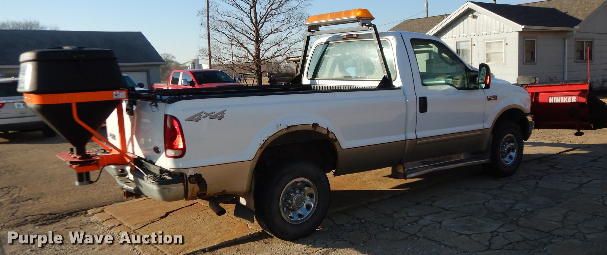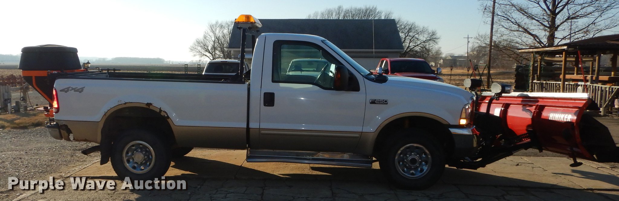 Purple Wave is selling a used 3/4 or 1 Ton Pickup or Van in Kansas. This item is a 2004 Ford F250 XLT Super Duty pickup truck with the following: 178,047 miles on odometer, 5.4L V8 SOHC 16V gas engine, Automatic transmission, AC and heat, Tilt, Cruise, AM/FM/CD, Power locks, windows and mirrors, Heated mirrors, Cloth interior, 8' Hiniker snow plow, 10' overall, 1' extensions, Salt Dogg TGS01B spreader, Bed liner, Headache rack, Strobe light, Running boards, Trailer wiring, Receiver hitch, 235/85R16 tires, Additional alternator