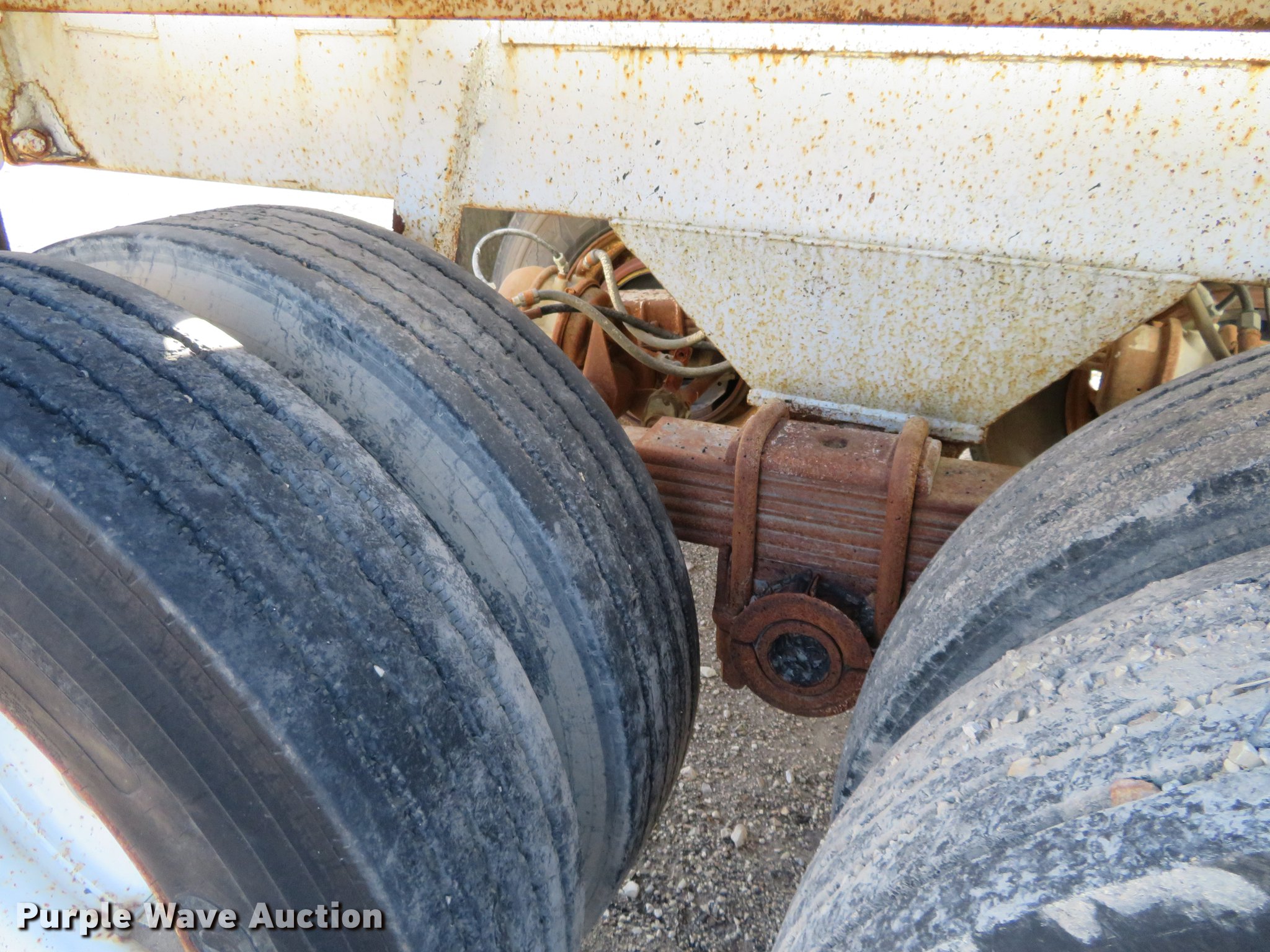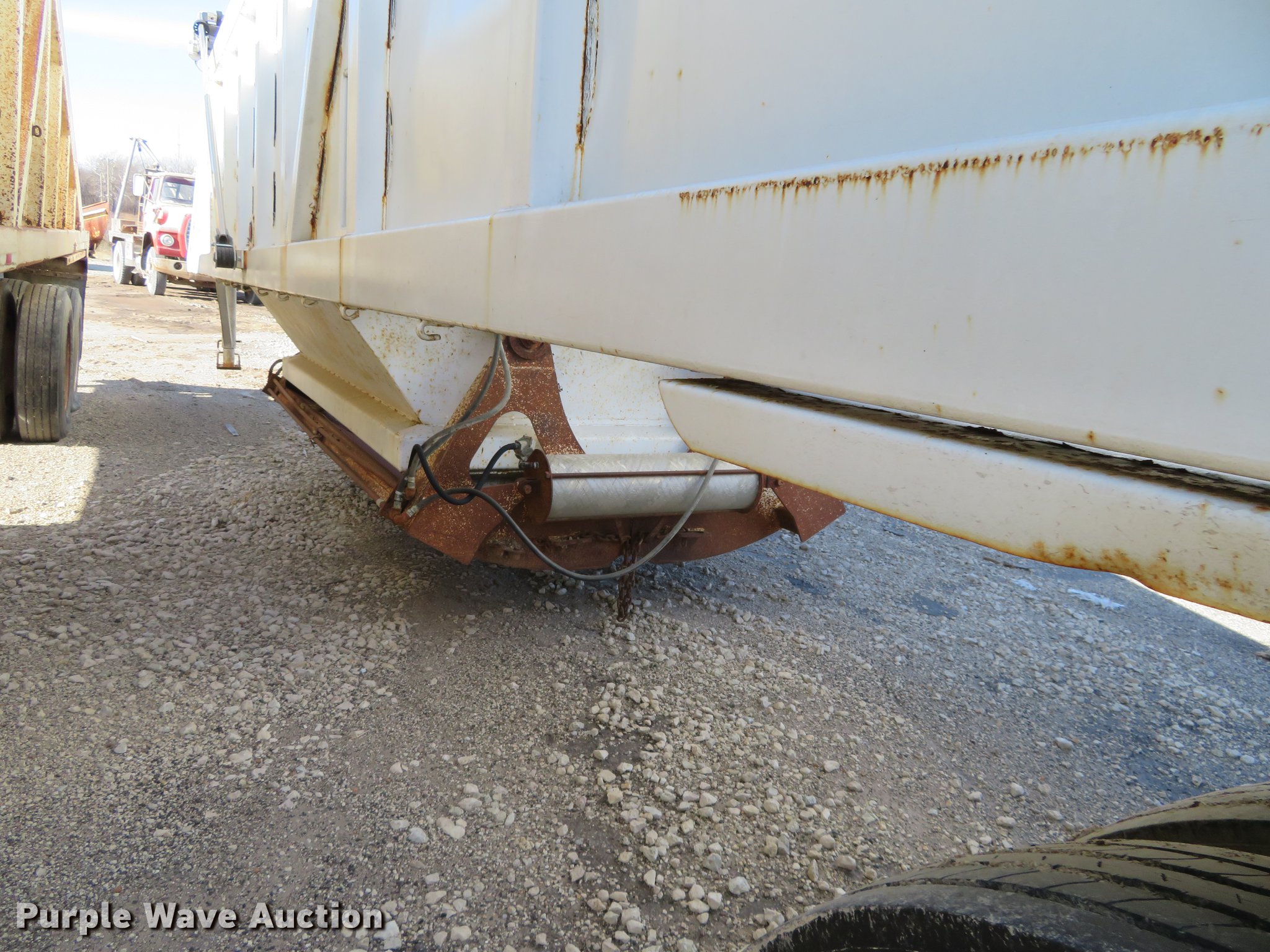 Purple Wave is selling a used Bottom Dump Trailer in Kansas. This item is a 1987 Ranch bottom dump trailer with the following: 40'L, Steel construction, Air operated gate, Electric tarp, Fifth wheel plate, Tandem axle, Spring suspension, Air brakes, 11R22.5 tires, GVWR 70,000 lbs