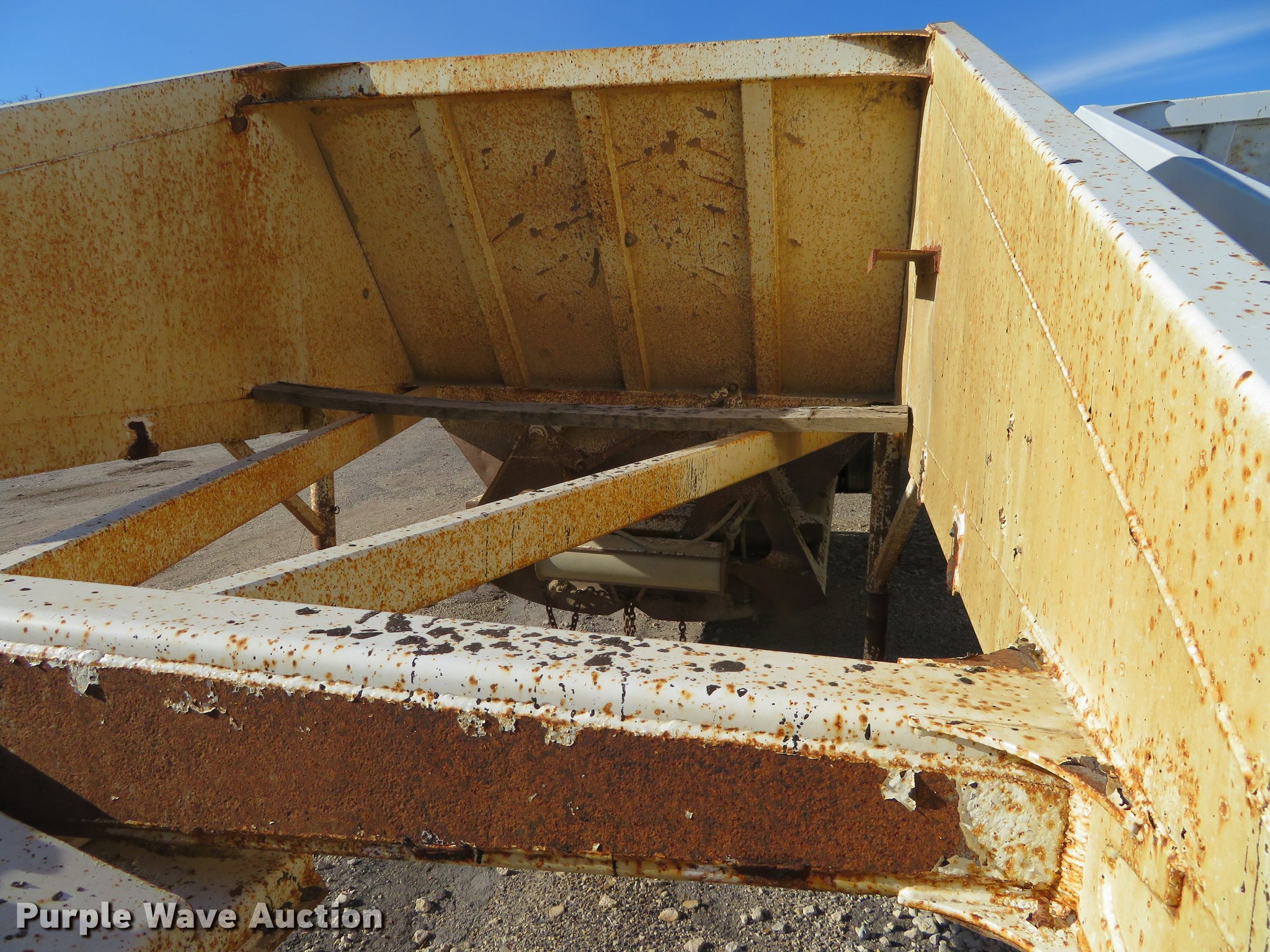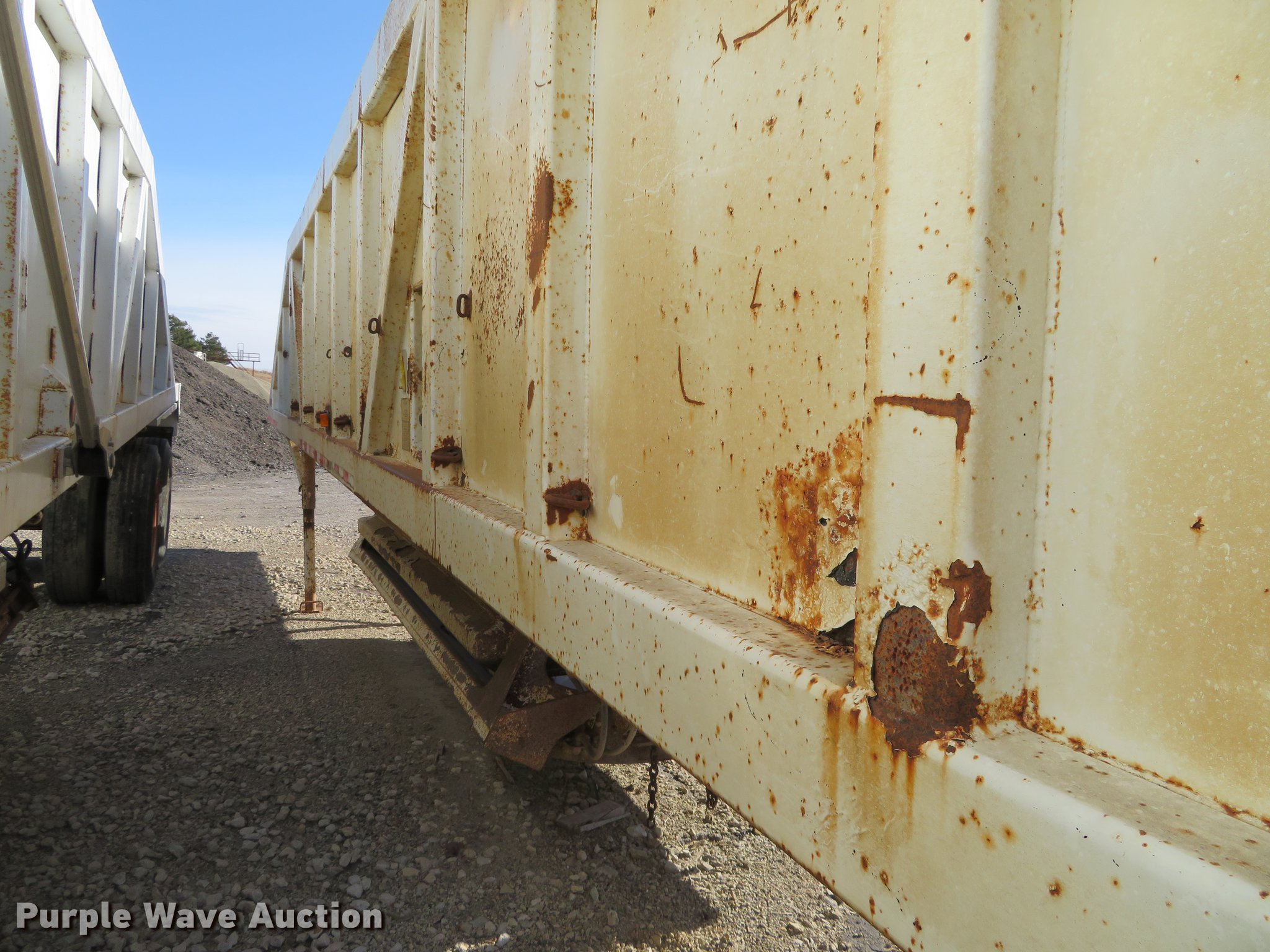 Purple Wave is selling a used Bottom Dump Trailer in Kansas. This item is a 1994 Ranch bottom dump trailer with the following: 40'L, Steel construction, Air operated gate, Fifth wheel plate, Tandem axle, Spring suspension, Air brakes, 11R24.5 tires, GVWR 70,000 lbs