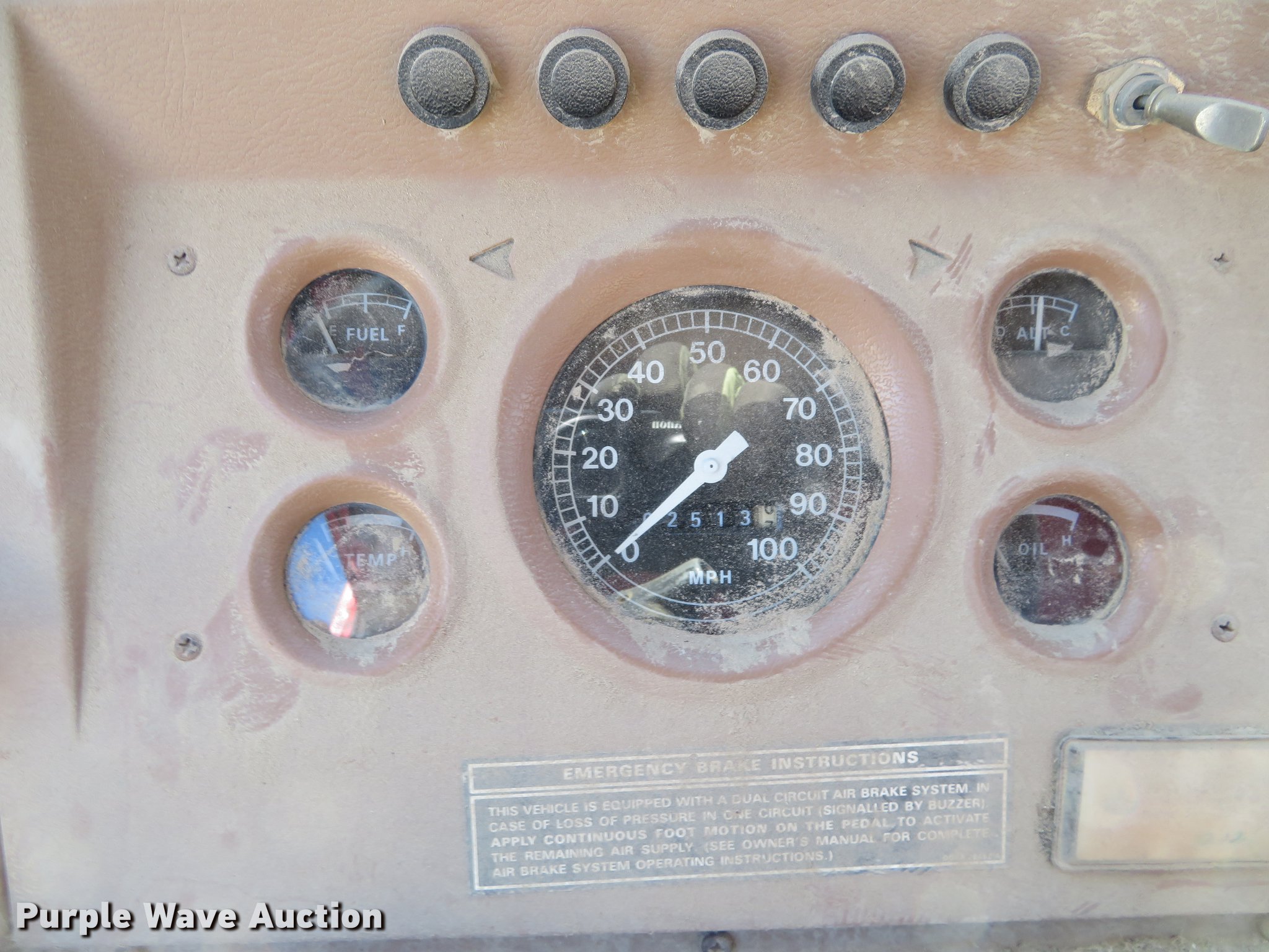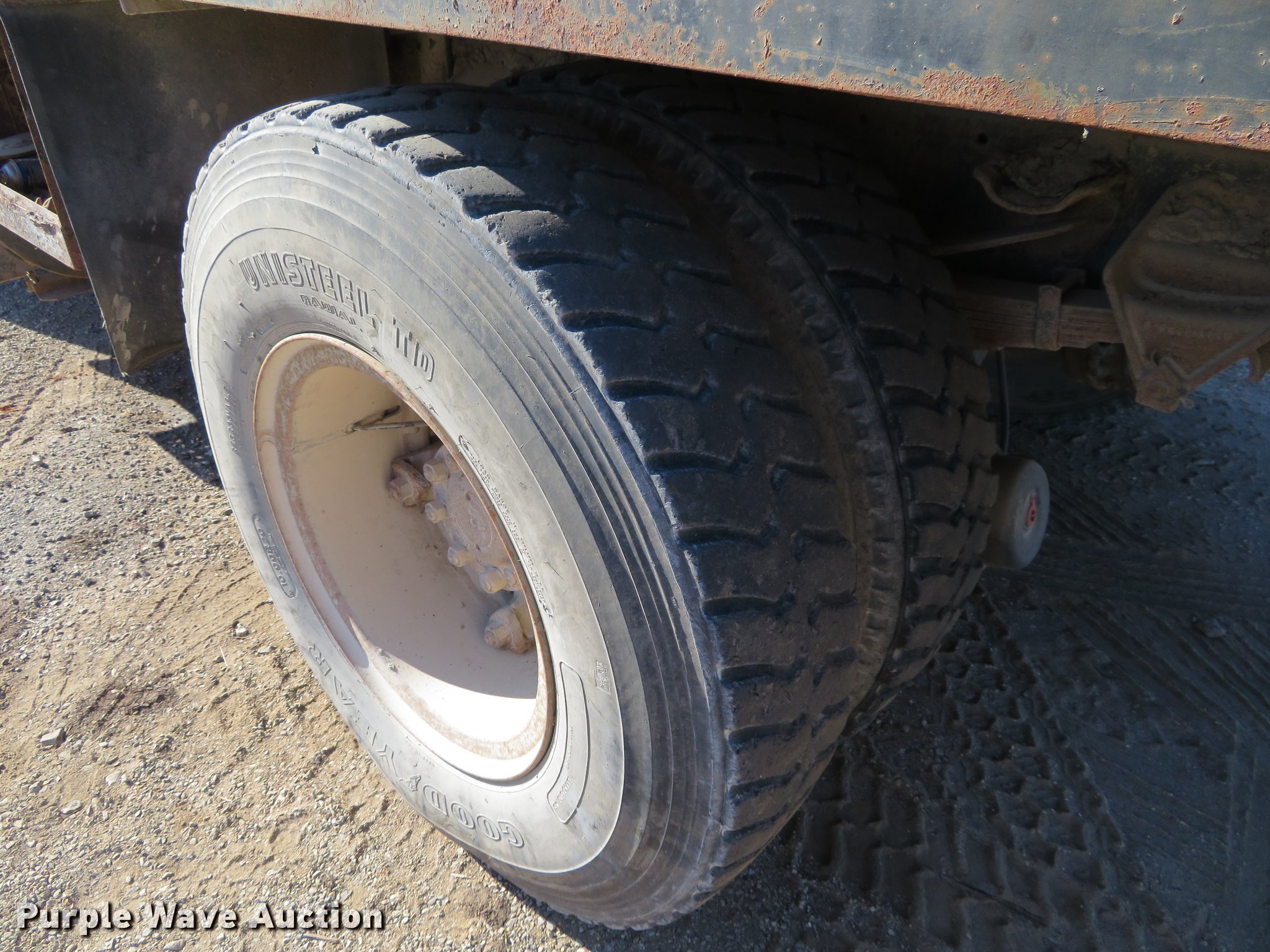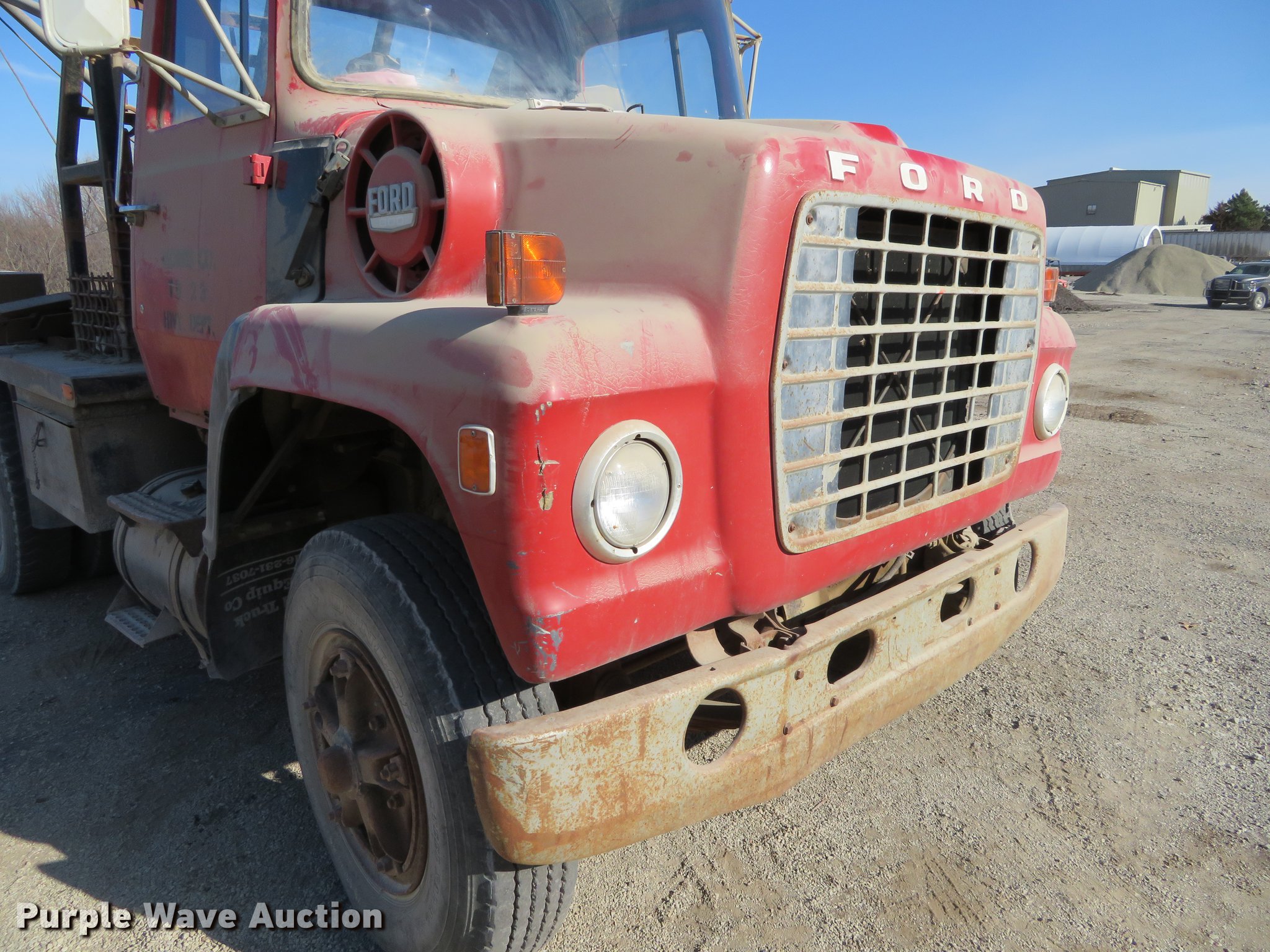 Purple Wave is selling a used Truck Tractor in Kansas. This item is a 1977 Ford 800 flatbed truck with the following: 92,513 miles on odometer, Eight cylinder gas engine, Five speed manual transmission, Two speed rear end, Single axle, Heat, AM/FM, Suspension seat, 10'L flatbed, Tulsa winch, Rolling tailboard, Gin polesSpring suspension, Air brakes, 10.00R20 tires