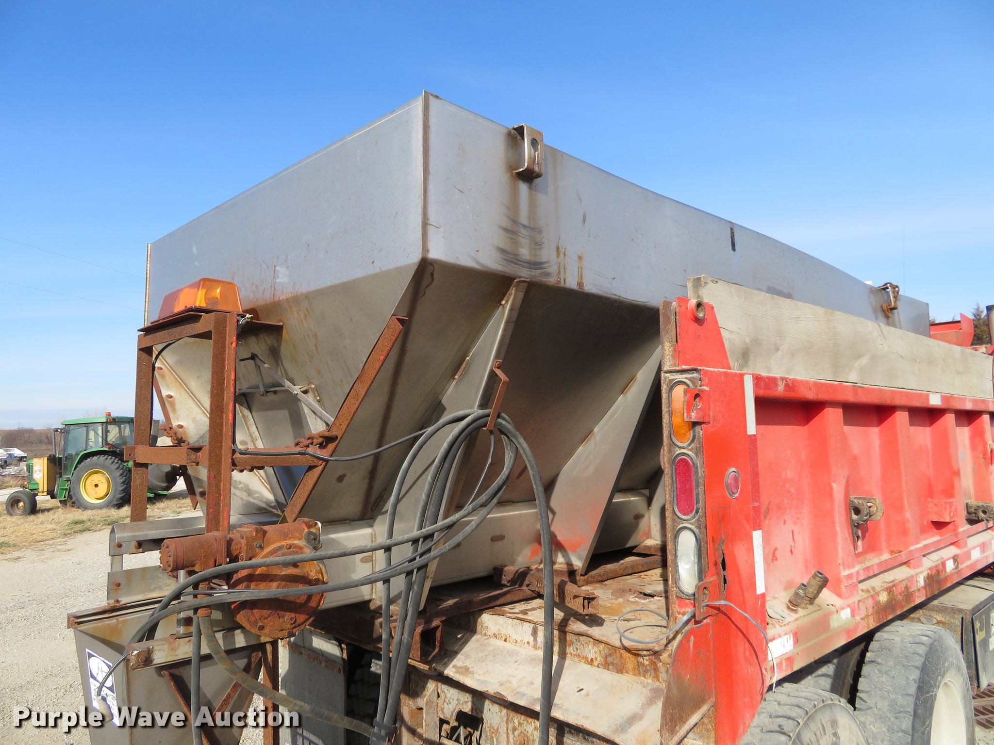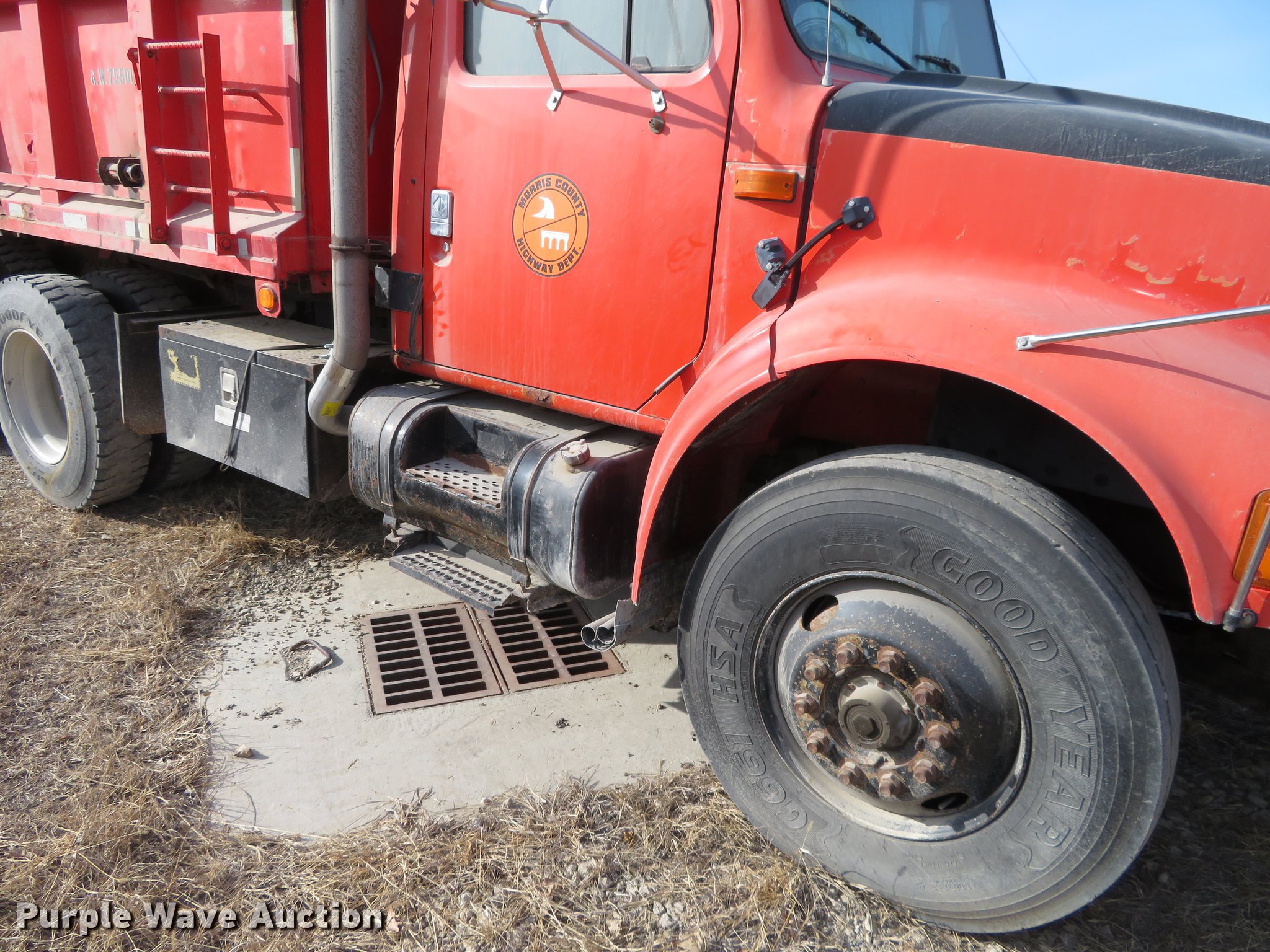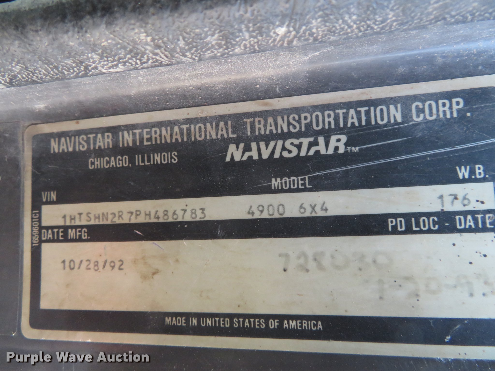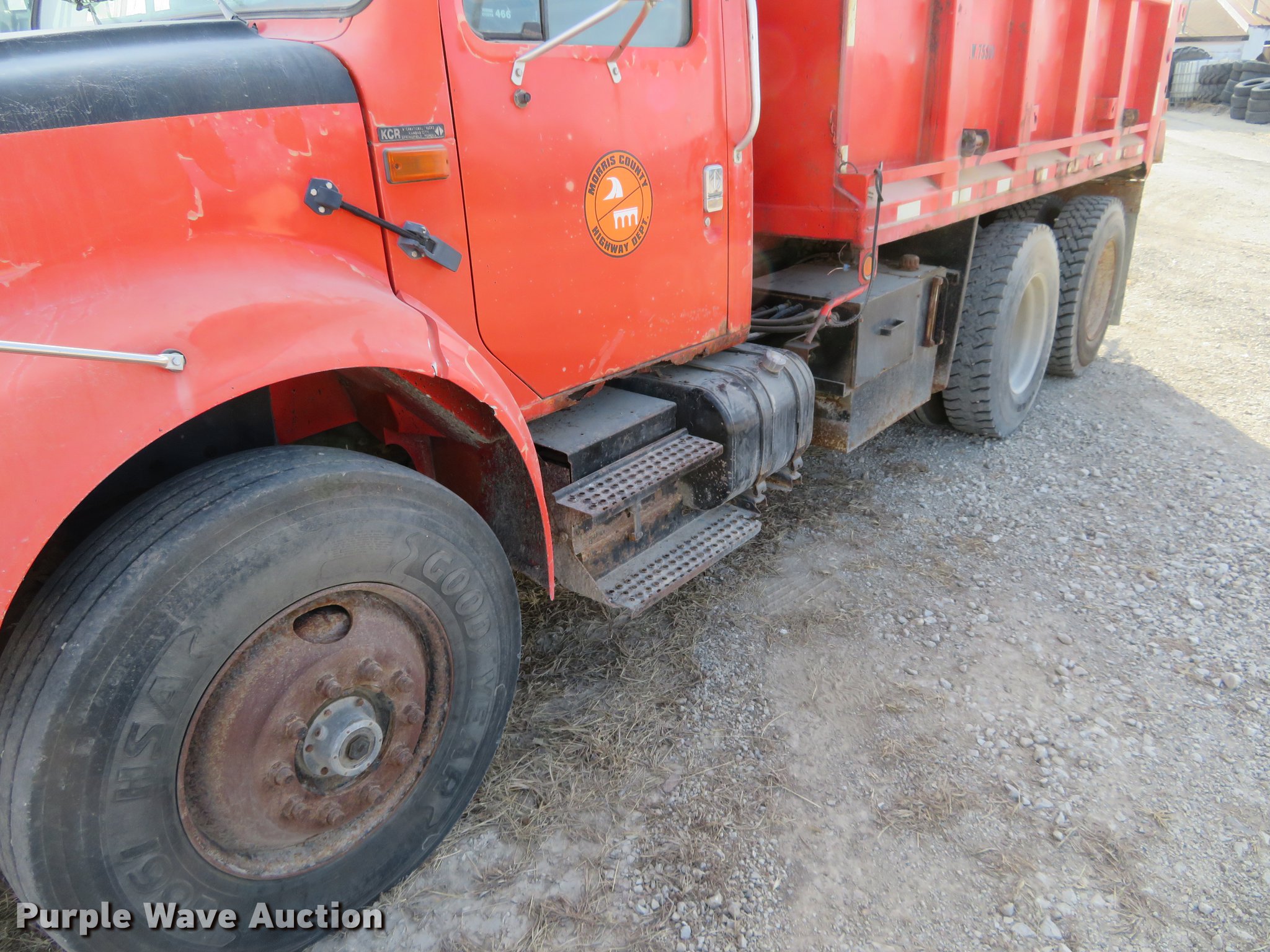 Purple Wave is selling a used Construction Dump Truck in Kansas. This item is a 1993 International 4900 dump truck with the following: 262,158 miles on odometer, 15,980 hours on meter, International DT466 7.6L L6 turbo diesel engine, Automatic transmission, Tandem axle, Heat, Cruise, Air suspension seat, 13'L steel dump bed, Schmidt 11'W snow plow, Stainless steel spreader, 13'L, Spring suspension, 11R22.5 tires