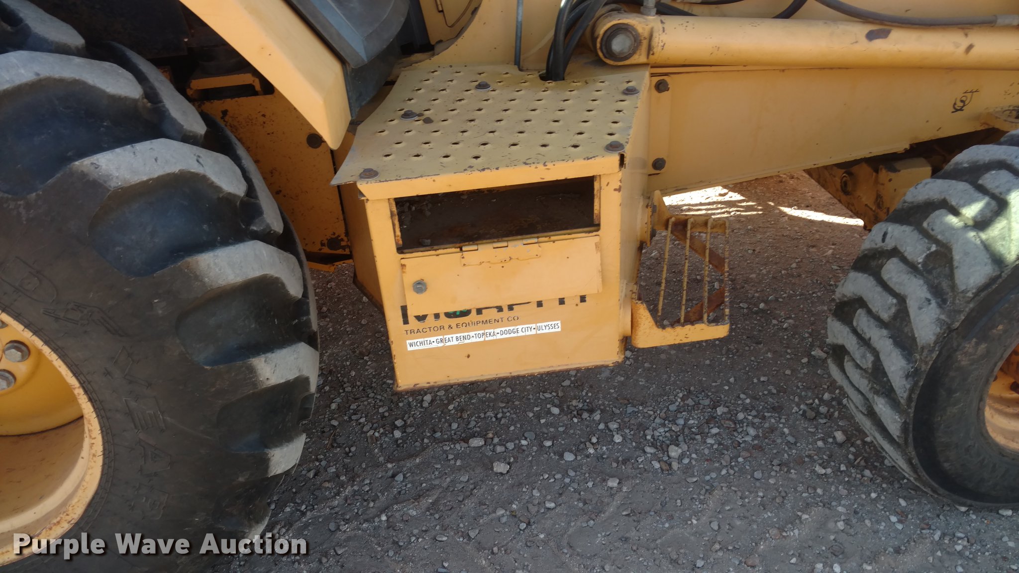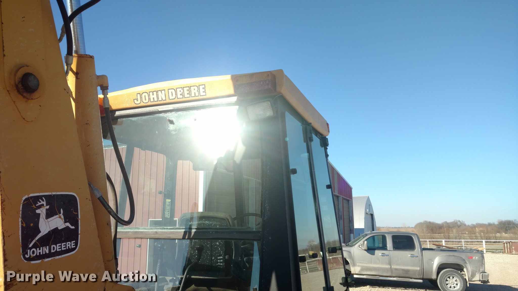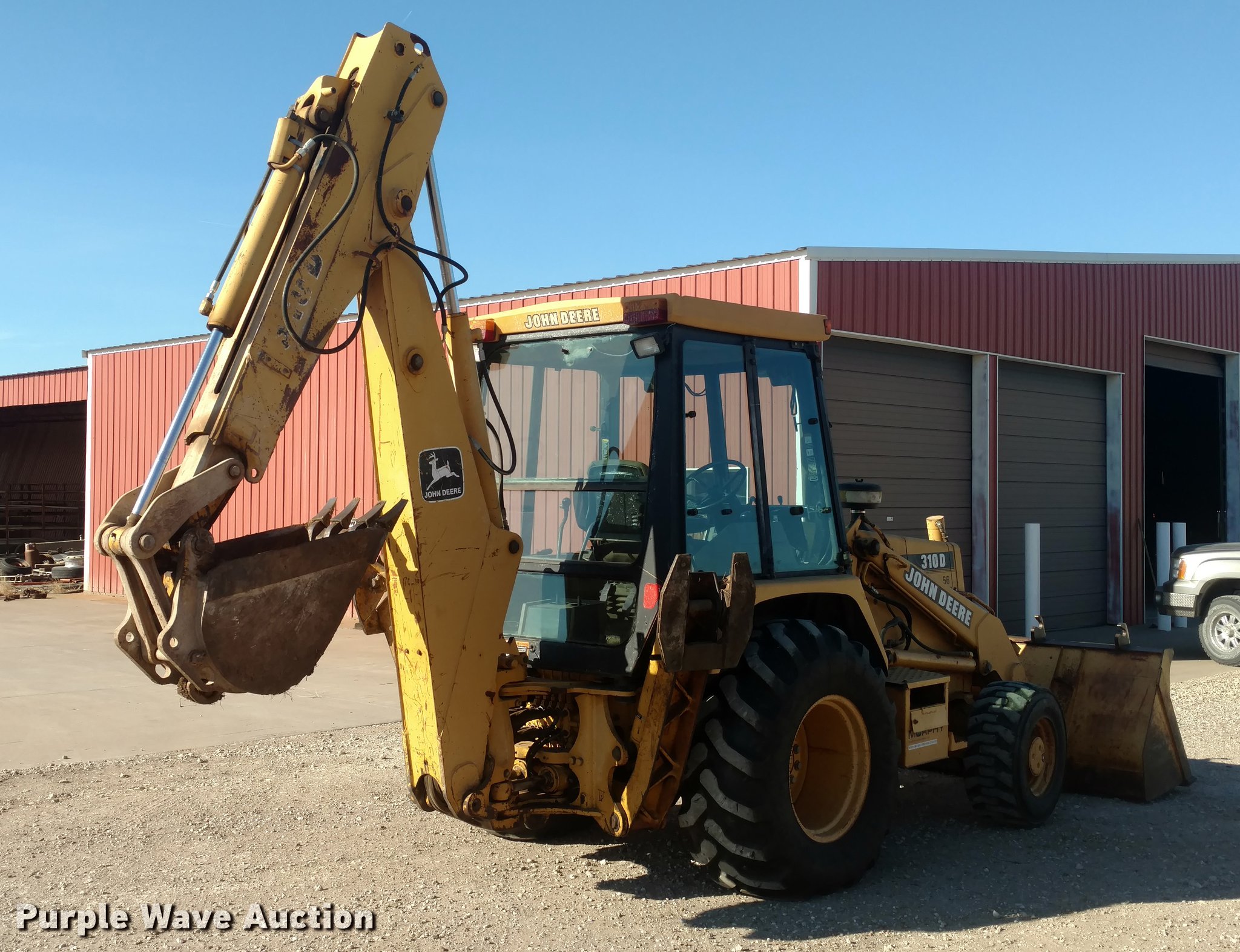 Purple Wave is selling a used Tractor Loader Backhoe in Kansas. This item is a 1995 John Deere 310D backhoe with the following: 3,531 hours on meter, John Deere four cylinder diesel engine, 74 HP, Shuttle shift transmission, 4F-4R gears, EROPS, Heat, Suspension seat, Four stick backhoe controls, Wipers, Front and rear work lights, 92"W loader bucket, 1 cu. yd. capacity, 18"W backhoe bucket, (4) teeth, 305/70D16.5 front tires, 19.5-24 rear tires, Serial T0310DC814932