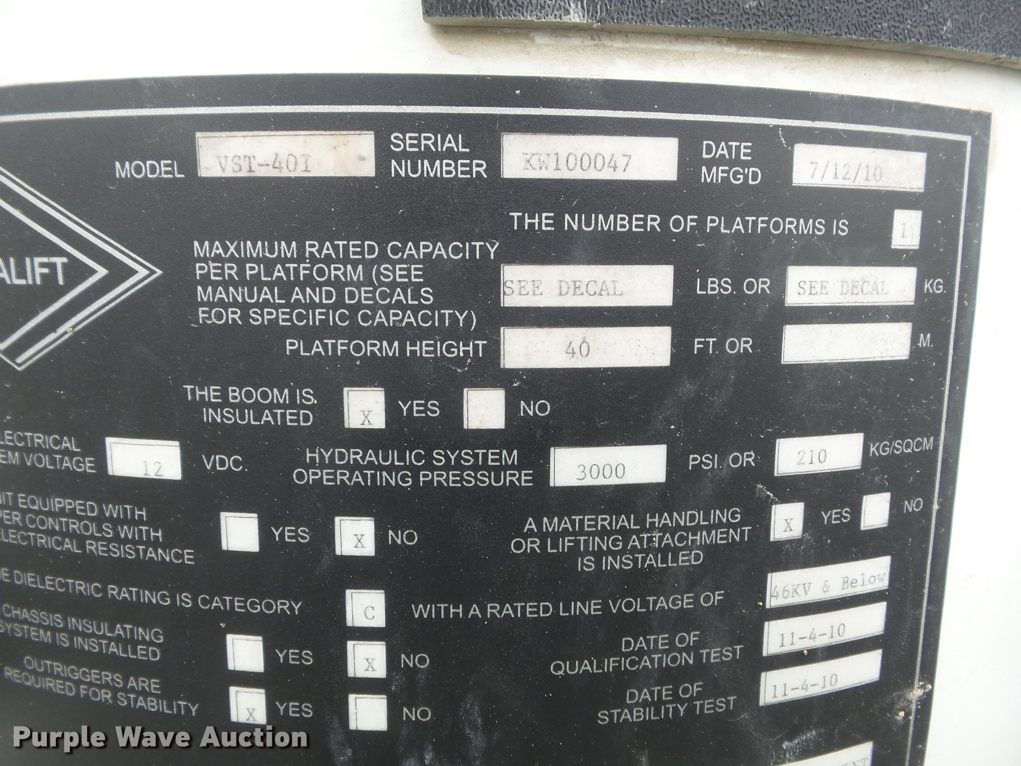 - 2010 Versalift VST-40I boom