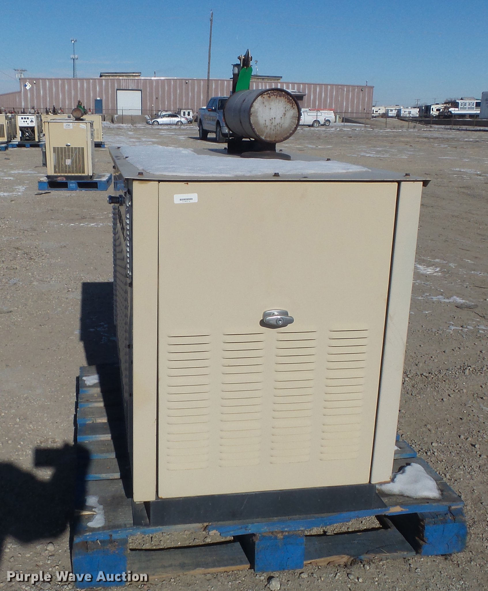 Purple Wave is selling a used Generator Set in Illinois. This item is a 1998 Generac 00754-5 generator with the following: 965 hours on meter, Fiat 97390 1.6L four cylinder propane engine, Control panel, 15,000 watts, 15 kVA, 15 kW, Single phase, 120/240V, 62.5 continous amps at 240V, 60 Hz, Automatic transfer switch, 200 amps, Skid mounted, No battery, Serial 3047731