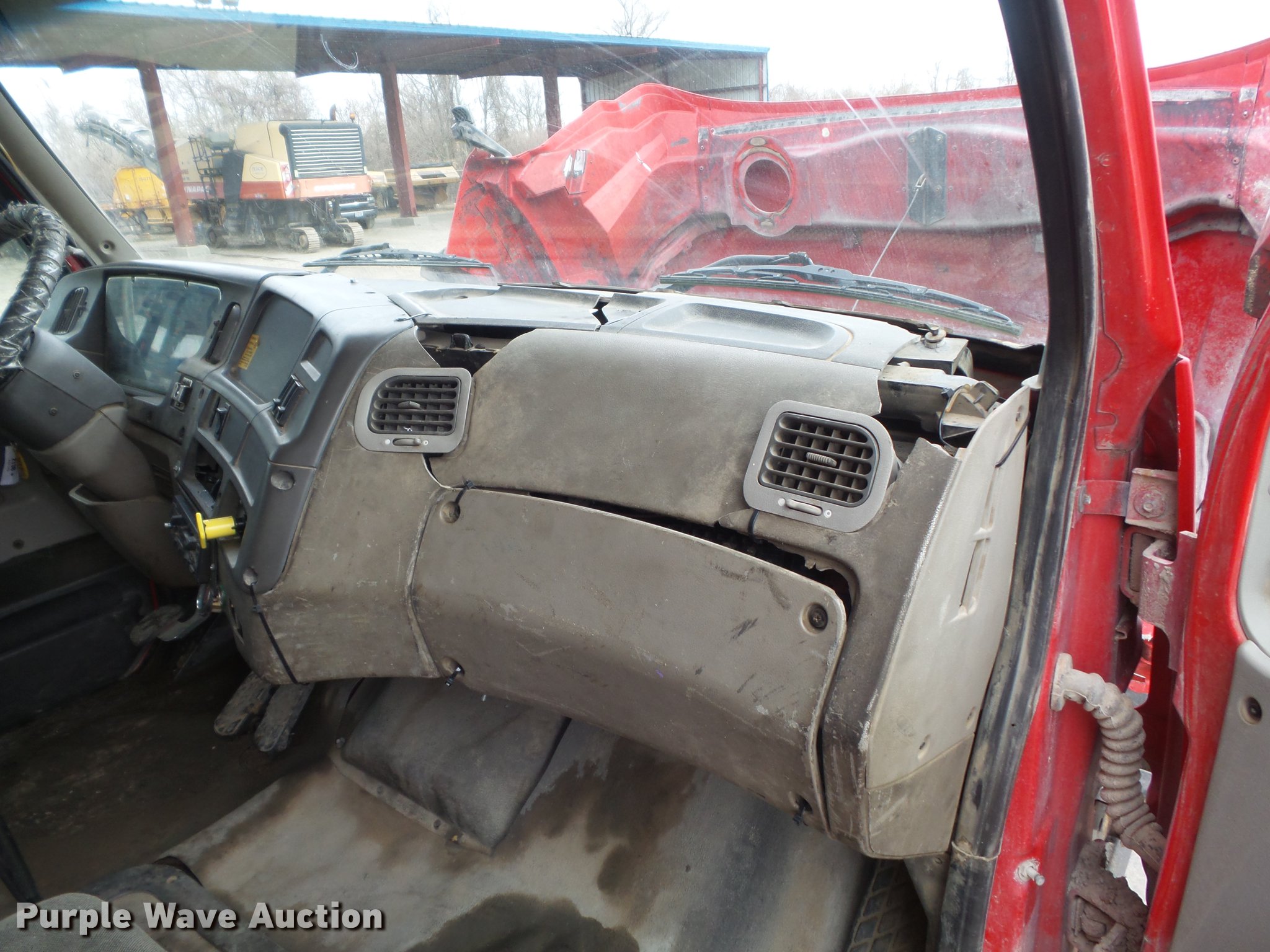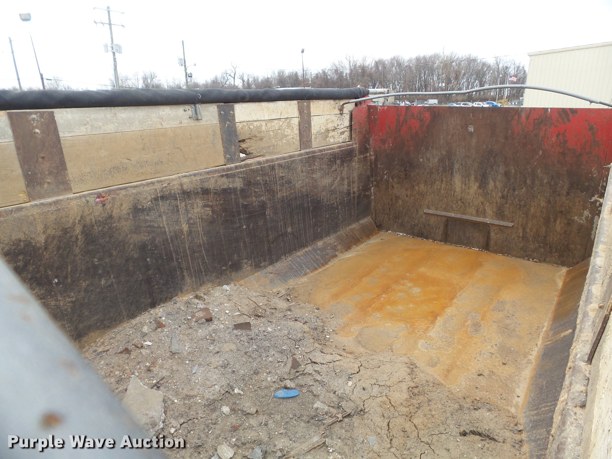 2002 Sterling LT8500 dump truck. 384,415 miles on odometer, Caterpillar 3126B 7.2L L6 turbo diesel engine 300 HP, Eaton Fuller Road Ranger RTO9MLL nine speed manual transmission, Tandem axle Tag lift axle, Inter-axle differential lock, AC and heat, AM/FM/cassette, Power windows, Heated mirrors, Air suspension seat, Air ride cab, Block heater, Exterior visor, Chrome bumper, PTO, Bibeau BFL-HD steel dump bed 15'L x 96"W, 42" side height, 18" side board height, Roll tarp, Air operated end gate, Single ram hoist, Single fuel tank, Spring over walking beam suspension, Air brakes, 315/80R22.5 front tires, 11R22.5 rear tires, 10R17.5 tag axle tires, GVWR 58,000 lbs, FAWR 18,000 lbs, IAWR 20,000 lbs, RAWR 20,000 lbs, Cracked windshield, Unit# 128. View repairs. Illinois title. 2FZHAWAK52AJ70027. Gasa Leasing Inc.. Pontoon Beach, IL 62040