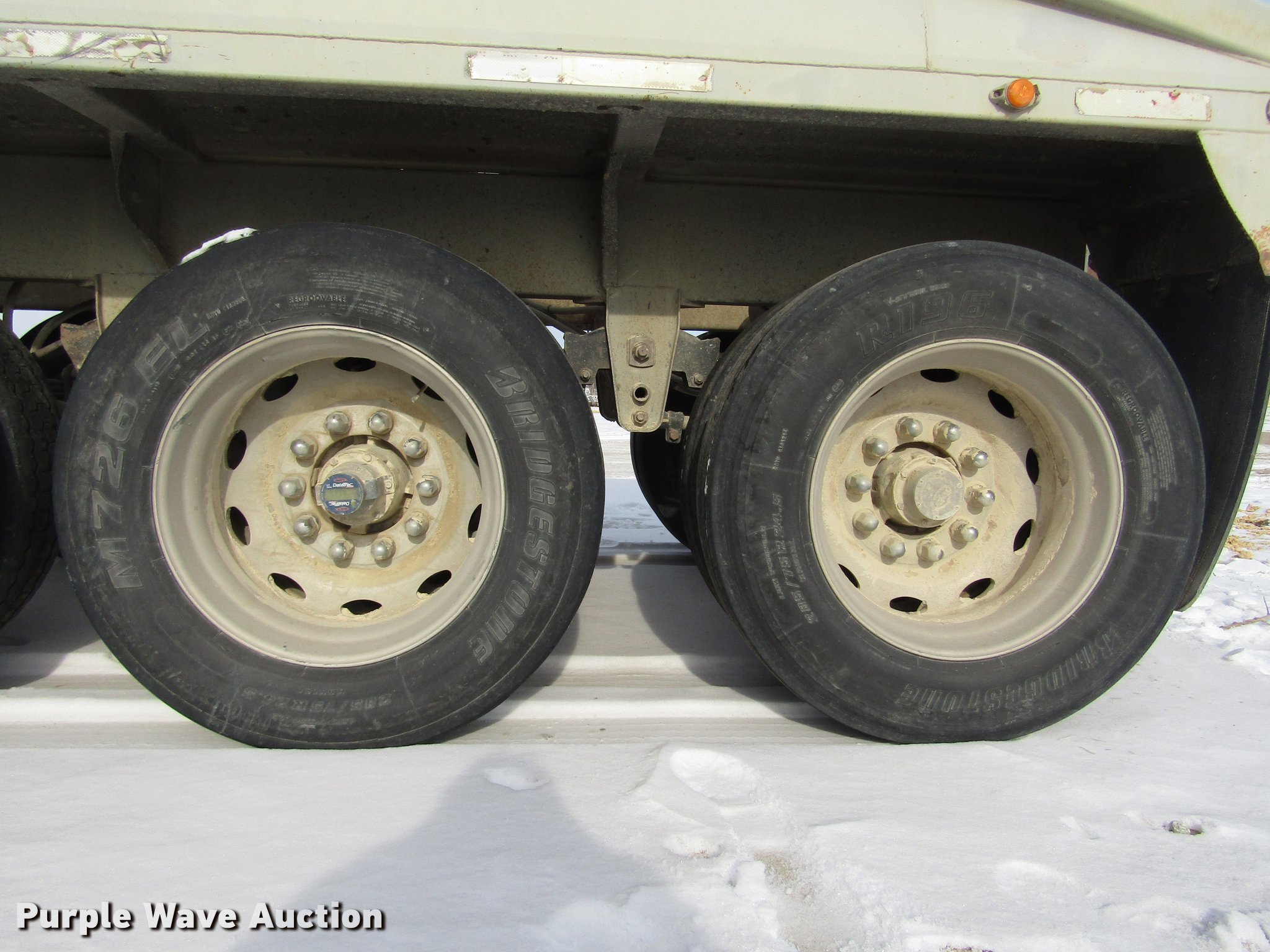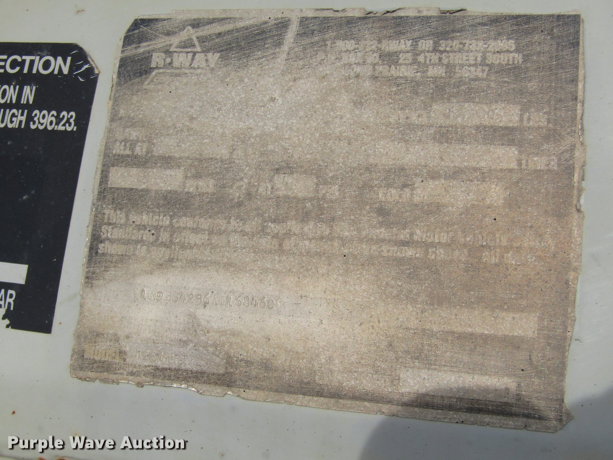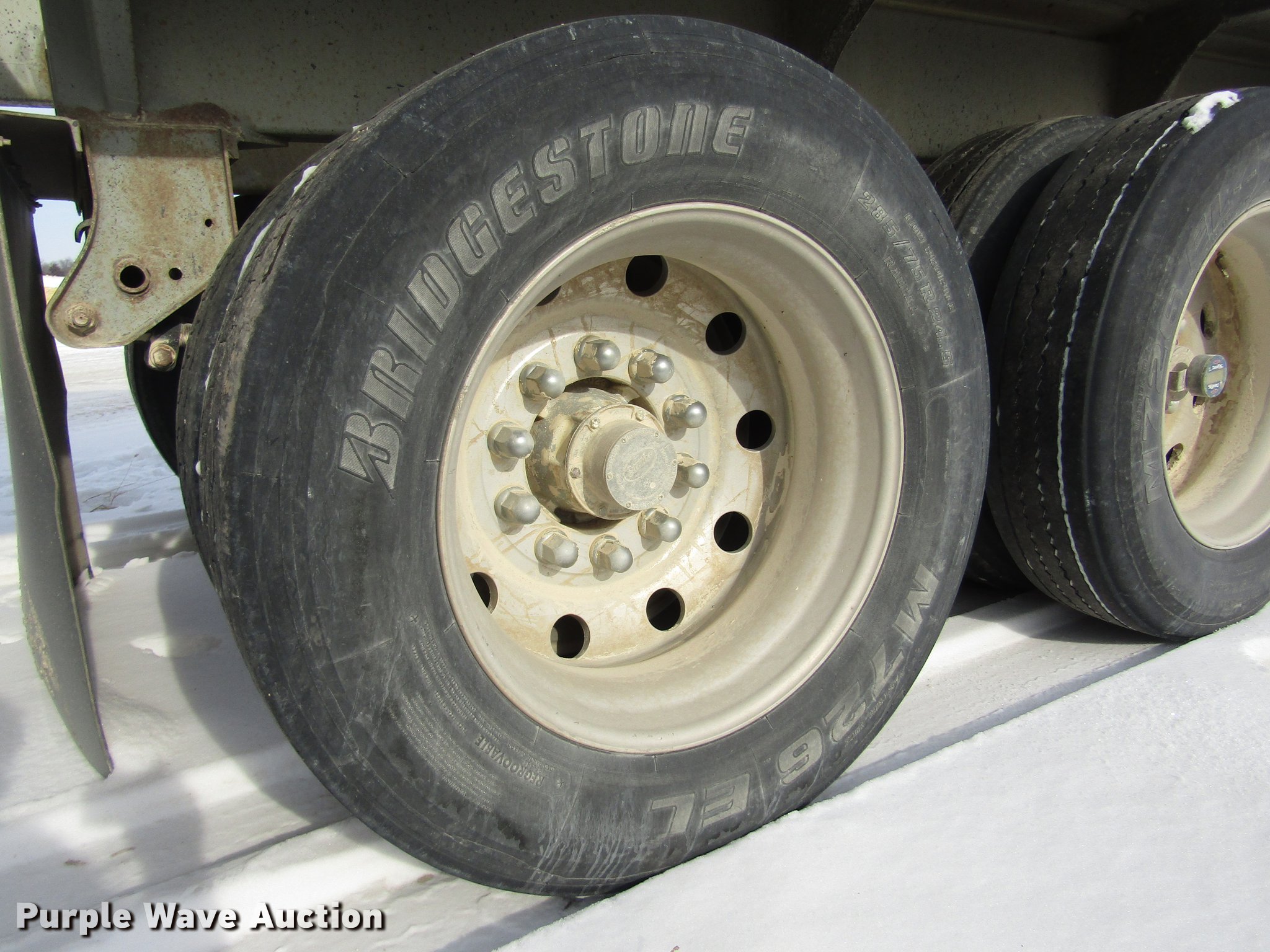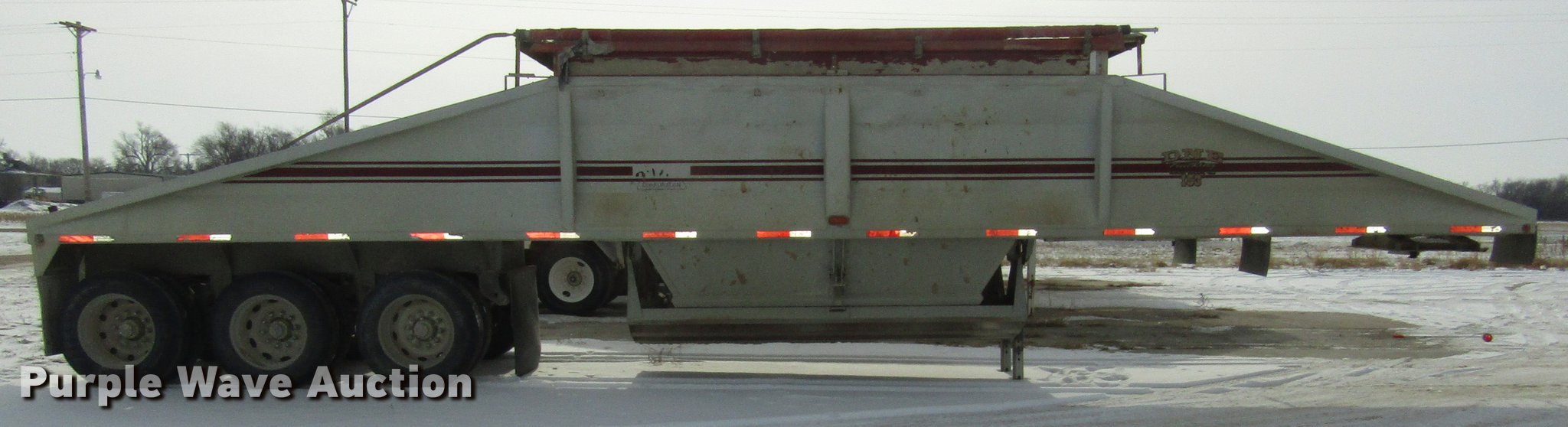 Purple Wave is selling a used Bottom Dump Trailer in Nebraska. This item is a 1999 Rway 4221TR1 bottom dump trailer with the following: 42'L, 10"H side boards, Steel construction, Dual hydraulic cylinders, Air operated clamshell gate, Manual tarp, Trailer controls, Rear push block, Dual leg landing gear, Fifth wheel plate, Rear hitch, Rear gladhand and electrical connections, Triple axle, Spring suspension, Air brakes, Aluminum wheels, 285/75R24.5 tires