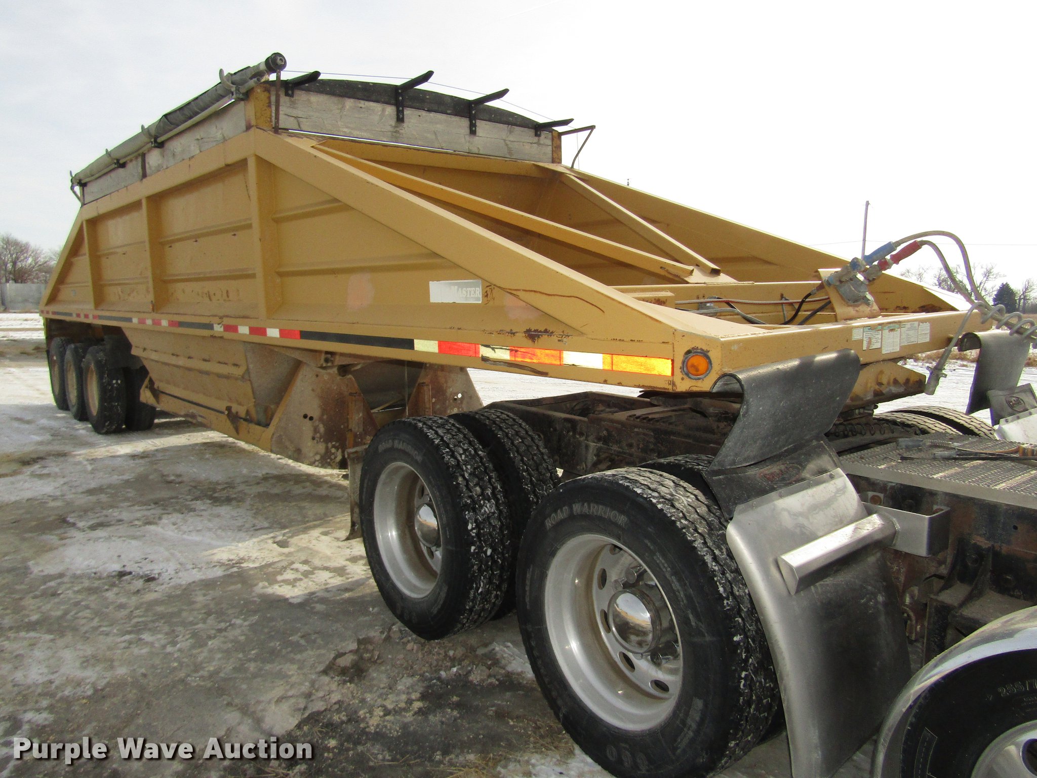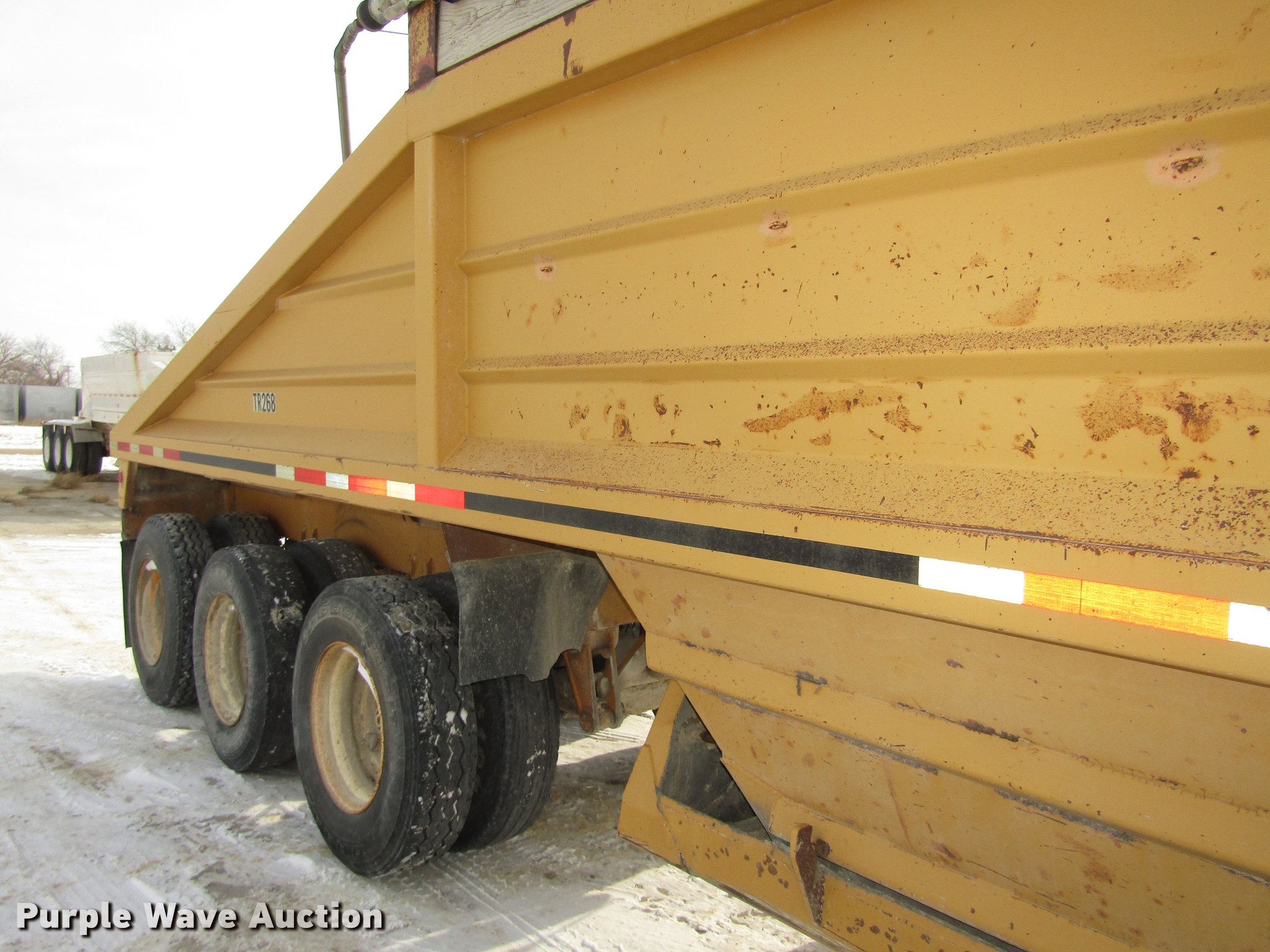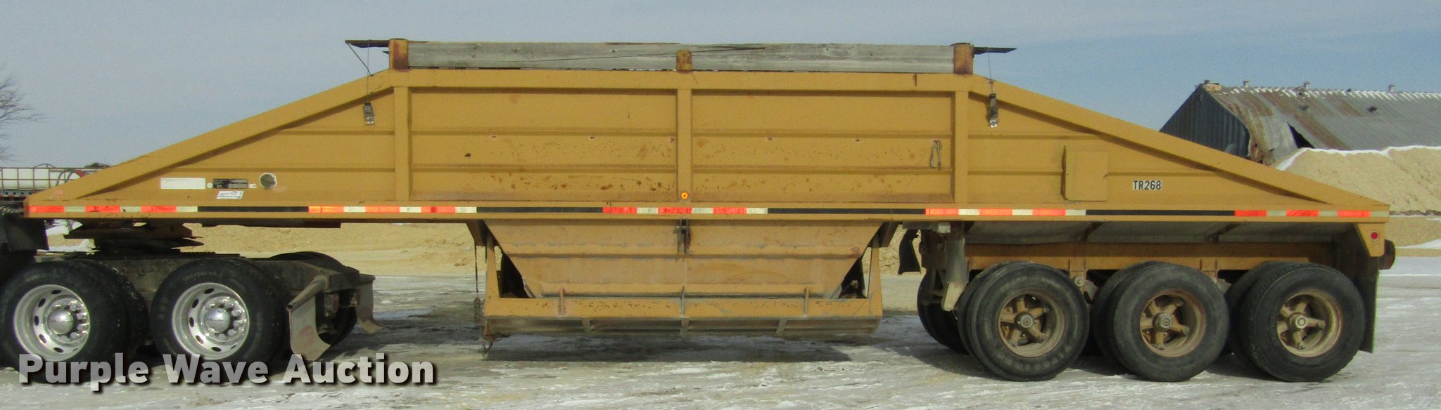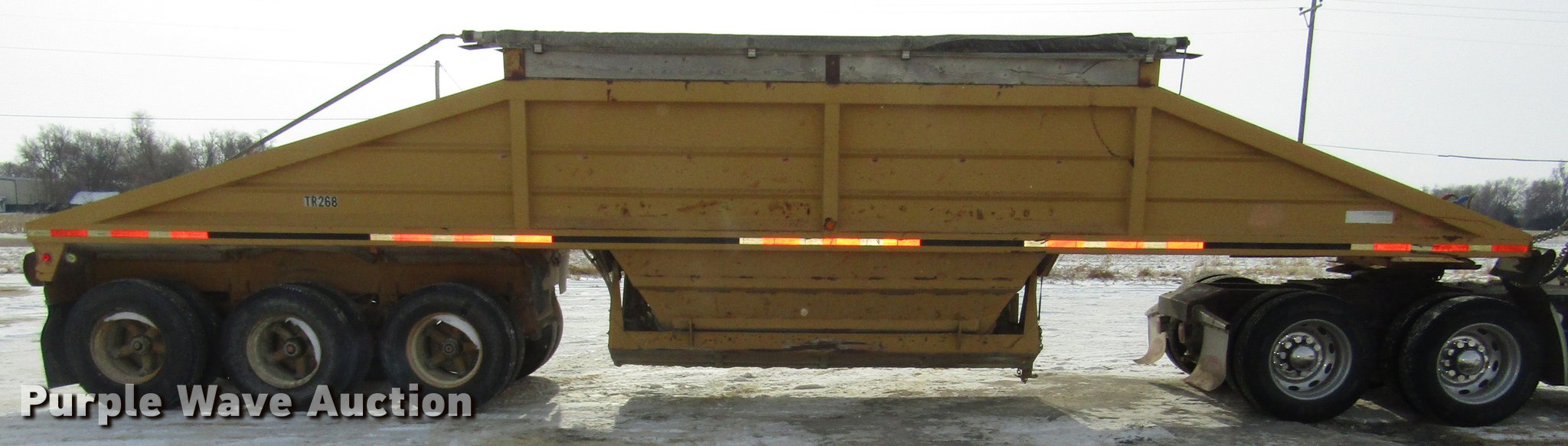 Purple Wave is selling a used Bottom Dump Trailer in Nebraska. This item is a 1993 Load King Triple E bottom dump trailer with the following: 39'L x 96"W, 10"H side boards, Steel construction, Dual hydraulic cylinders, Air operated clamshell gate, Tarp, Rear push block, Dual leg landing gear, Fifth wheel plate, Triple axle, Spring suspension, Air brakes, Steel wheels, 11R22.5 tires, GVWR 80,000 lbs, GAWR 20,000 lbs, Truck not included, Unit# TR268