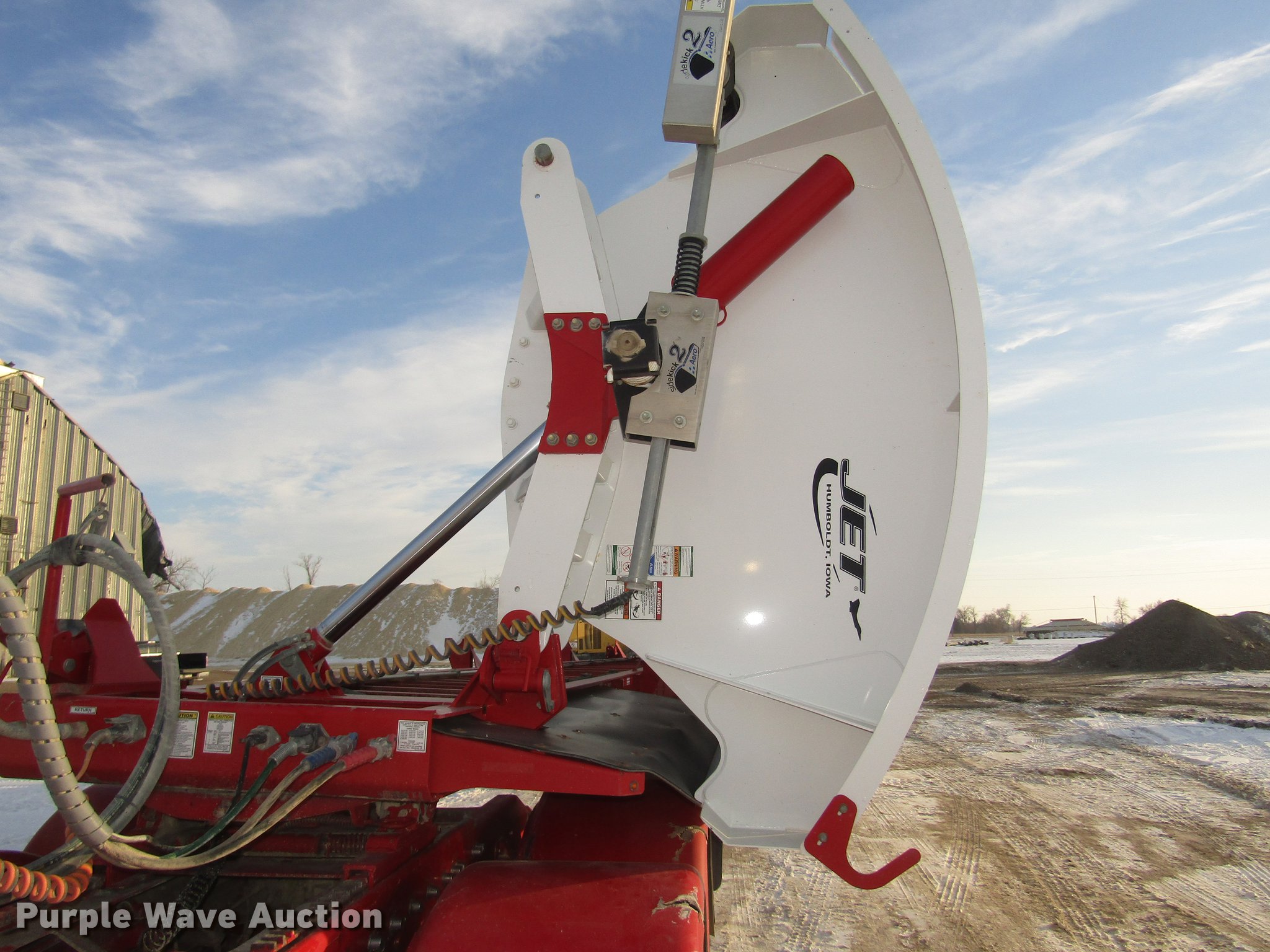 2015 Jet side dump trailer. Steel construction, Dual hydraulic cylinder, Electric tarp, Rear push block, Dual leg landing gear, Fifth wheel plate, Triple axle, Air suspension, Air brakes, Aluminum wheels, 285/75R24.5 tires, GVWR 80,000 lbs, GAWR 25,000 lbs, Truck not included. Nebraska title. 5JNSS473XFH000929. Diamond Lime LLC.. 2131 Rd 302. Edgar, NE 68935