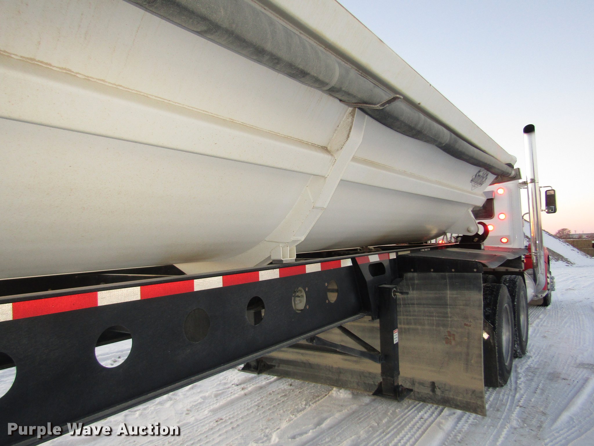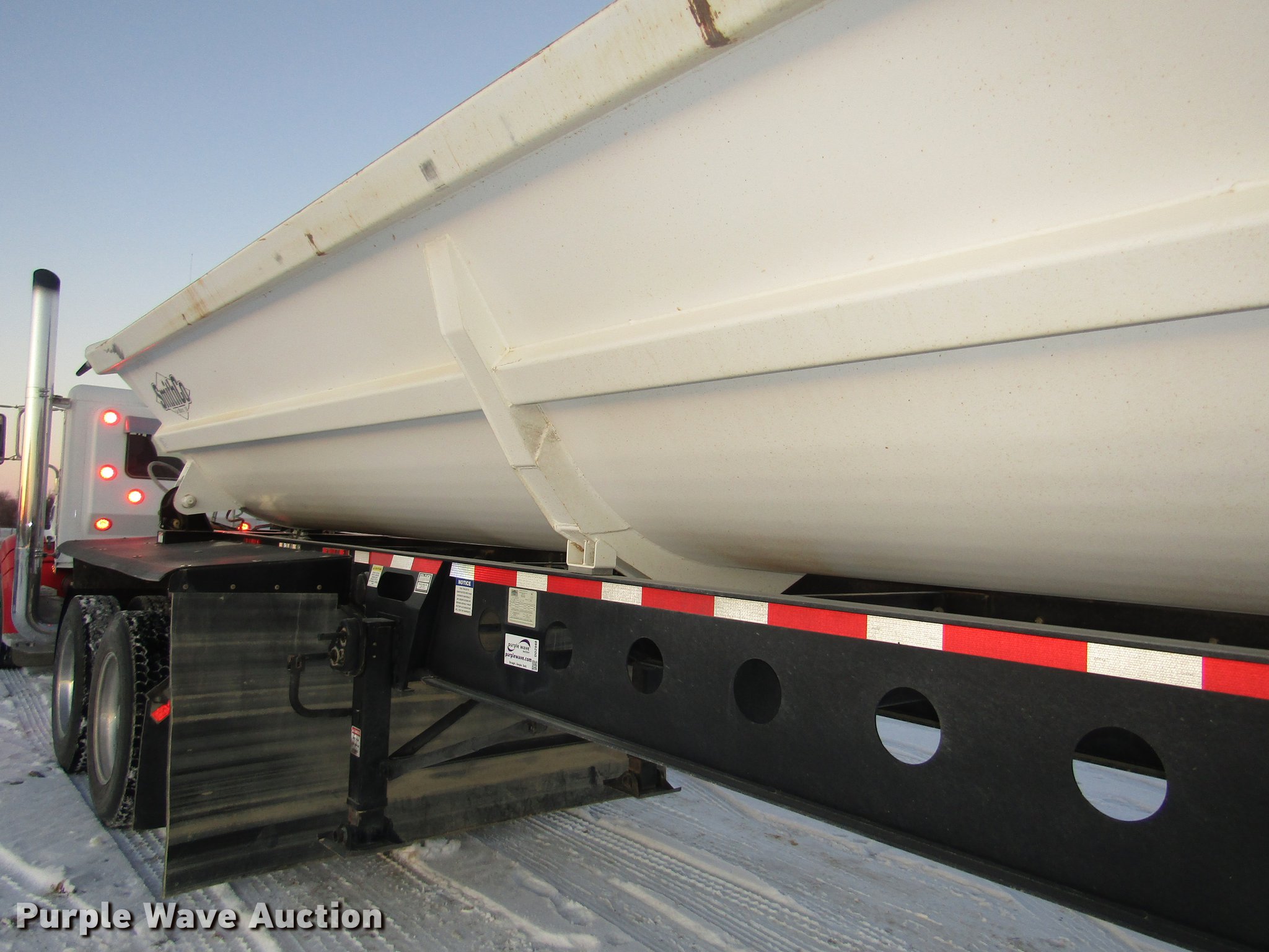 2014 Smith Co SX3-46-36 side dump trailer. 46' overall length, 36'L, Steel construction, Dual hydraulic cylinders, Electric tarp, Rear push block, Dual leg landing gear, Fifth wheel plate, Triple axle, Ridewell air suspension, Air brakes, Aluminum wheels, 295/75R22.5 tires, 11R22.5 tires, GVWR 88,170 lbs, Truck not included. Nebraska title. 1S9SS4636EL476293. Diamond Lime LLC.. 2131 Rd 302. Edgar, NE 68935