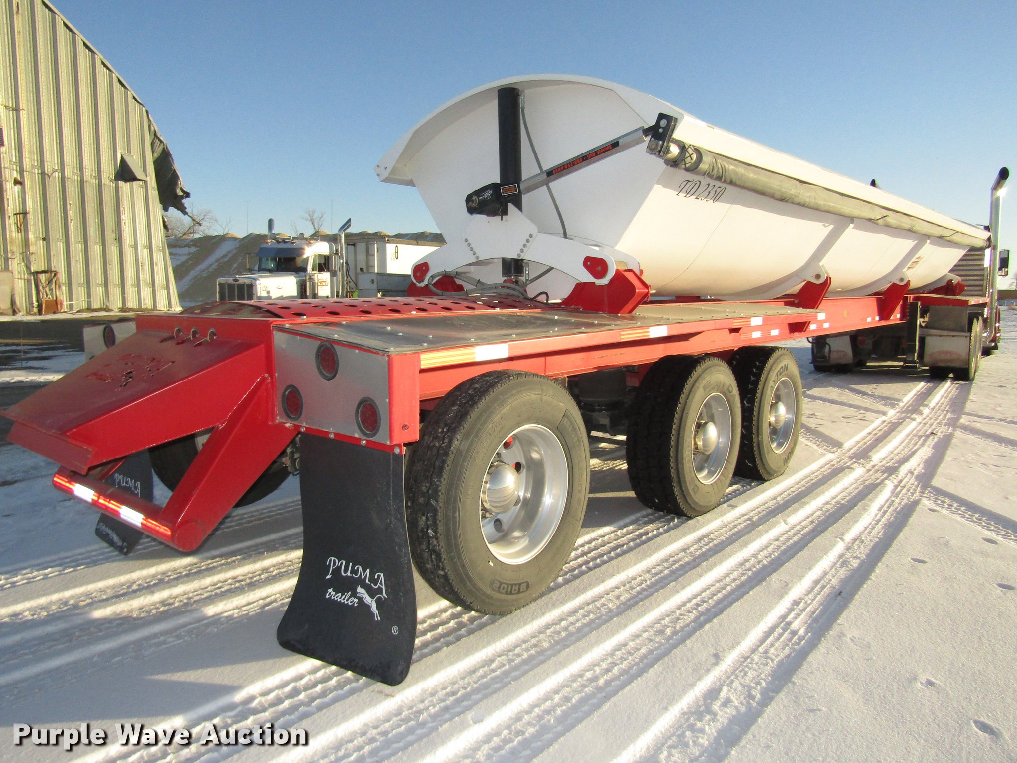 Purple Wave is selling a used Side Tilt Dump Trailer in Nebraska. This item is a 2017 Puma TD2350 side dump trailer with the following: 48' overall length, 36'L x 102"W dump bed, 96" from ground to top of sides, 30 ton capacity, Steel construction, Dual hydraulic cylinders, Electric tarp, Rear push block, Dual leg landing gear, Fifth wheel plate, Triple axle, Gladhand connections, Hydraulic connections, Air suspension, Air brakes, Aluminum wheels, 385/65R22.5 tires, 11R22.5 tires, GVWR 60,000 lbs, GAWR 26,000 lbs, Truck not included