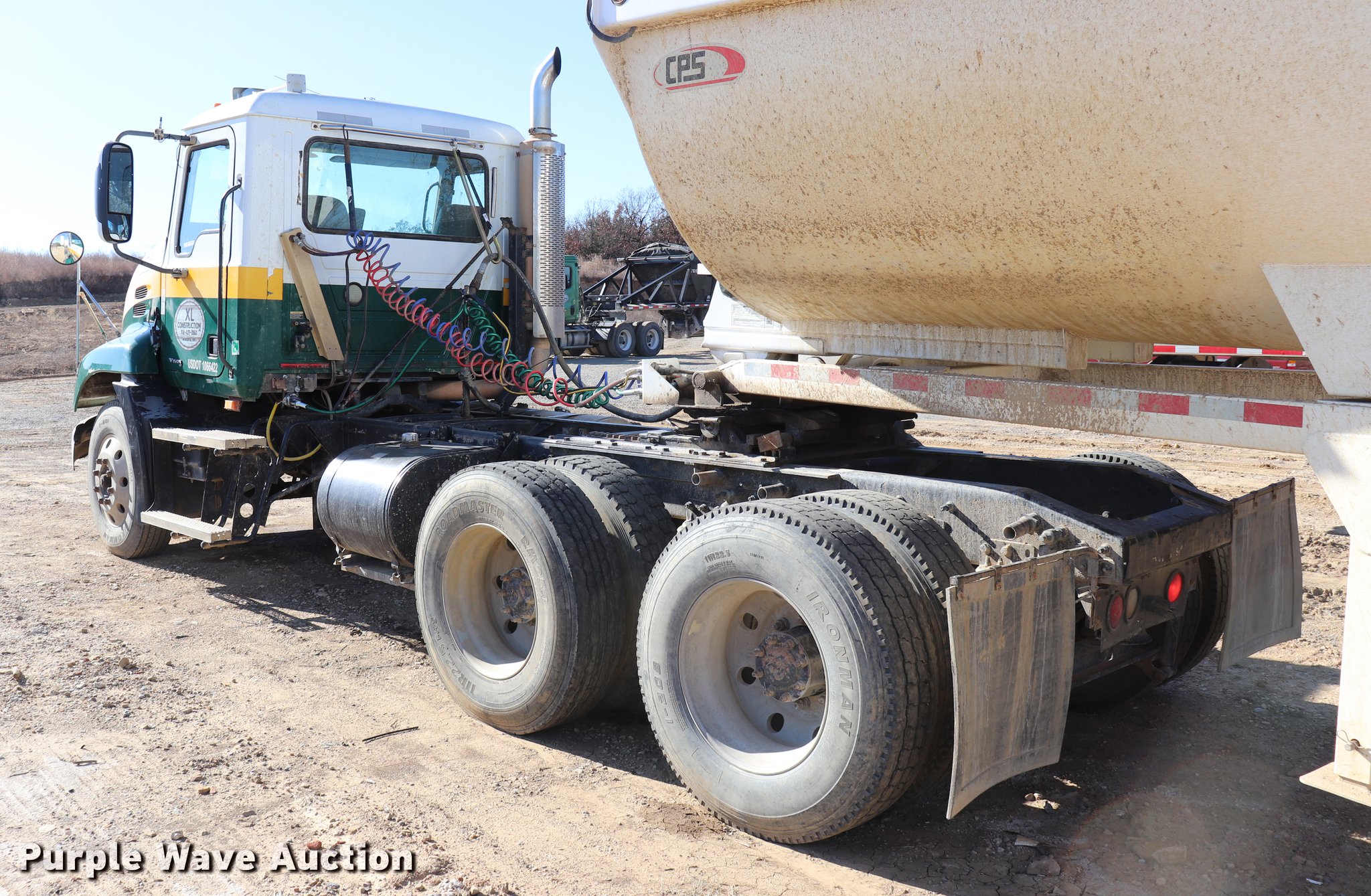 Purple Wave is selling a used Truck Tractor in Oklahoma. This item is a 2005 Mack CX613 semi truck with the following: 524,227 miles on odometer, 14,084 hours on meter, Miles and hours may vary, unit still in use, Mack E7 12.0L L6 turbo diesel engine, Eaton Fuller 10 speed manual transmission, Two speed rear end, AC And heat, Cruise, AM/FM/cassette, Power windows, locks, and mirrors, Leather air suspension seat, Air ride cab, PTO, Wet kit, Front tow hooks, Single fuel tank, Mud flaps, Air operated fifth wheel plate, Single rear exhaust stack, 186" wheelbase, Spring suspension, Air brakes, 11R22.5 tires, Windshield chipped, Contents not included, Unit# TT-3