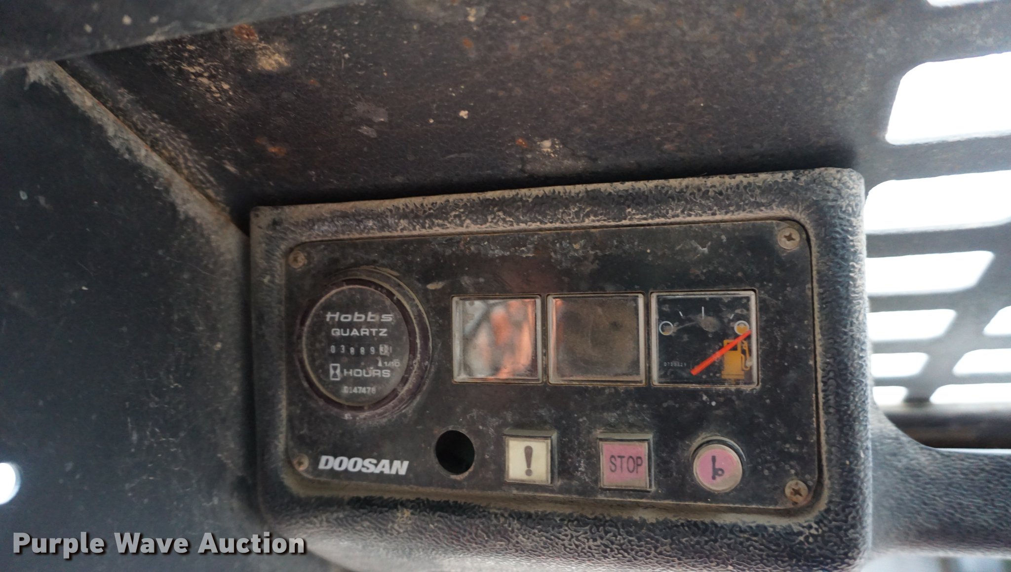 Purple Wave is selling a used Skid Steer Loader in Kansas. This item is a Doosan 470 Plus skid steer with the following: 3,889 hours on meter, Cummins B3.3T four cylinder turbo diesel engine, 55 kW, Hydrostatic transmission, OROPS, Hand and foot controls, Auxiliary hydraulics, Manual quick coupler, 12-16.5 tires, Serial HZ00133
