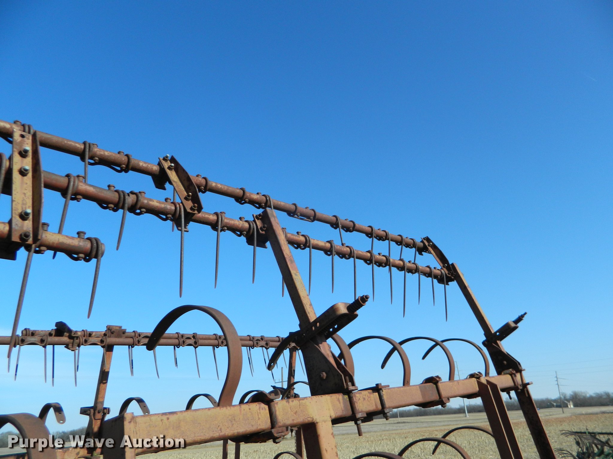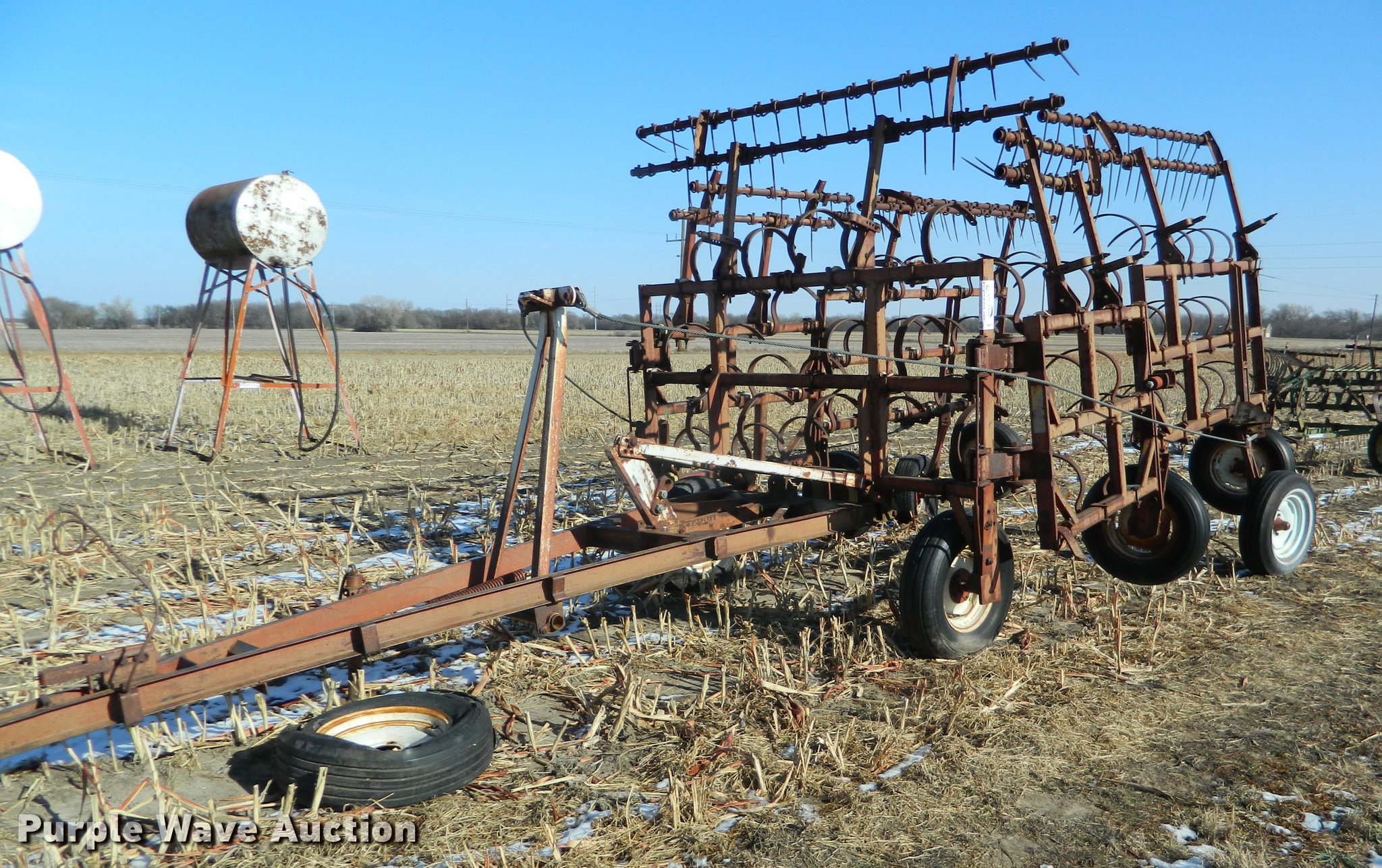 Purple Wave is selling a used Tillage Other in Kansas. This item is a Noble spring tooth harrow with the following: 32'W, Tine harrows, 14" tires