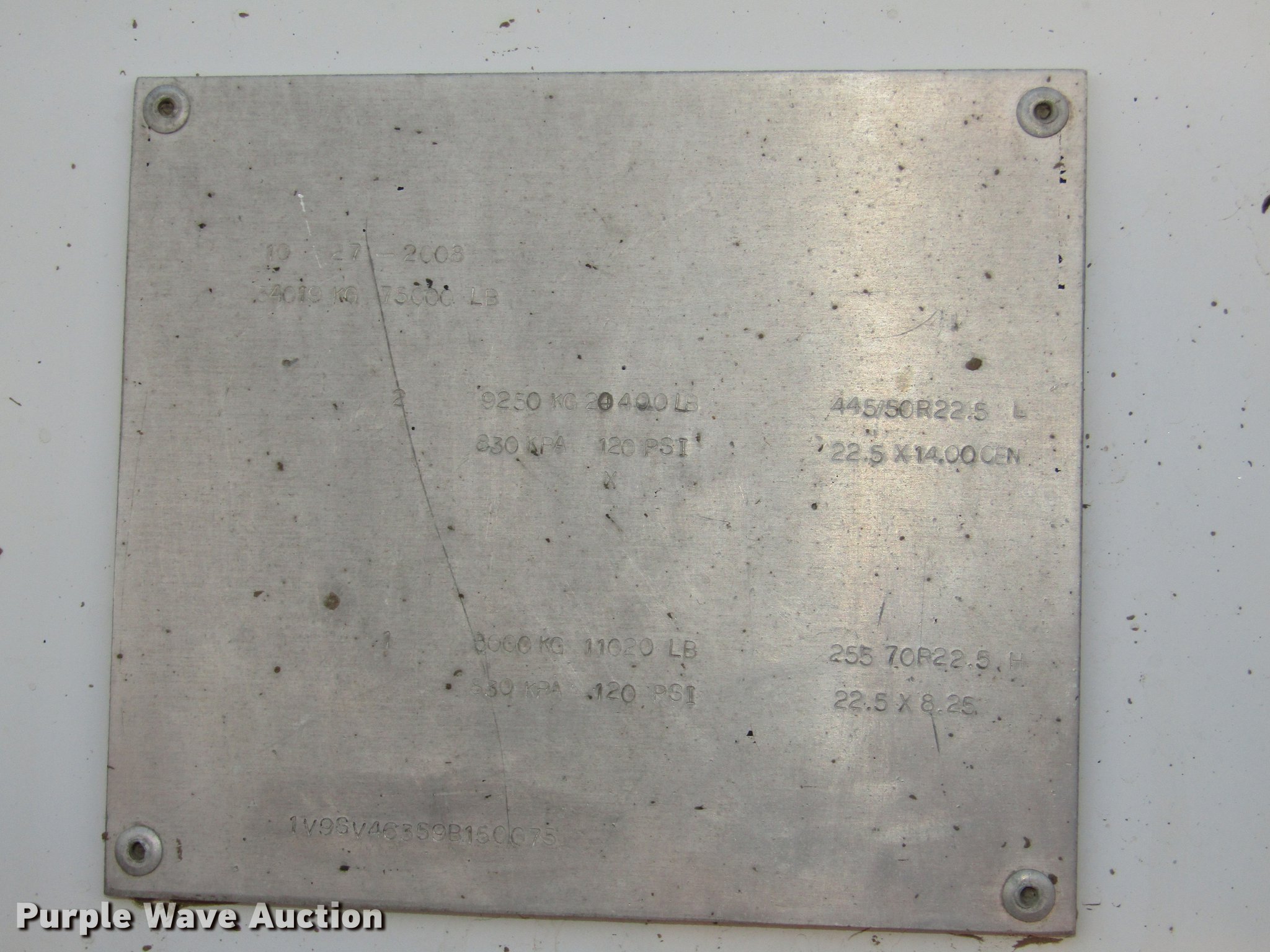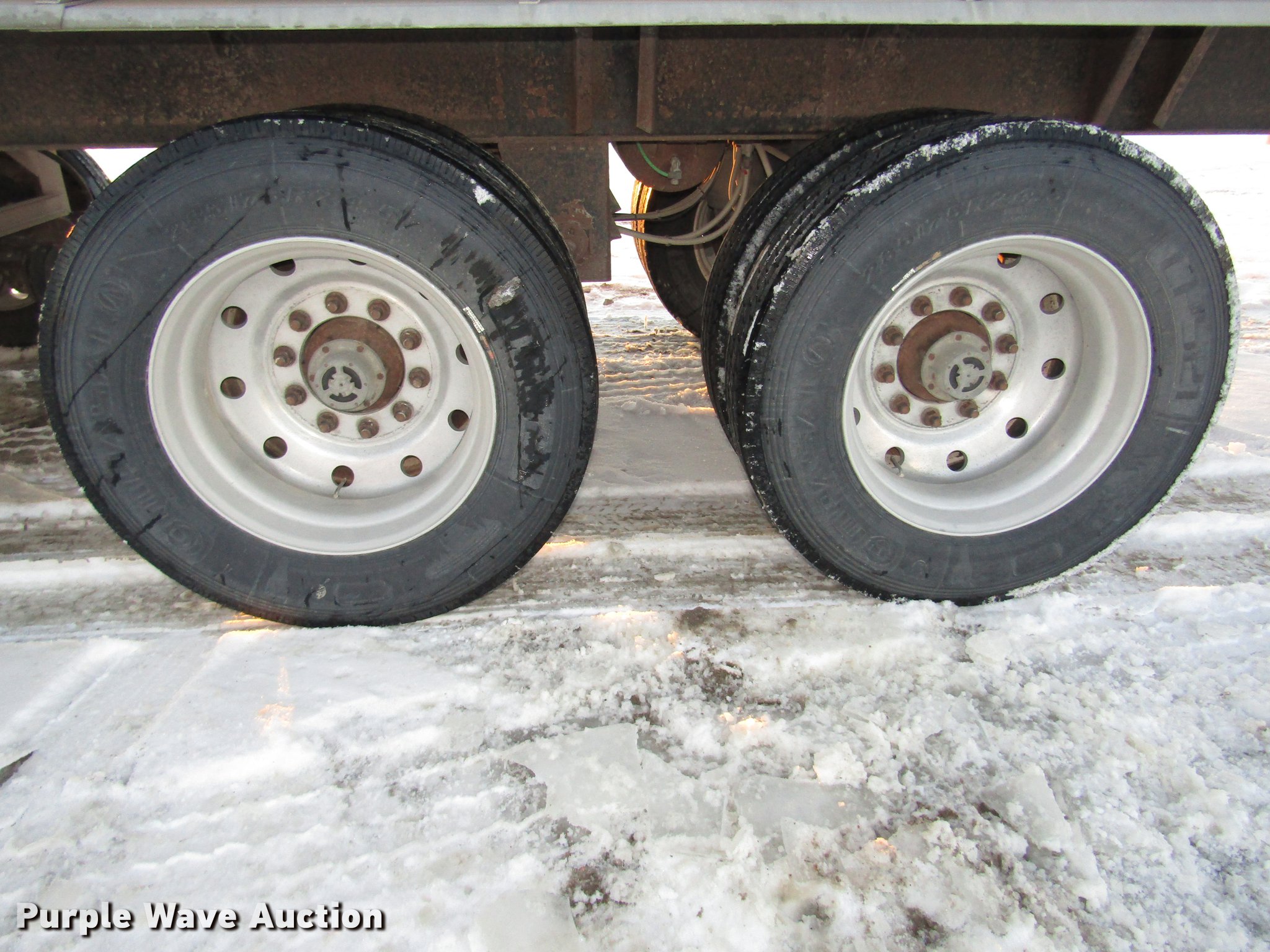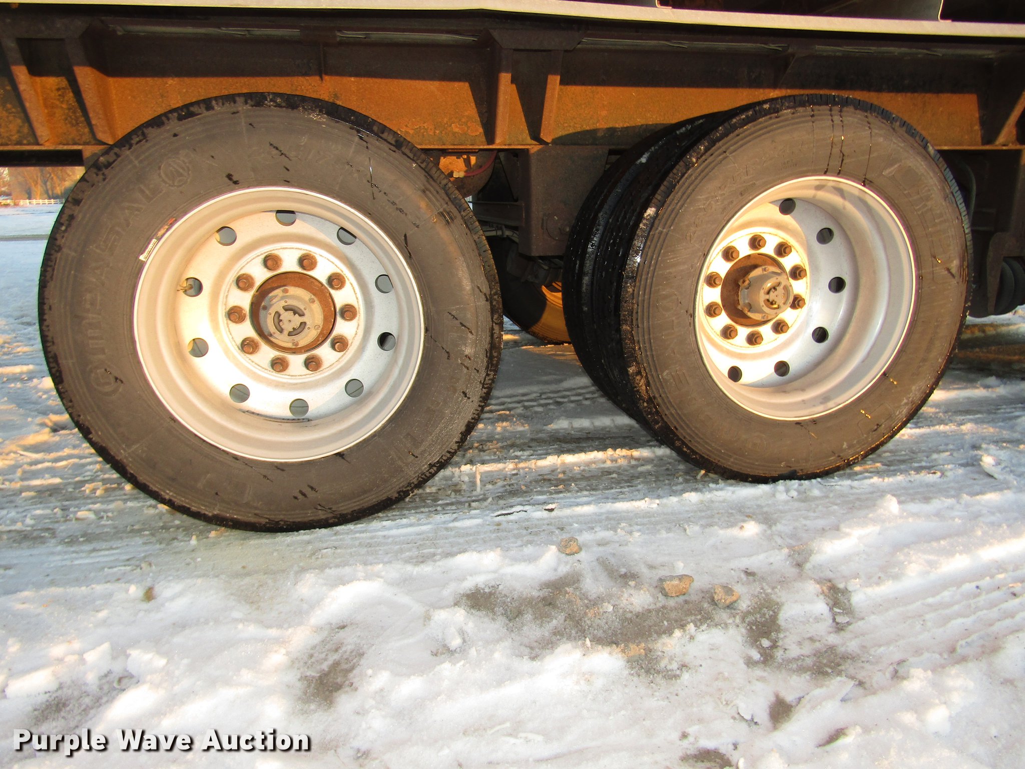 Purple Wave is selling a used Grain or Commodity Trailer in Nebraska. This item is a 2009 Aulick Aluminator 9-75 live bottom trailer with the following: Model 4666543, 46'L x 102"W, 45 1/4"W apron, Front and rear ladders, 53"W belted bottom, Variable floor speed, Roll tarp, Rear work lights, Top hinge hydraulic main gate, 56.5"W center knife gate, Extended rear discharge with wings, Lined sides, Aluminum construction, Fifth wheel plate, Dual leg two speed landing gear, Air suspension, Air brakes, Triple axle, Aluminum and steel wheels, 285/75R24.5 tires, 11R22.5 tag axle tires, GVWR 75,000 lbs