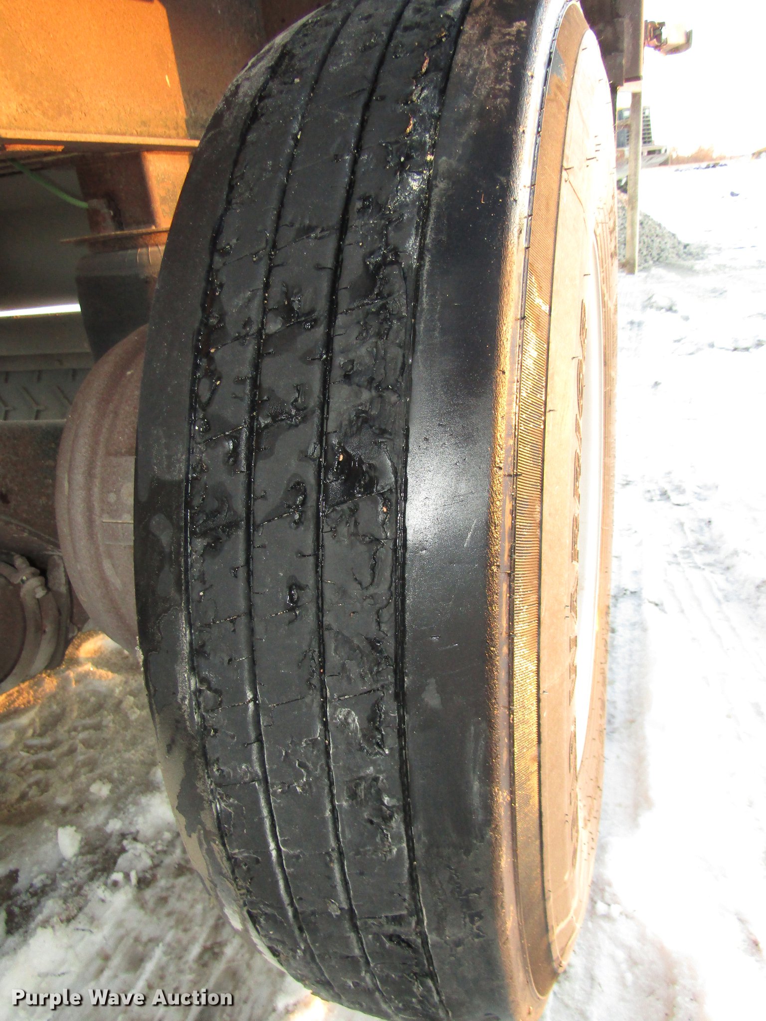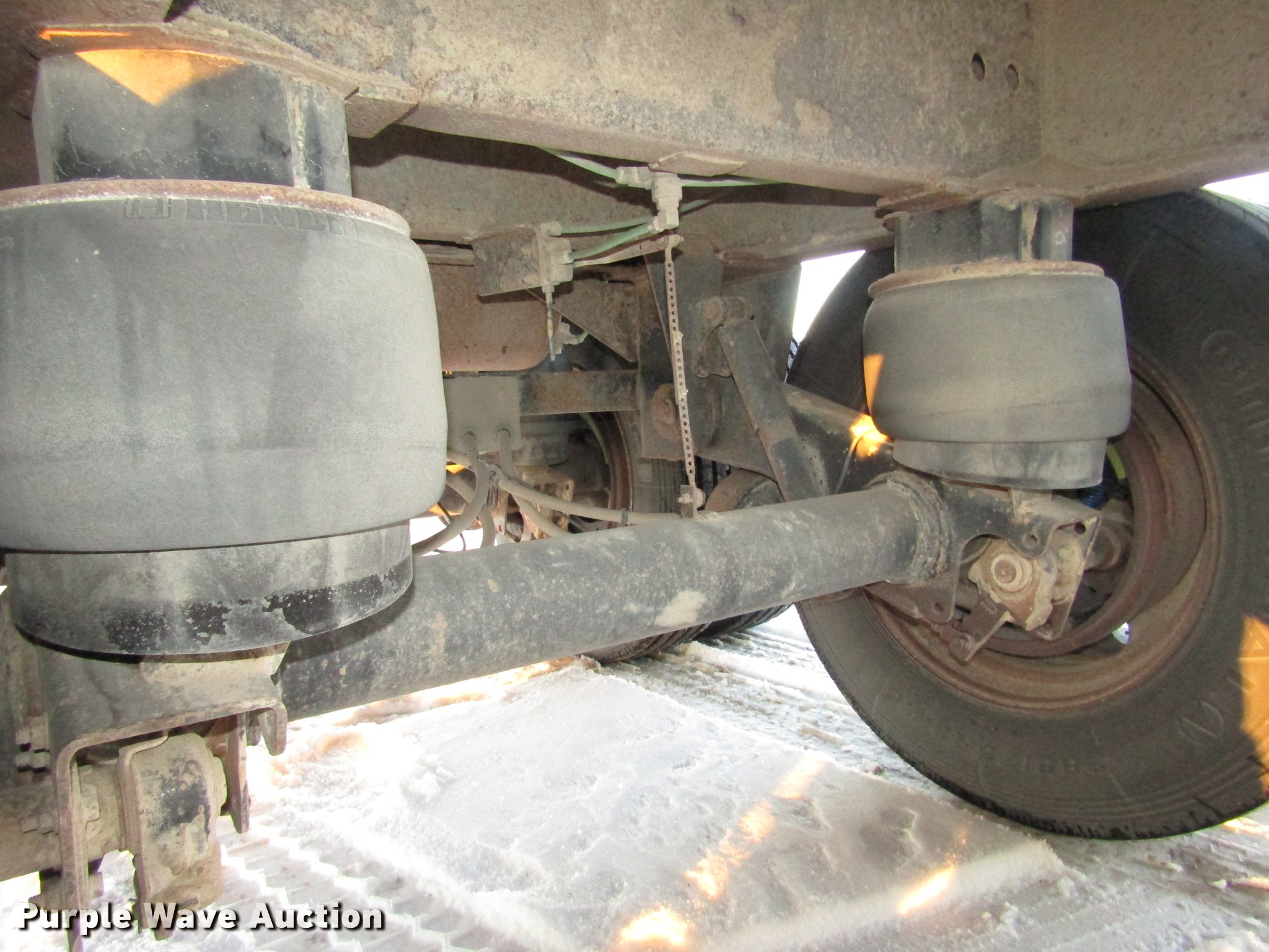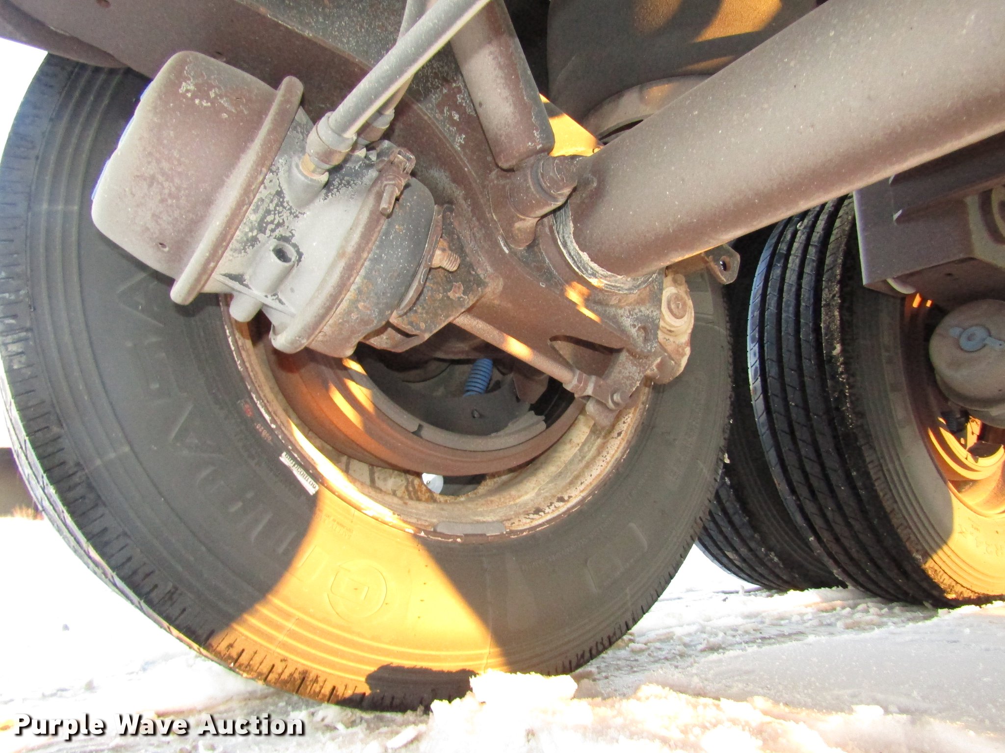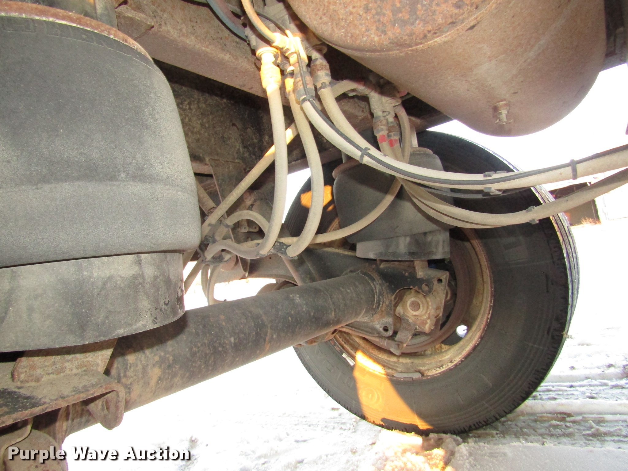 Purple Wave is selling a used Grain or Commodity Trailer in Nebraska. This item is a 2009 Aulick Aluminator 9-75 live bottom trailer with the following: Model 4666543, 46'L x 102"W, 45 1/4"W apron, Front and rear ladders, 53"W belted bottom, Variable floor speed, Roll tarp, Rear work lights, Top hinge hydraulic main gate, 56.5"W center knife gate, Extended rear discharge with wings, Lined sides, Aluminum construction, Fifth wheel plate, Dual leg two speed landing gear, Air suspension, Air brakes, Triple axle, Aluminum and steel wheels, 285/75R24.5 tires, 11R22.5 tag axle tires, GVWR 75,000 lbs