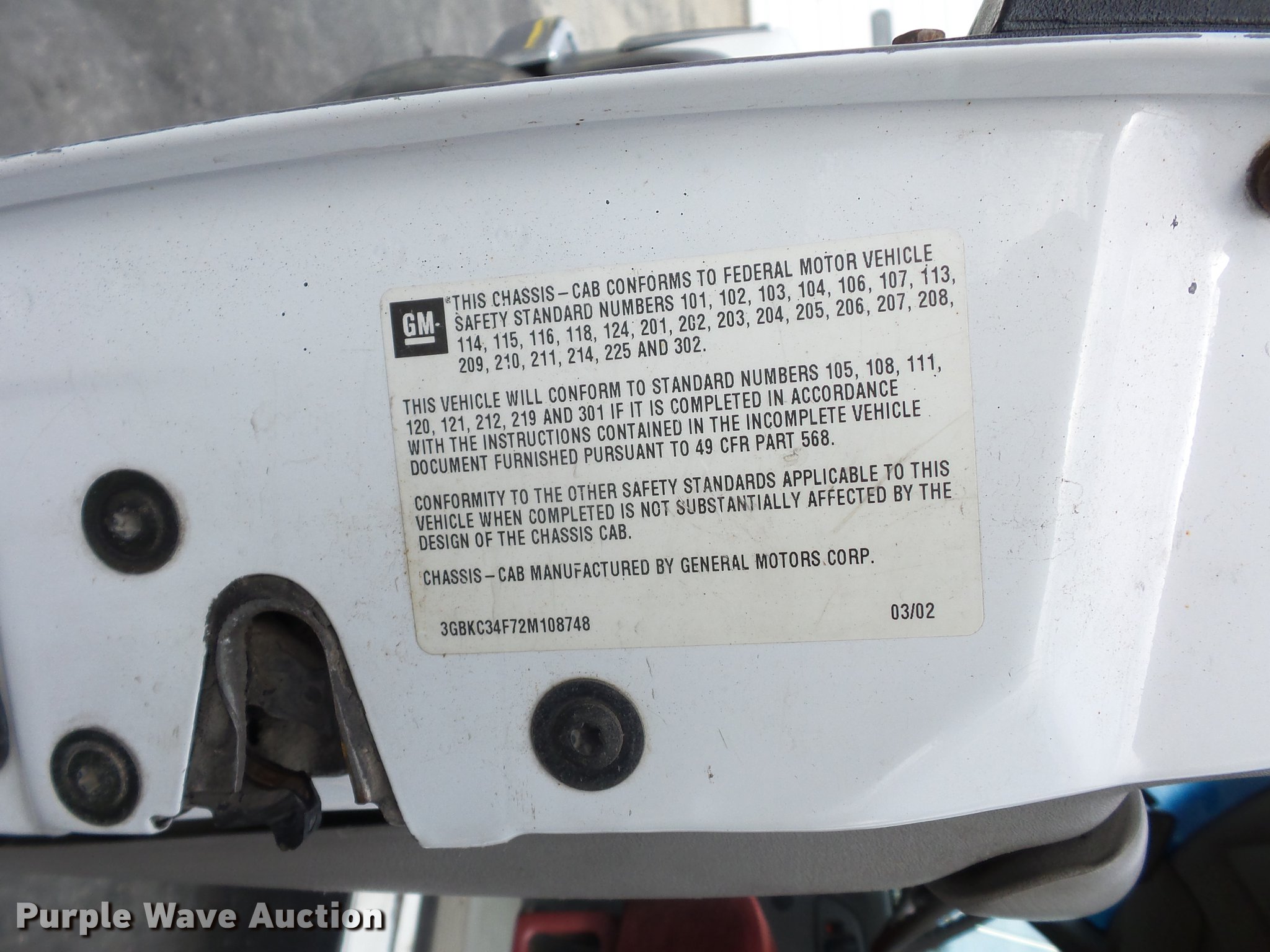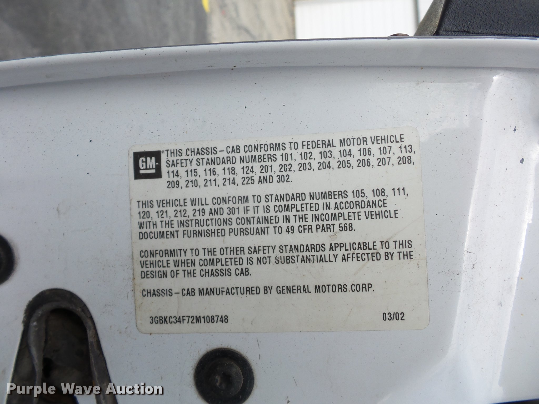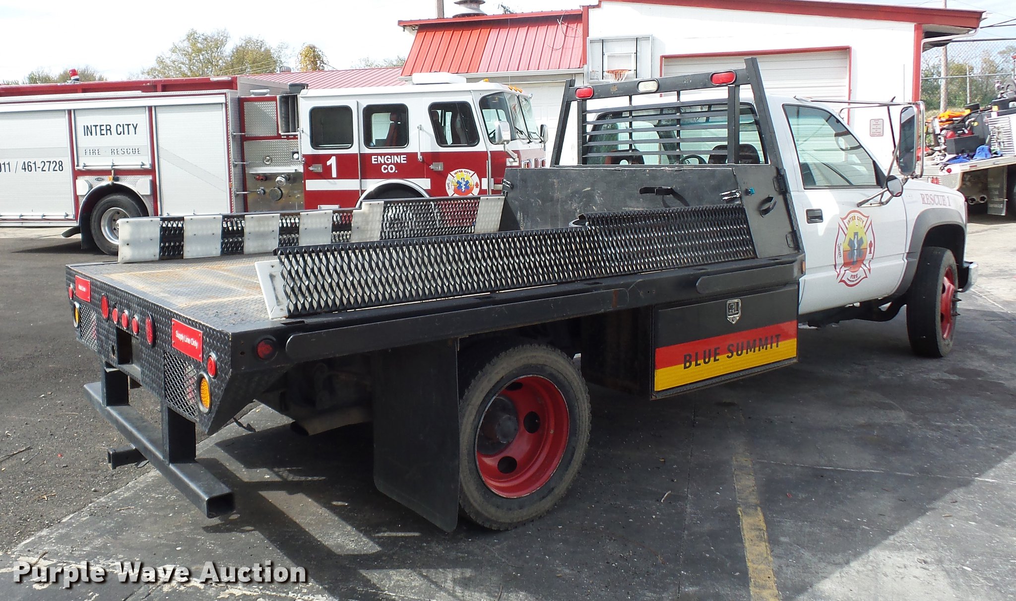 2002 Chevrolet 3500 flatbed pickup truck. 99,283 miles on odometer, 6.5L V8 OHV 16V turbo diesel engine, Automatic transmission, AM/FM, Manual windows and locks, 11'L x 96'W flatbed , Receiver hitch, Trailer wiring, Gooseneck ball, 225/70R19.3 tires, Unknown operating condition, Engine issues. Missouri title. 3GBKC34F72M108748. Inter City Fire Protection District. 1702 Blue Ridge Blvd. Kansas City , MO 64126