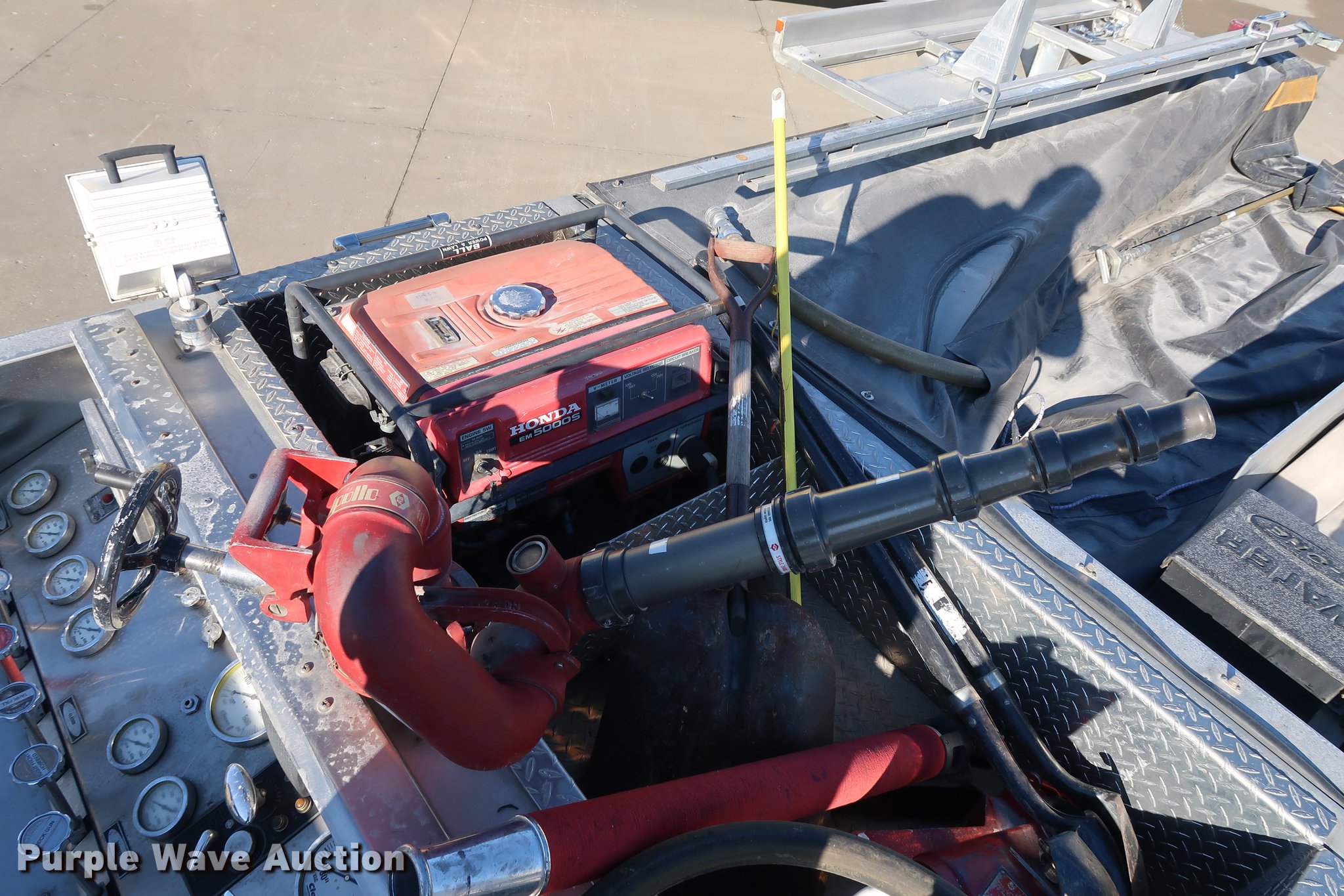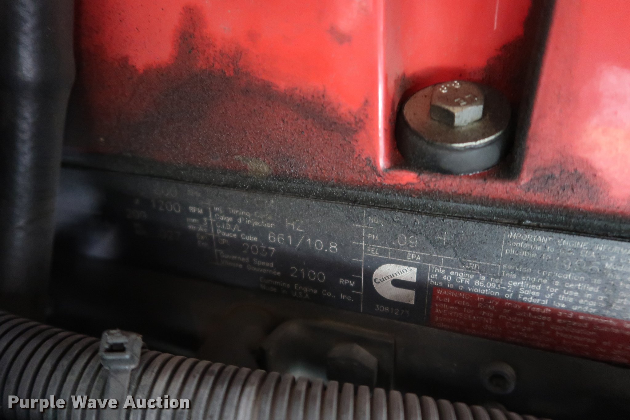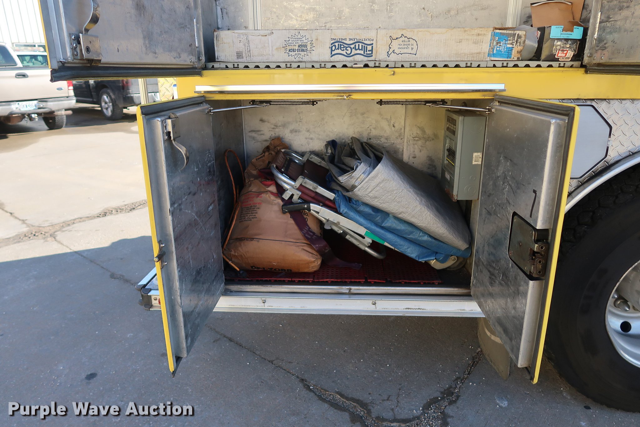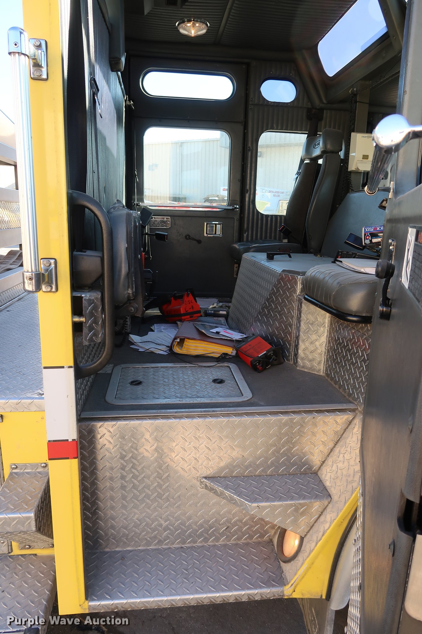 Purple Wave is selling a used Fire Truck or Emergency Vehicle in Missouri. This item is a 1996 Emergency One E-One fire truck with the following: 55,584 miles on odometer, 9,236 hours on meter, Cummins M11 10.8L L6 diesel engine, Automatic transmission, AC and heat, Air suspension seat, PTO, E-One platform, 1,500 gpm pump, E-One fire apparatus, Water gun, Hose, 750 gallon tank, Honda EM5000S generator, 120/240V, Air brakes, 385/65R22.5 front tires, 12R22.5 rear tires, Contents not included