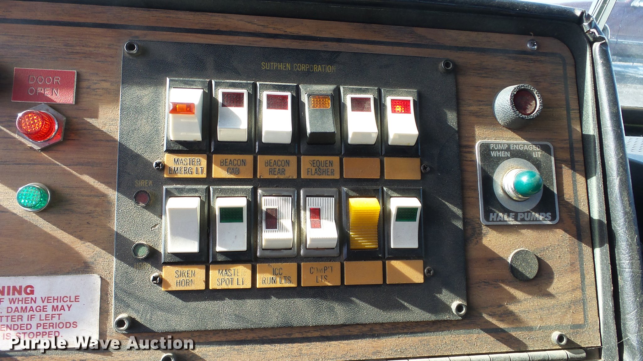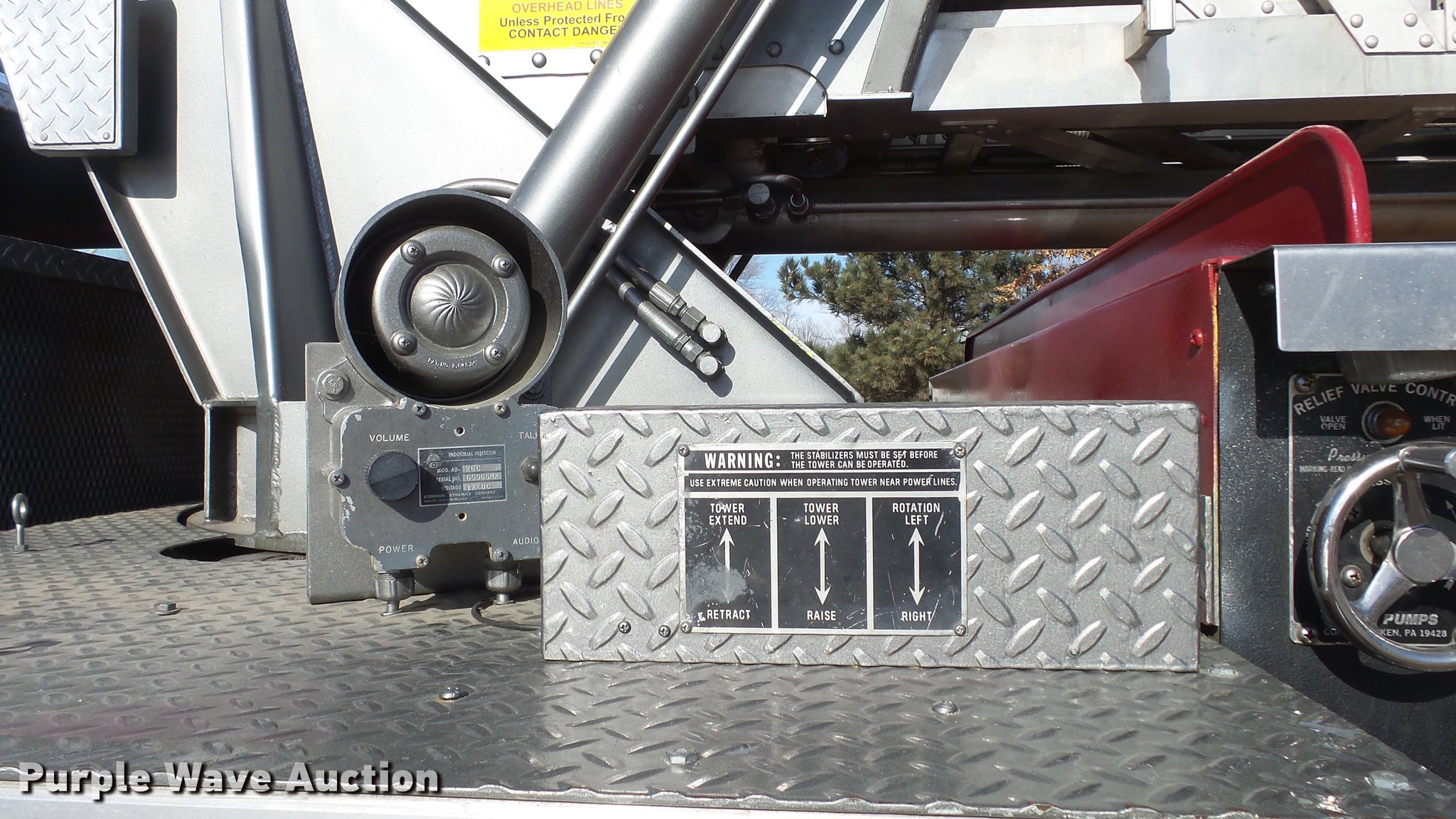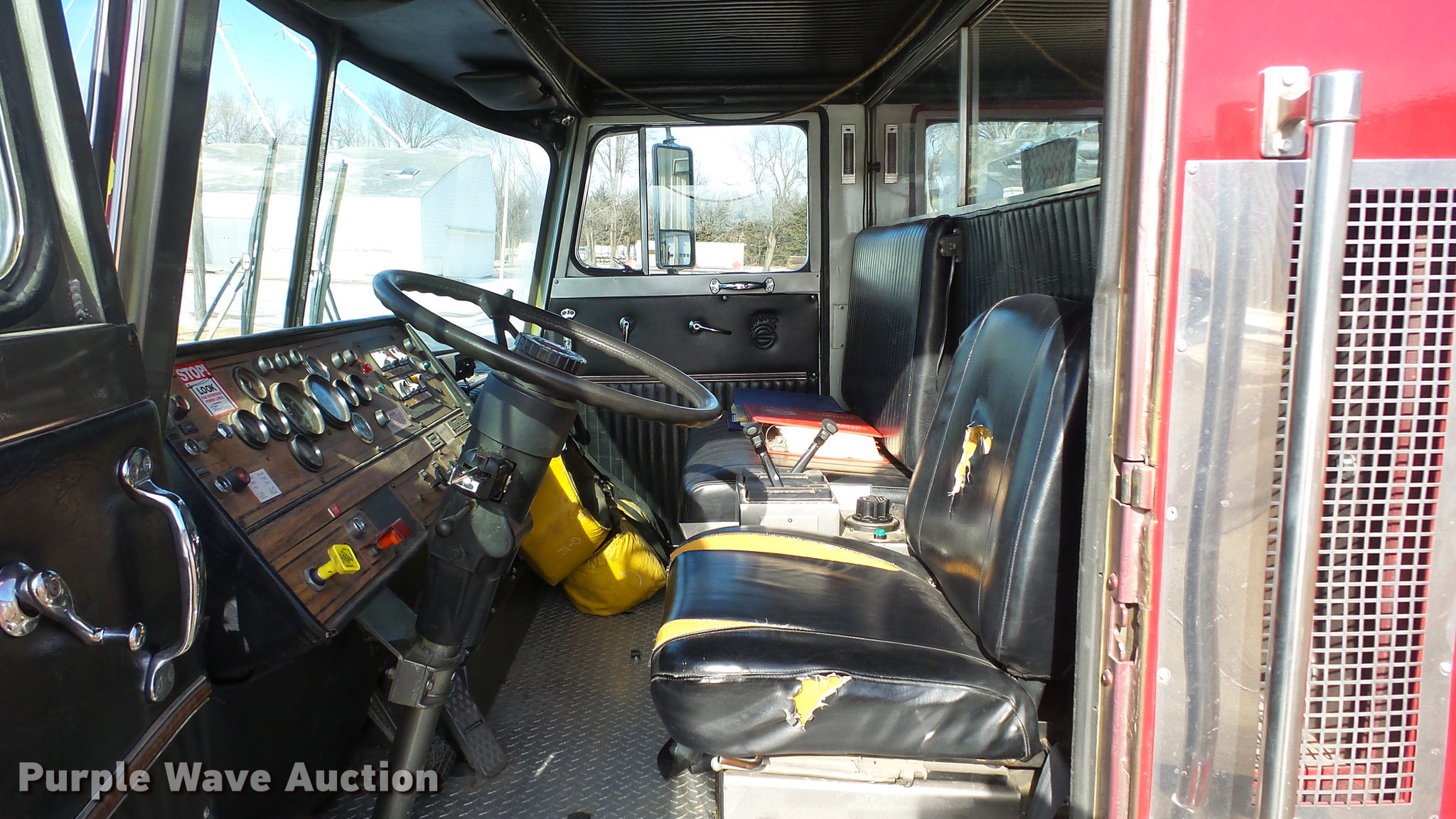 Purple Wave is selling a used Fire Truck or Emergency Vehicle in Kansas. This item is a 1985 Pierce Quint ladder fire truck with the following: 95,047 miles on odometer, 7,219 hours on meter, Detroit Diesel six cylinder diesel engine, Automatic transmission, Manual windows and locks, Vinyl interior, Federal PA300 signal, Chelsea PTO, Hale OSMF150 pump, 1,515 gpm, Serial 51526, Hale 4200GE-D generator, Diesel engine, 120/240V, Single phase, Hannay P56AA227 hose reel, Outriggers, Air brakes, 315/80R22.5 front tires, 12R22.5 rear tires, GVWR 40,000 lbs, Manuals
