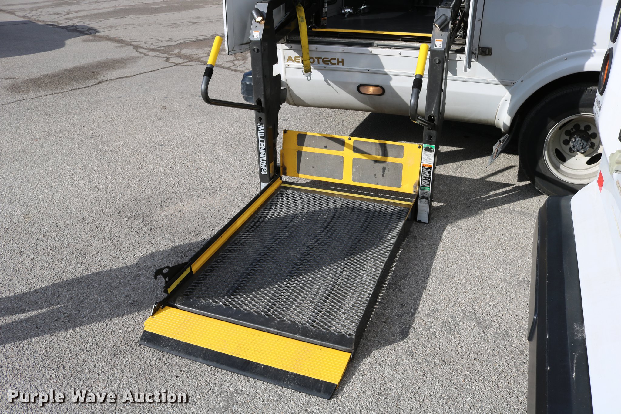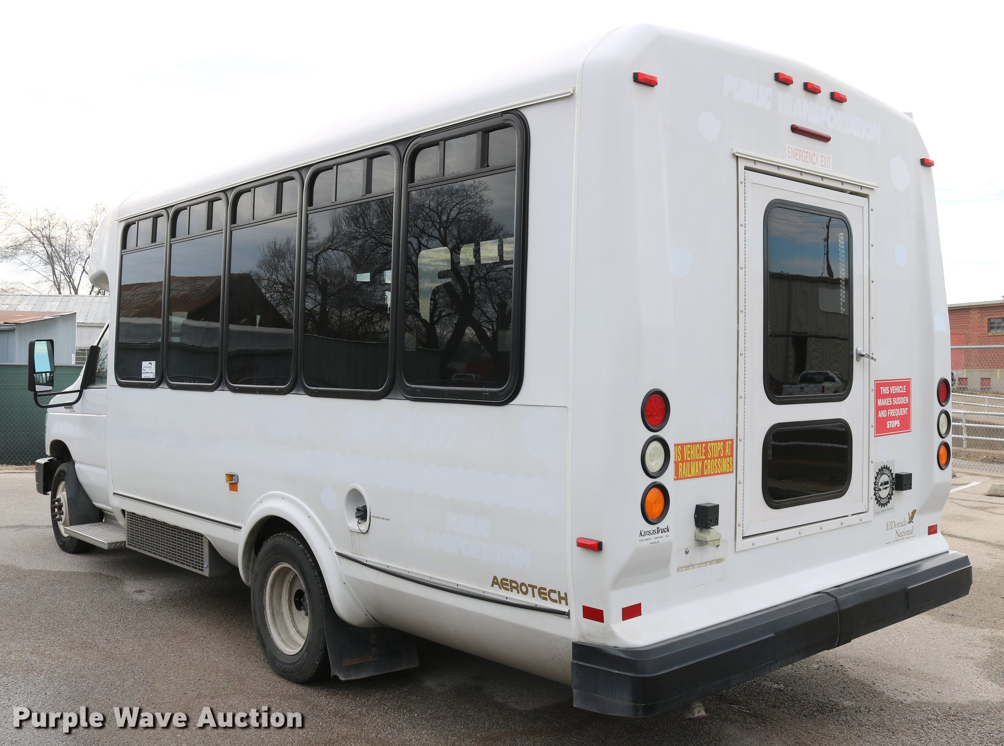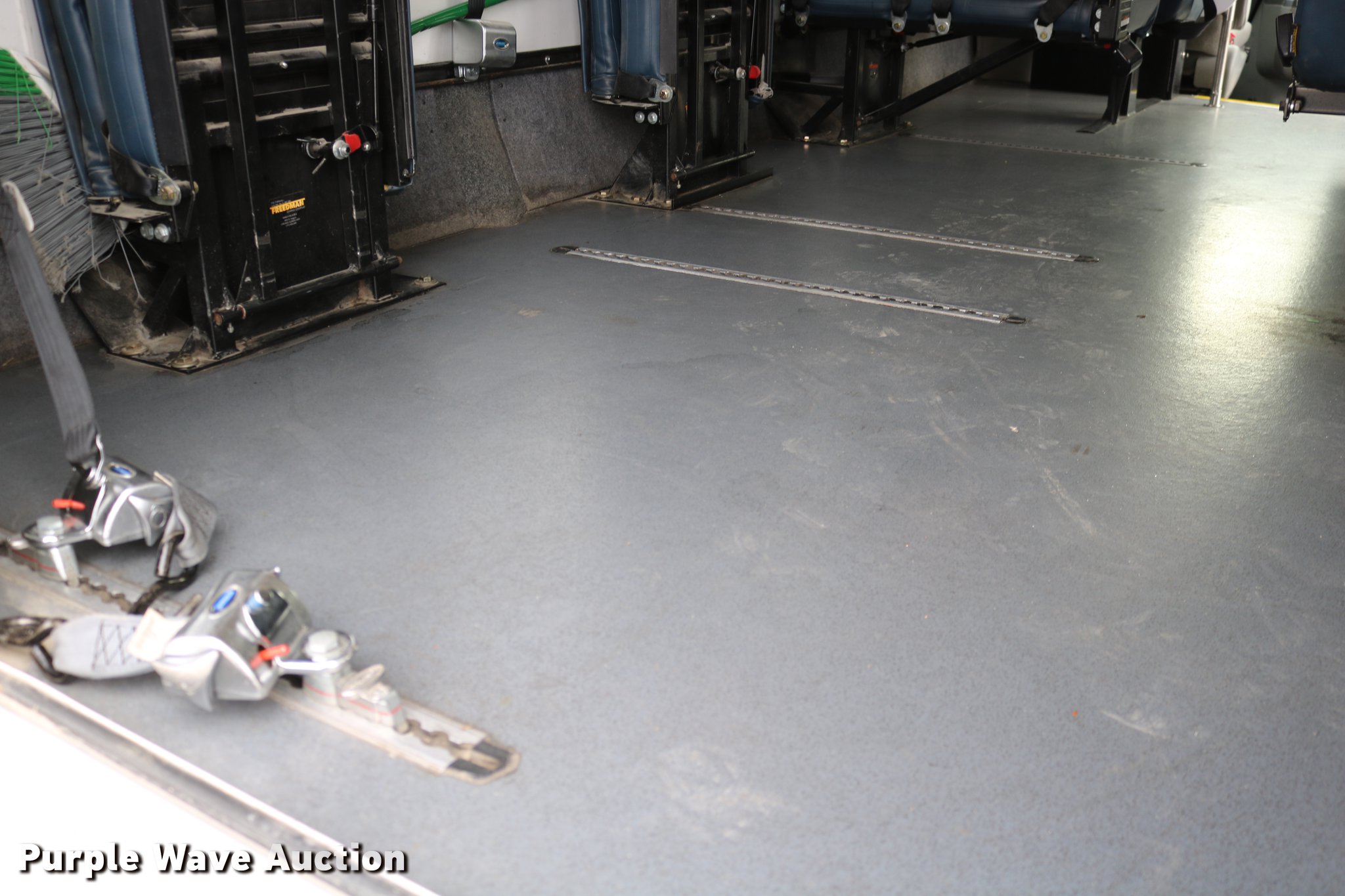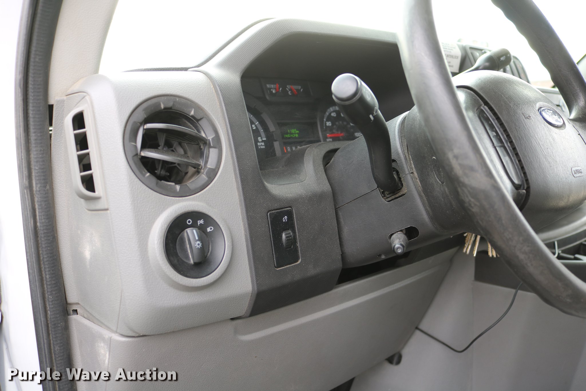 Purple Wave is selling a used Bus in Kansas. This item is a 2012 Ford E450 shuttle bus with the following: 146,428 miles on odometer, 6.8L V10 SOHC 20V gas engine, Automatic transmission, Single axle, AC and heat, AM/FM/CD, 15 passenger capacity, Braun Corp. NL919F1B-2 wheel chair lift, Serial DA-07921, (2) wheel chair tie down areas, Ceiling handrail, Ceiling, rear, and side emergency exits, Emergency door alarms, ACT E2-5 AC roof unit, Backup alarm, 158" wheelbase, Spring suspension, Hydraulic brakes, 225/75R16 tires, GVWR 14,500 lbs