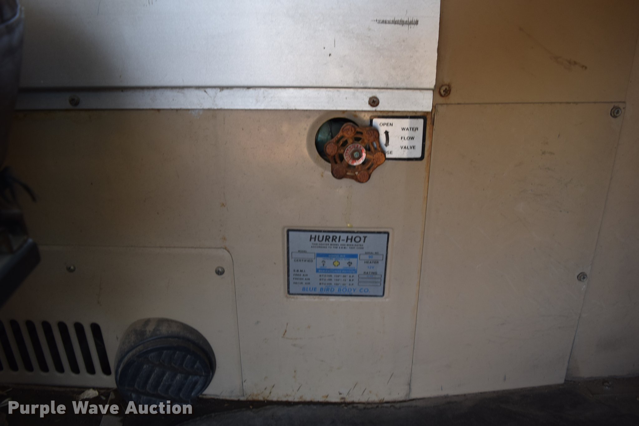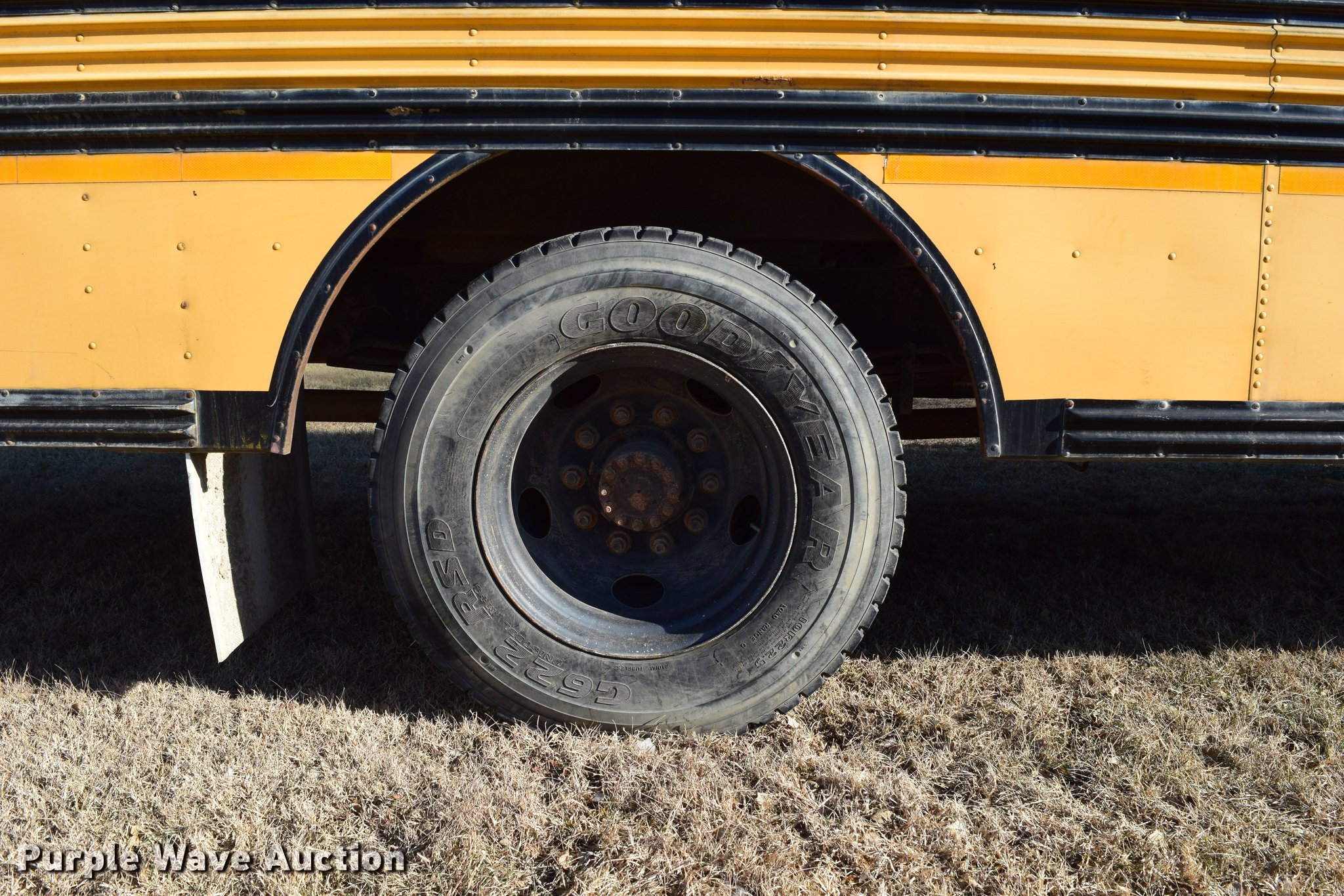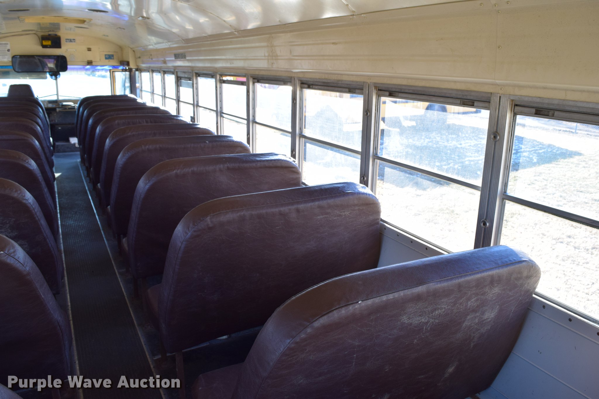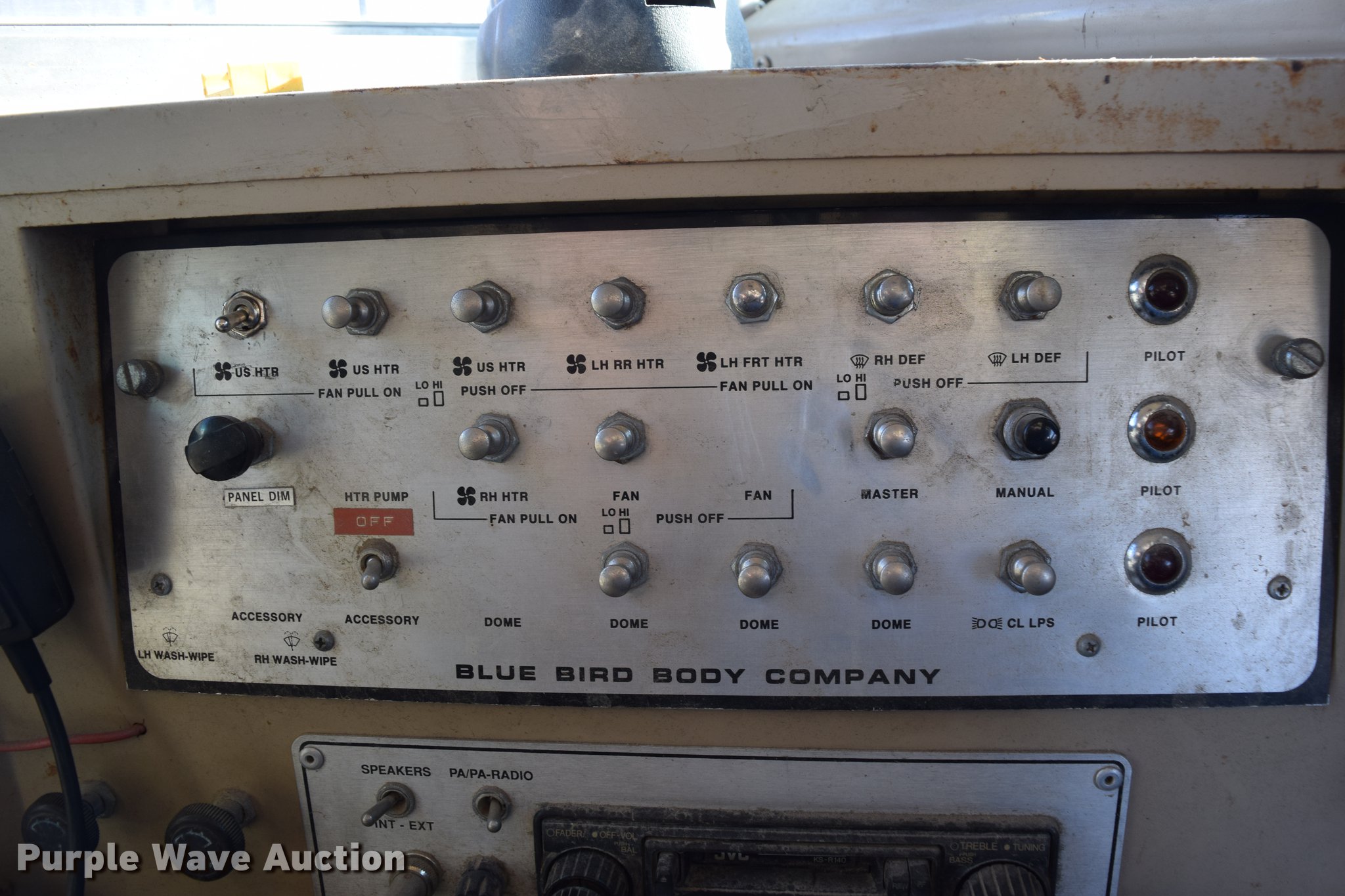 Purple Wave is selling a used Bus in Kansas. This item is a 1995 Chevrolet Blue Bird school bus with the following: 198,677 miles on odometer, Caterpillar 3116 6.6L L6 turbo diesel engine, Serial 9GK10640, Automatic transmission, Single axle, Heat, AM/FM/Cassette, 62 passenger capacity, Ceiling, rear, and side emergency exits, Emergency door alarms, Lighted stop sign, Rear tow hooks, Approx. 258" wheelbase, Spring suspension, Block heater, Hydraulic brakes, 10R22.5 tires, GVWR 27,960 lbs, Unit# 94-1