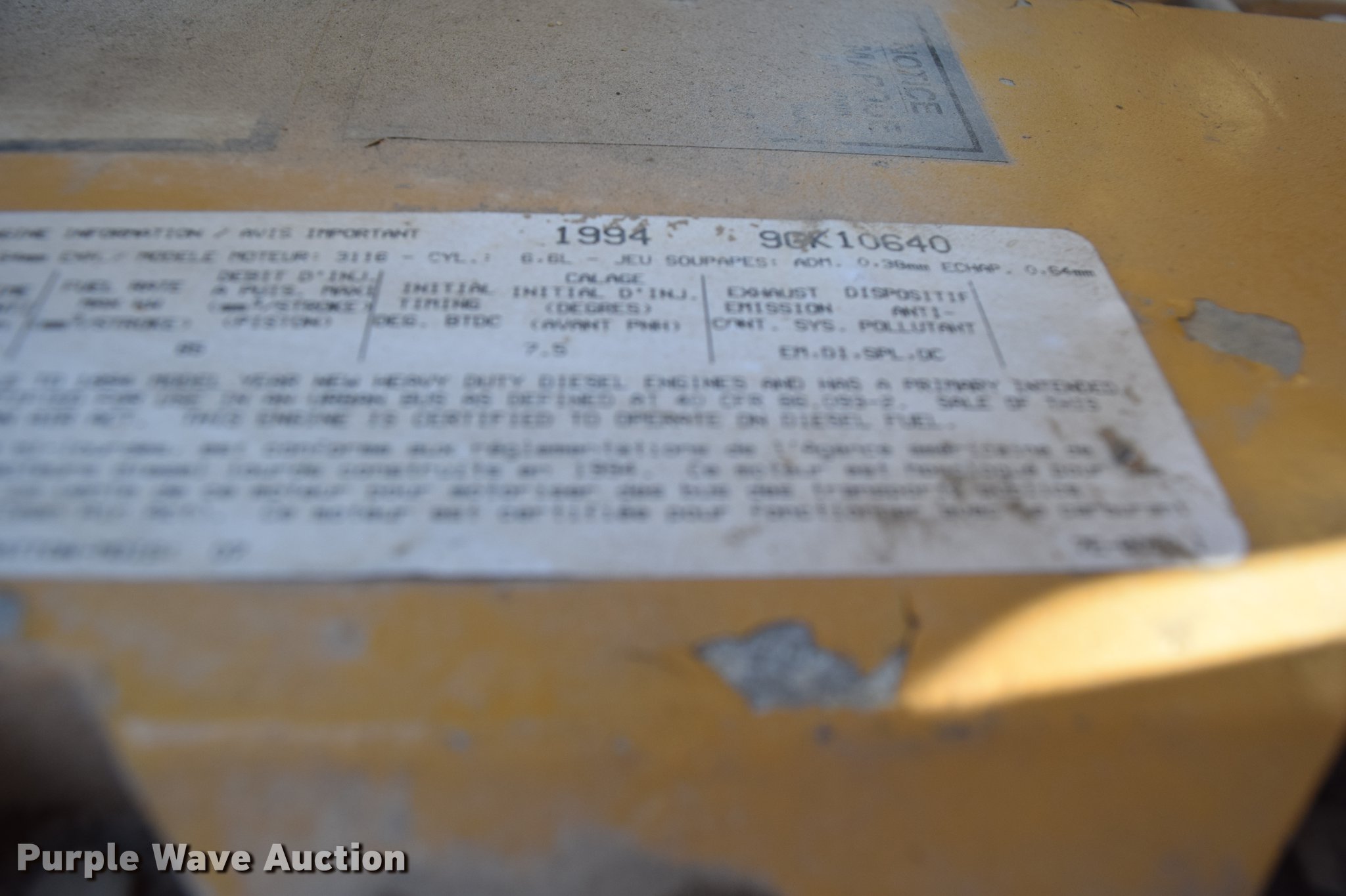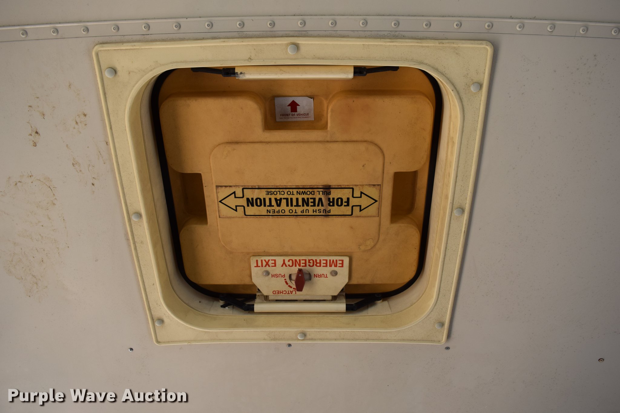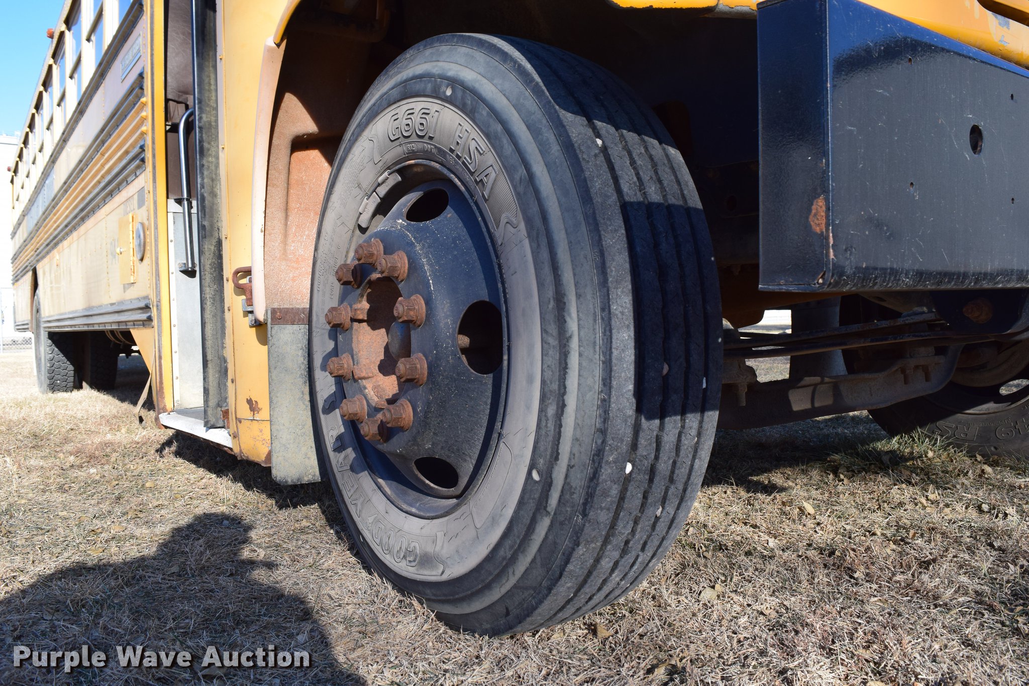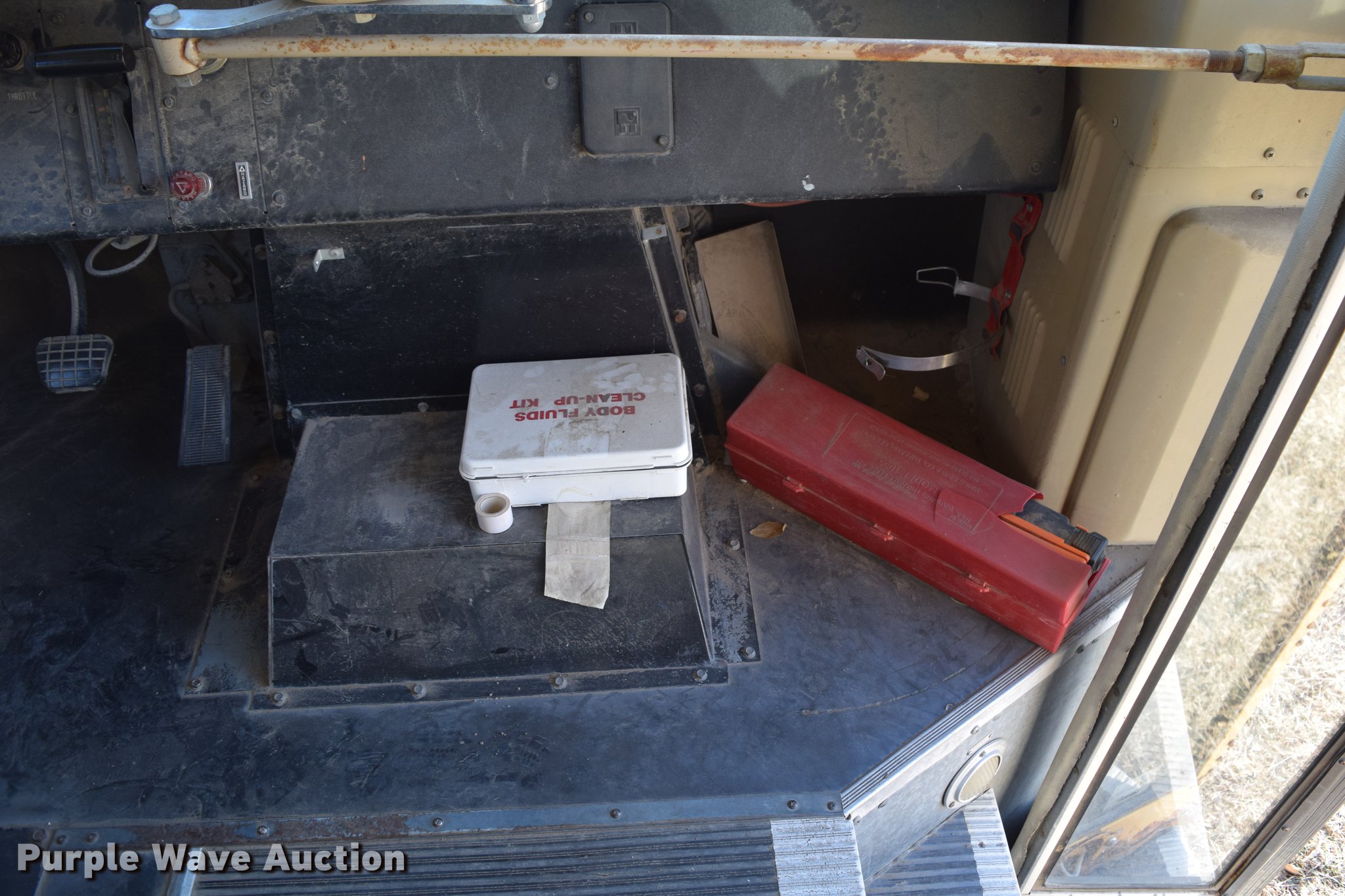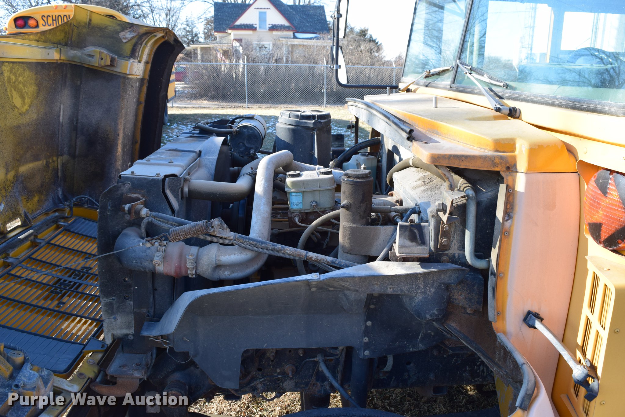 Purple Wave is selling a used Bus in Kansas. This item is a 1995 Chevrolet Blue Bird school bus with the following: 198,677 miles on odometer, Caterpillar 3116 6.6L L6 turbo diesel engine, Serial 9GK10640, Automatic transmission, Single axle, Heat, AM/FM/Cassette, 62 passenger capacity, Ceiling, rear, and side emergency exits, Emergency door alarms, Lighted stop sign, Rear tow hooks, Approx. 258" wheelbase, Spring suspension, Block heater, Hydraulic brakes, 10R22.5 tires, GVWR 27,960 lbs, Unit# 94-1