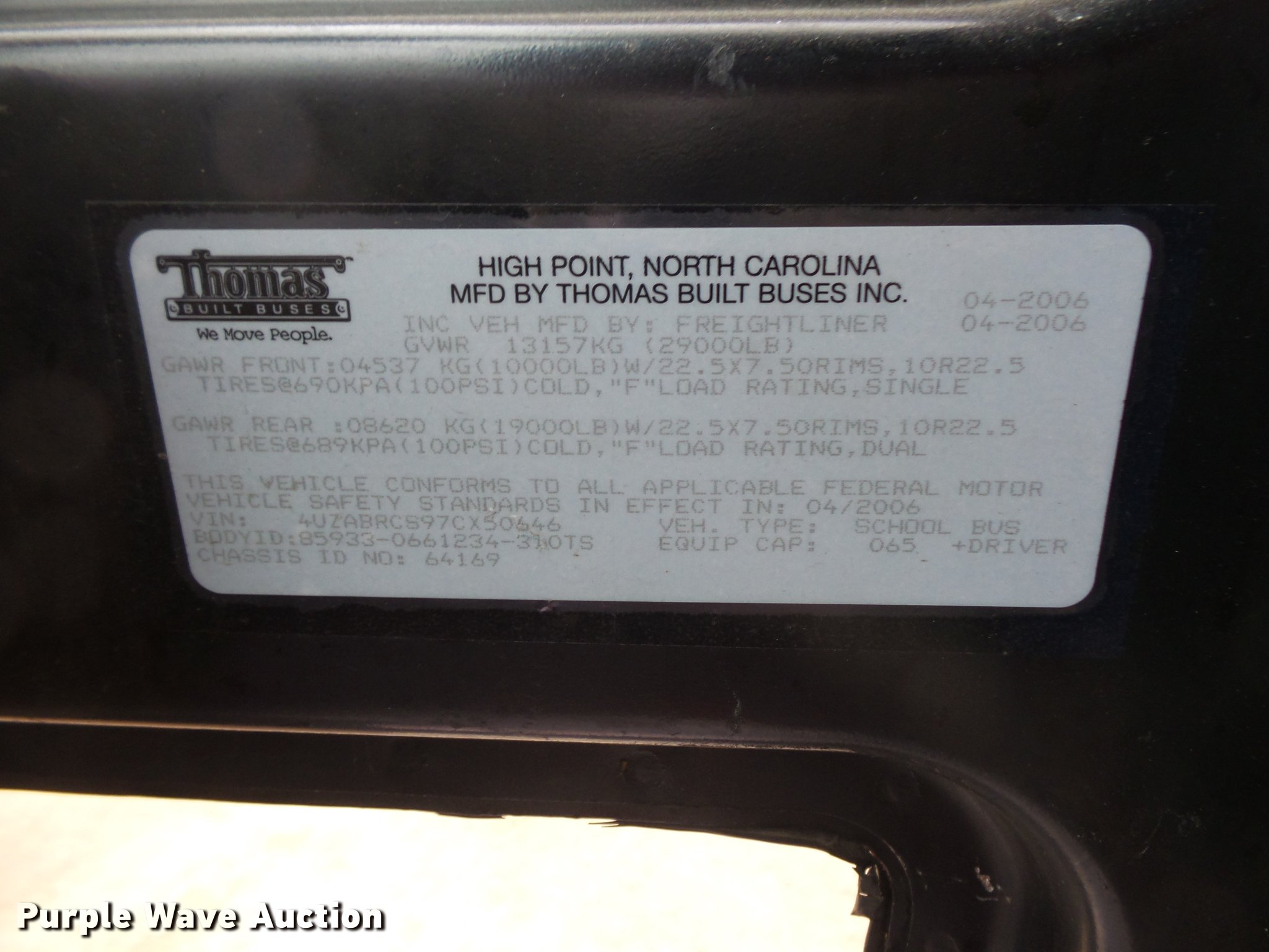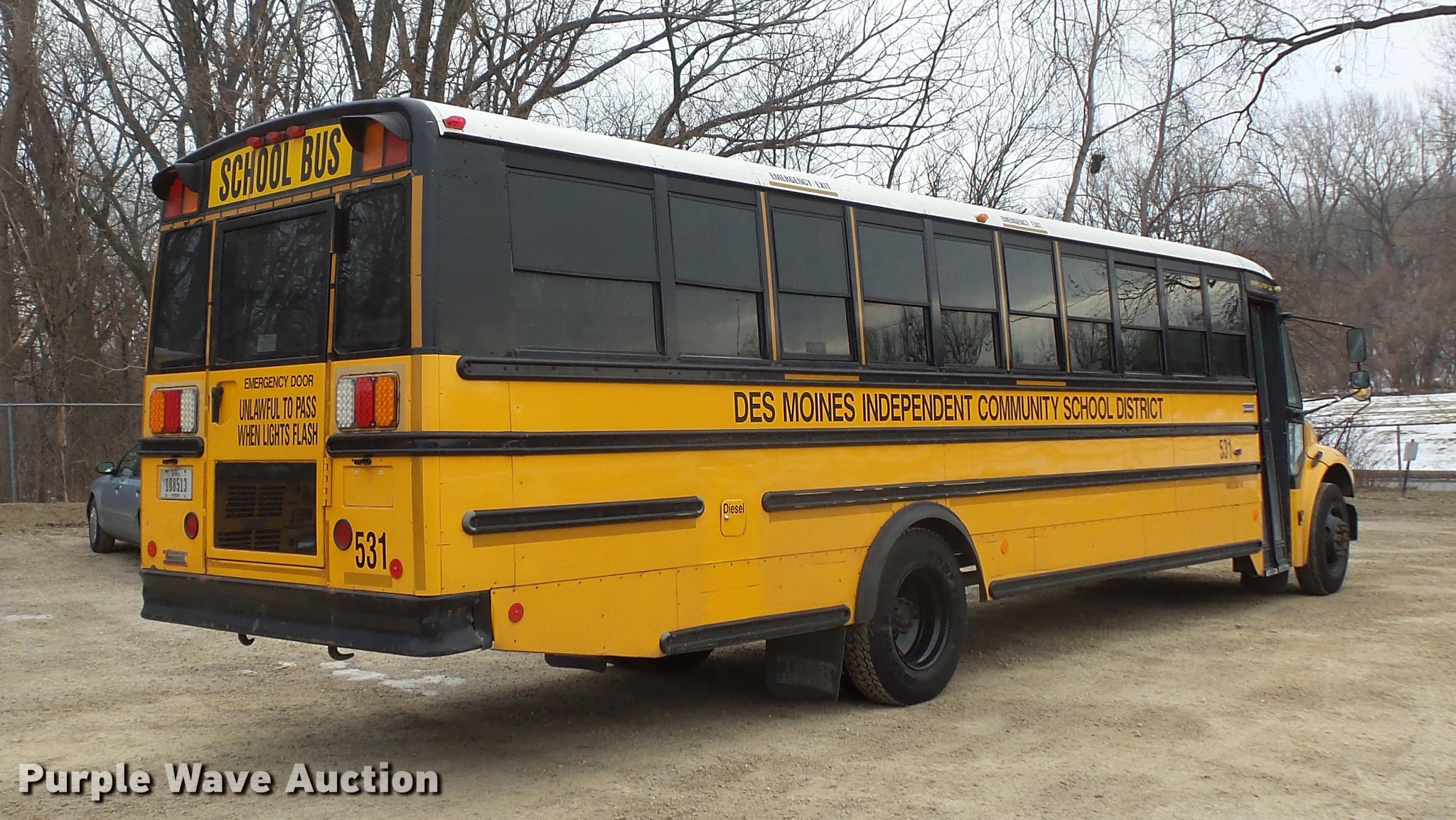 Purple Wave is selling a used Bus in Iowa. This item is a 2007 Freightliner school bus with the following: 169,025 miles on odometer, Mercedes-Benz MBE900 6.4L L6 turbo diesel engine, Automatic transmission, Single axle, Heat, AM/FM/CD, Air suspension seat, 44 passenger capacity, (22) adult seats, Ceiling, front, rear, and side emergency exits, Emergency door alarms, Beacon light, Lighted stop sign, Front and rear tow hooks, Air suspension, Air brakes, 10R22.5 tires, GVWR 29,000 lbs, Unit# 531