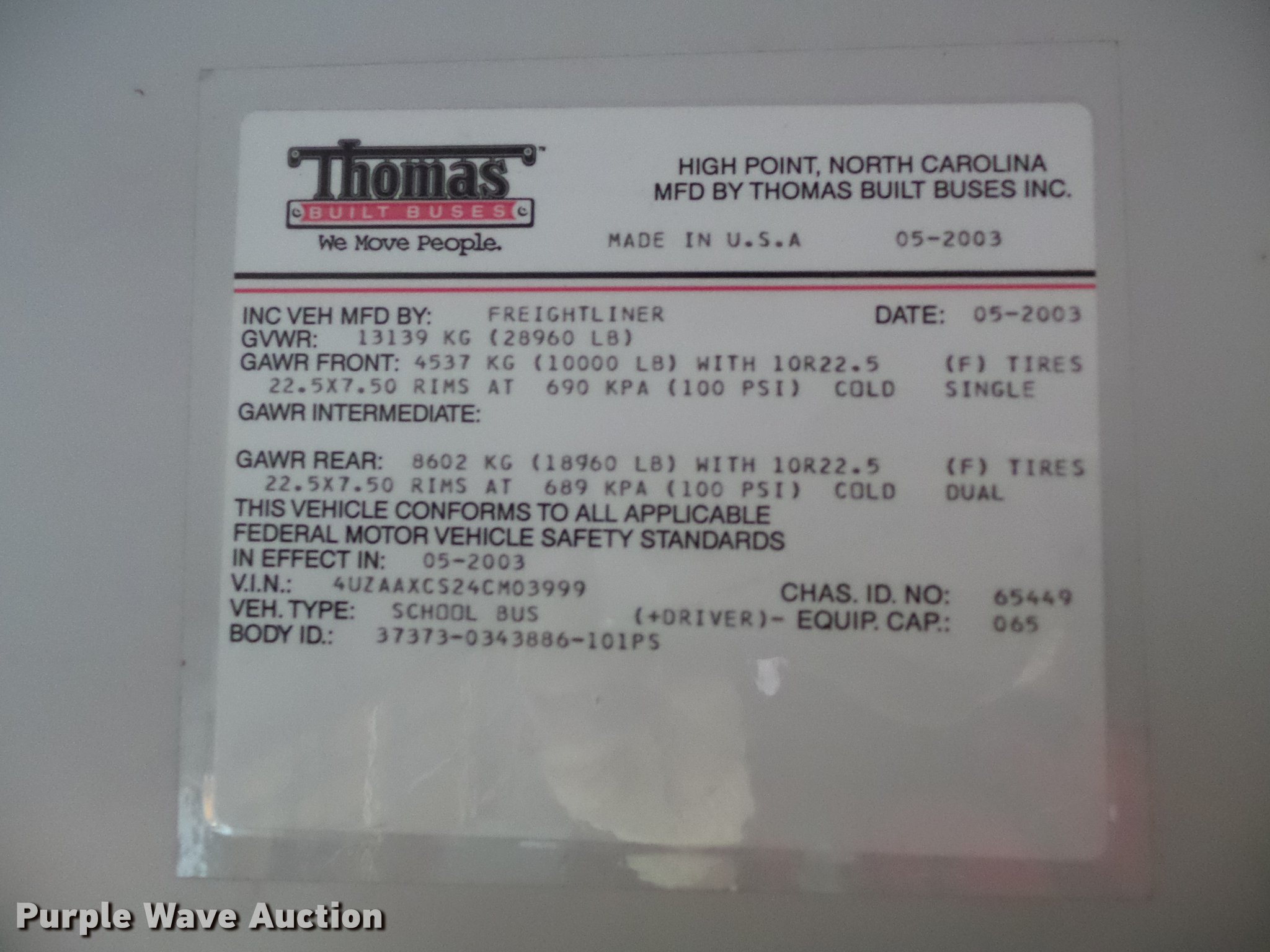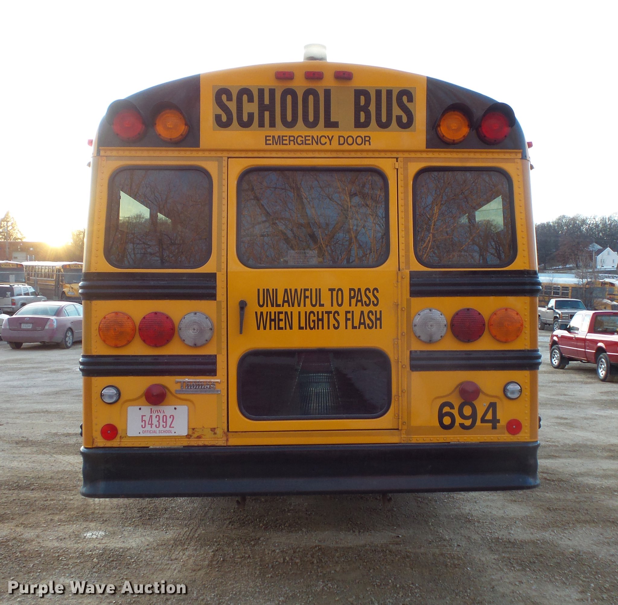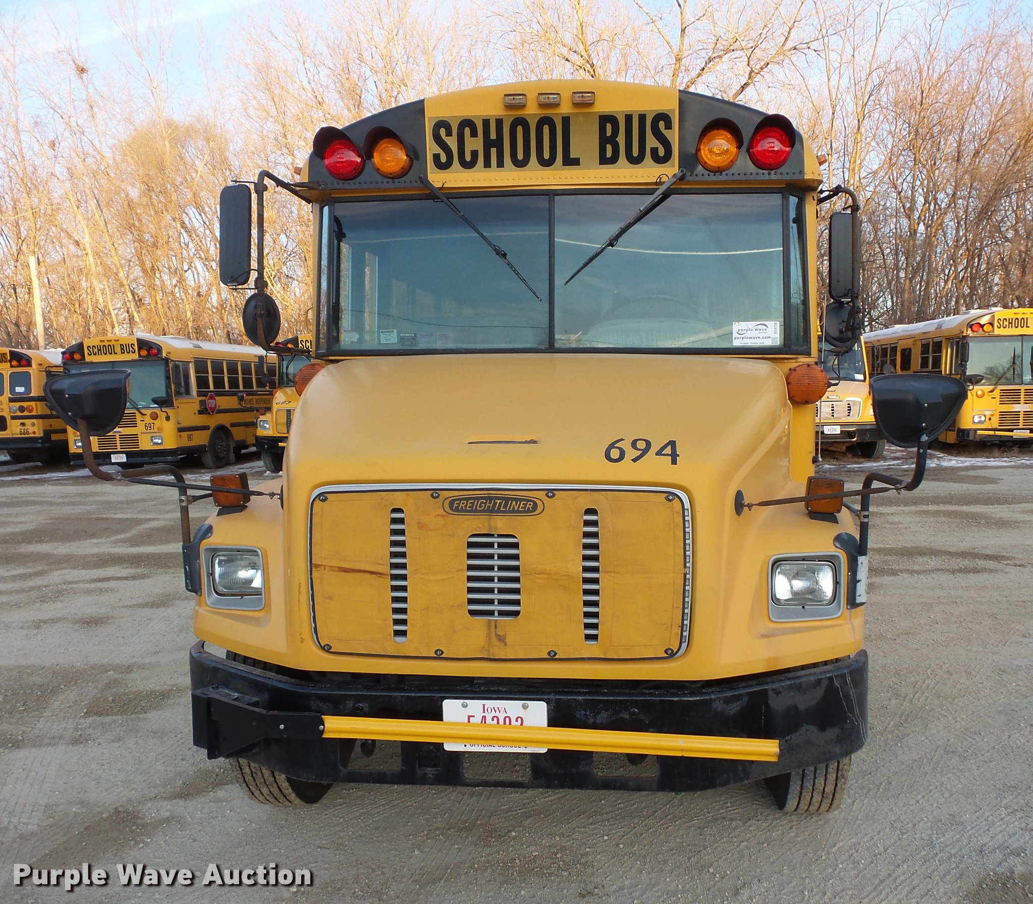 Purple Wave is selling a used Bus in Iowa. This item is a 2004 Freightliner FS65 101PS school bus with the following: 178,707 miles on odometer, Mercedes-Benz MBE900 6.4L L6 turbo diesel engine, Automatic transmission, Single axle, Heat, AM/FM/cassette, Air suspension seat, 44 passenger capacity, (22) adult seats, Ceiling, front, rear, and side emergency exits, Emergency door alarms, Beacon light, Lighted stop sign, Front tow hooks, Air suspension, Air brakes, 10R22.5 tires, GVWR 28,960 lbs, Unit# 694