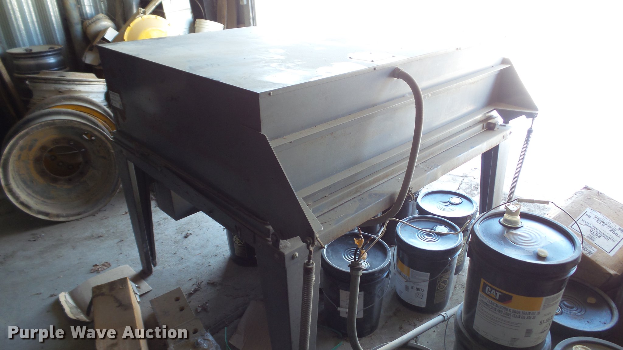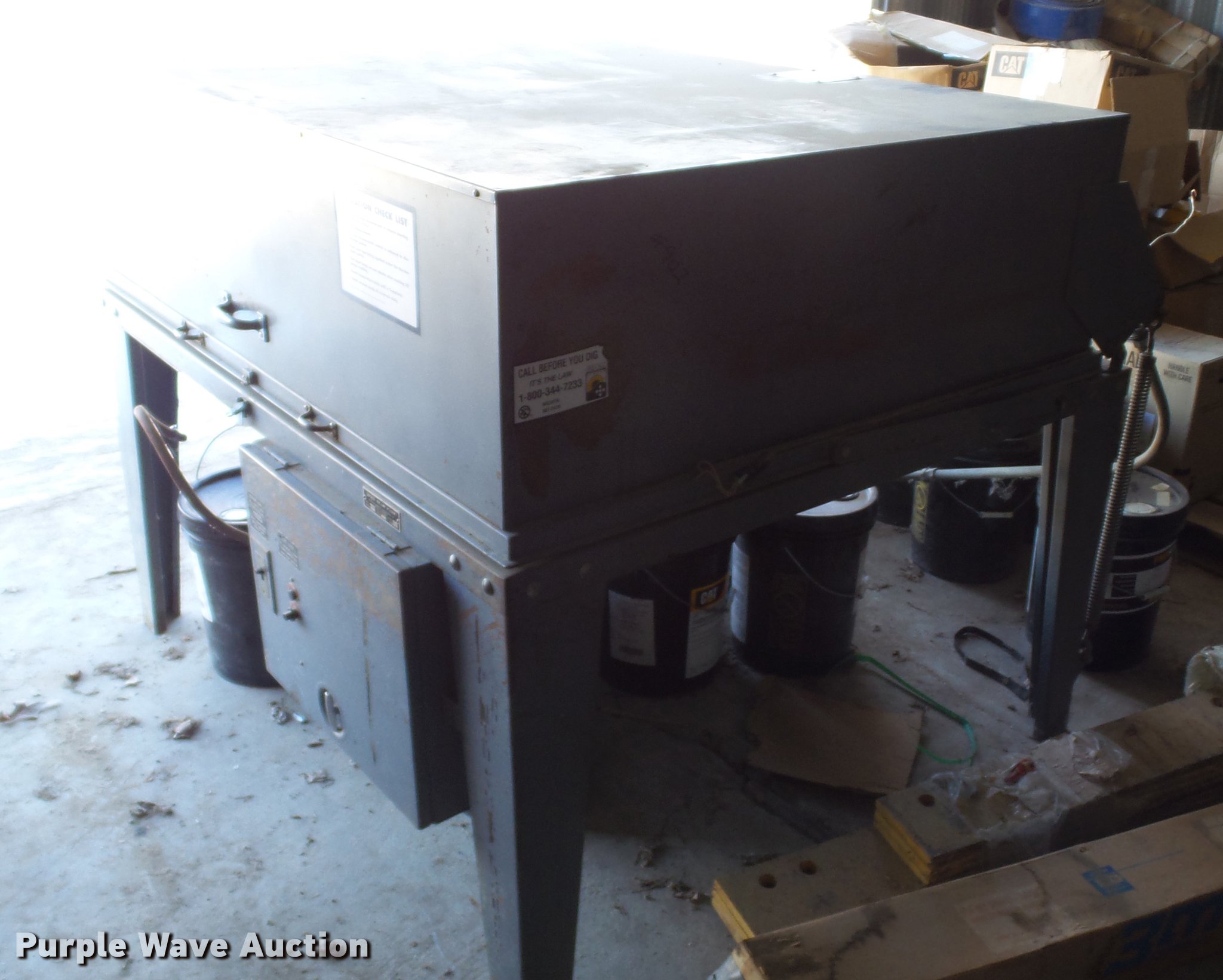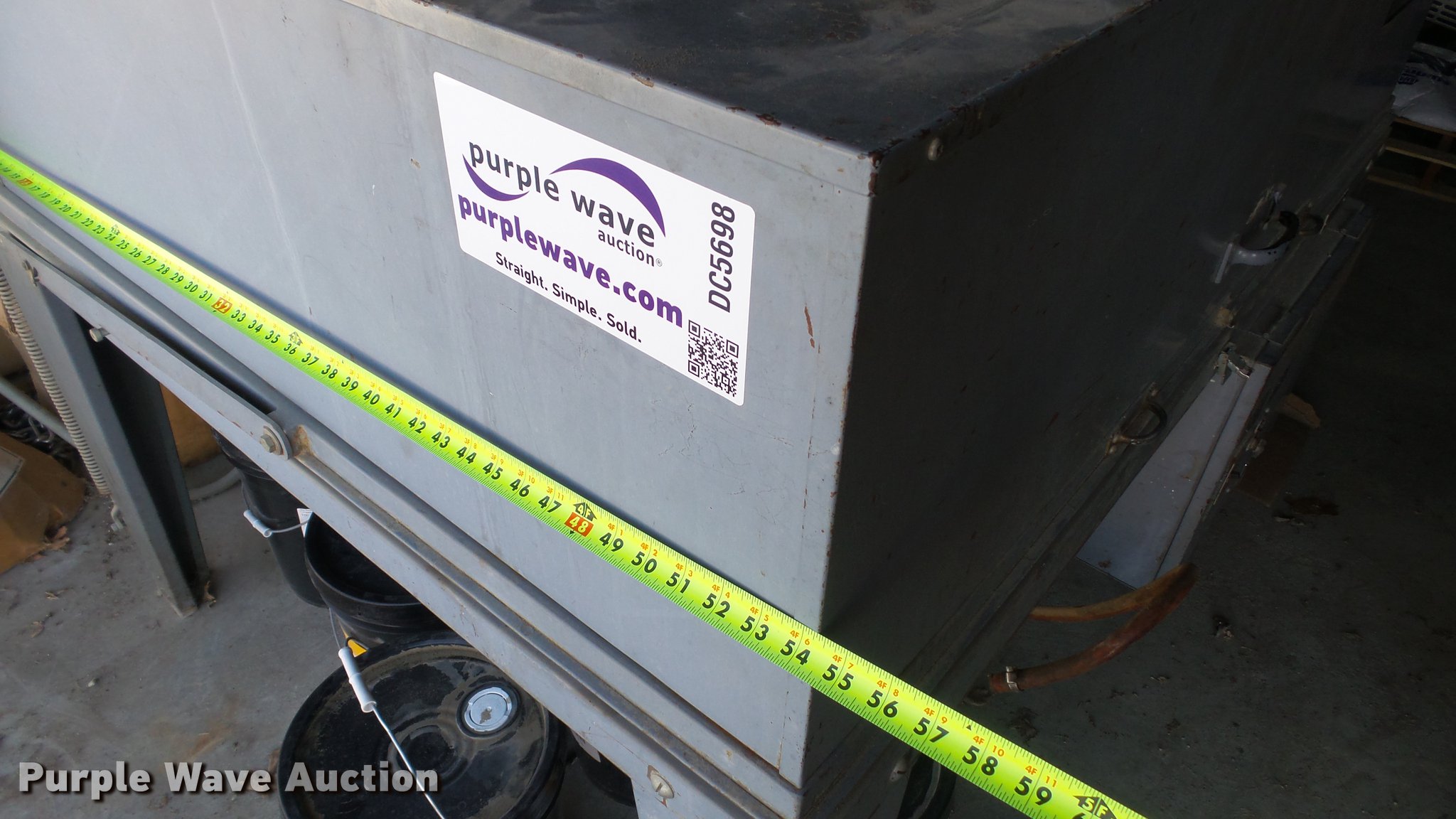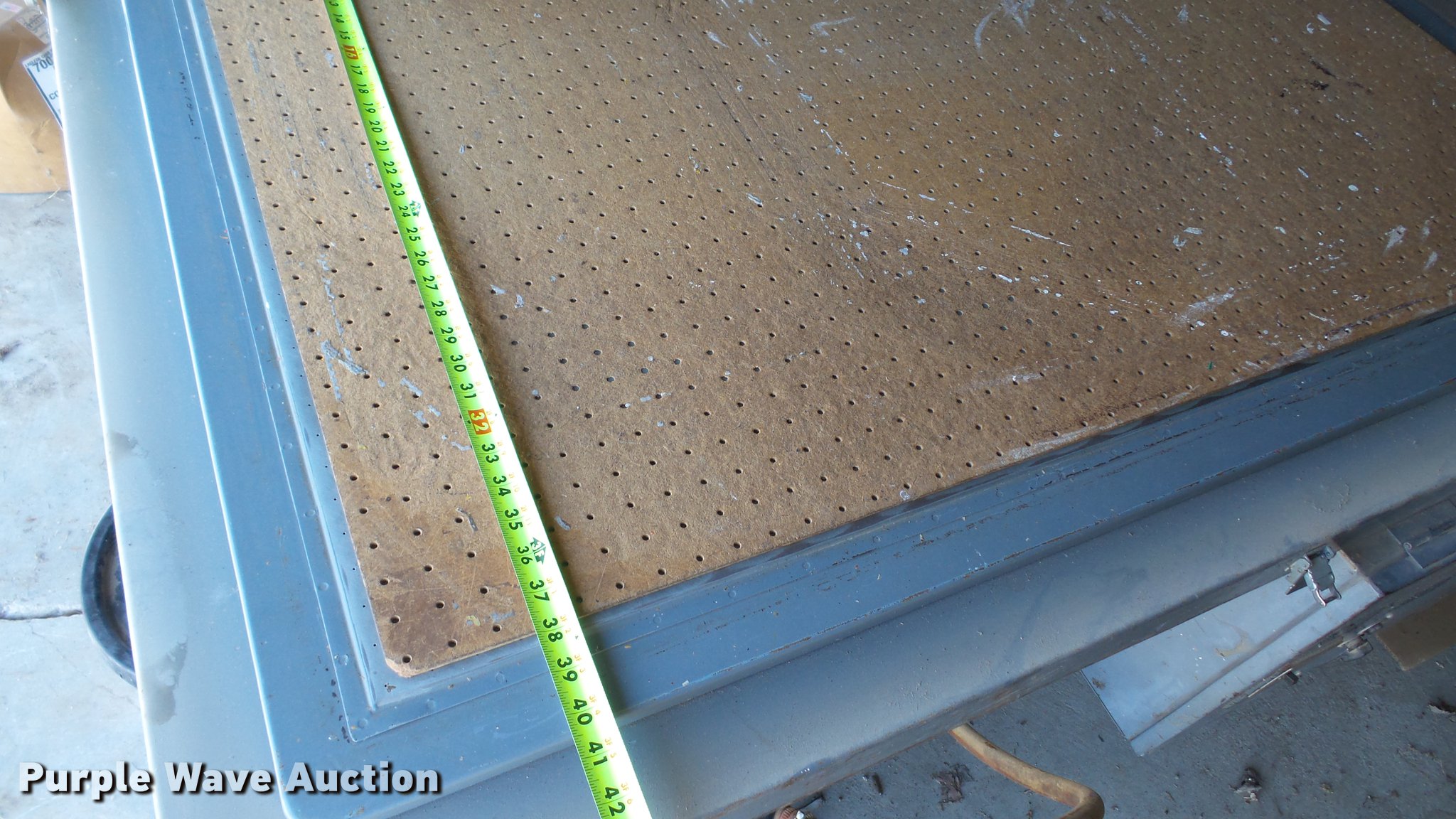 Scotchlite VAL-1 heat lamp applicator machine. 54"L x 57.5"W x 4'H, 3'L x 4'W working surface, 7,500 watts, 220v, Dayton Speedaire vacuum pump, Serial 1345. Marion County. 142 N Coble St. Marion, KS 66861