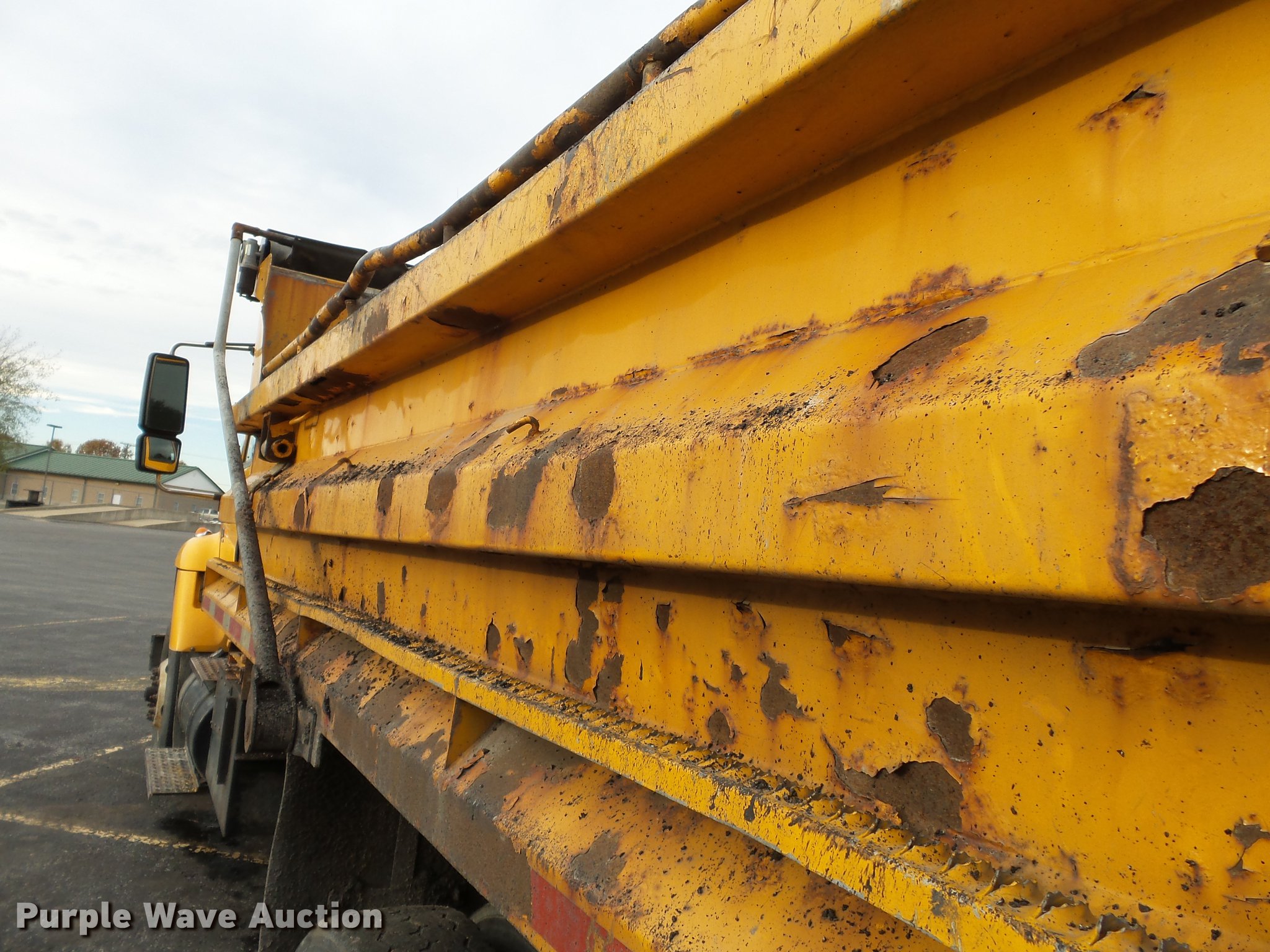 Purple Wave is selling a used Construction Dump Truck in Missouri. This item is a 2002 International 7400 dump truck with the following: 187,378 miles on odometer, 11,947 hours on meter, International DT530 8.7L L6 turbo diesel engine, Allison automatic transmission, Tandem axle, AC and heat, Tilt, AM/FM, Power windows, Power and heated mirrors, Air suspension seat, Block heater, 16'L x 96"W steel dump bed, 36" side height, Roll tarp, Bed vibrator, Single ram hoist, Single fuel tank, Trailer wiring, Walking beam suspension, Air brakes, Double frame, 213" wheelbase, 315/80R22.5 front tires, 11R22.5 rear tires, GVWR 58,000 lbs, FAWR 18,000 lbs, IAWR 20,000 lbs, RAWR 20,000 lbs, Dead battery, MODOT ID 6777
