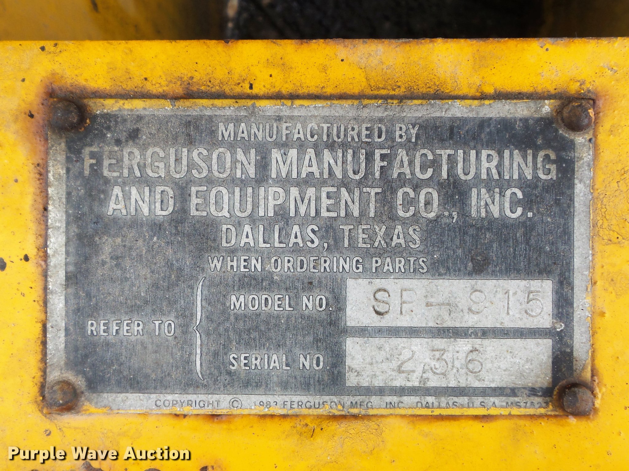 Ferguson SP-915 pneumatic roller has sold in Webster Groves, Missouri for $1375. Item DC7449 sold on February 6th, 2018.