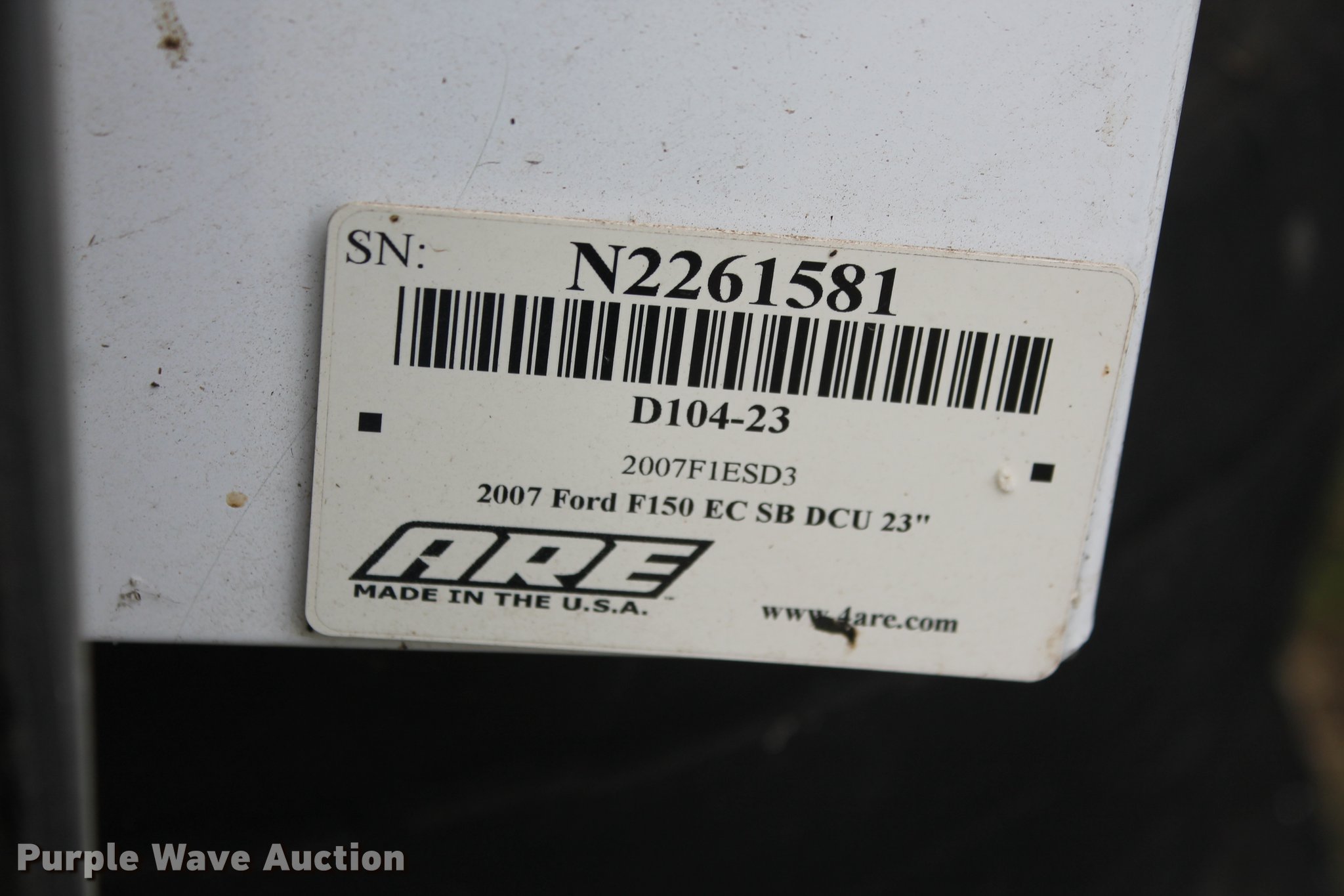 ARE topper. 80"L, Rear swing-out doors, Folding side doors, Removed from a 2007 Ford F150 pickup truck with 6.5' bed, Serial N2261581. Cleveland County Sheriff's Office - Open inspection Feb. 5. 10501 US-77. Slaughterville, OK 73051