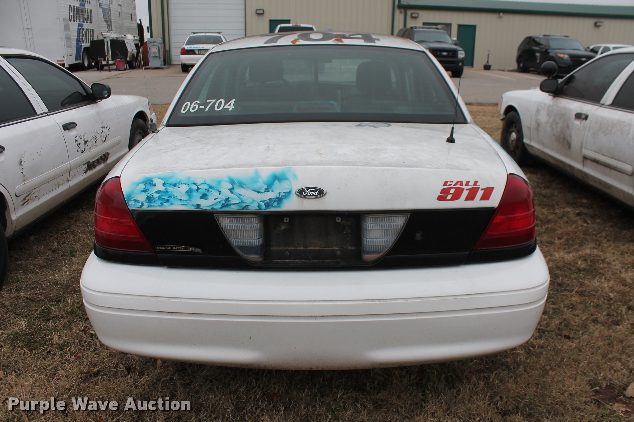 Purple Wave is selling a used Passenger Vehicle in Oklahoma. This item is a 2006 Ford Crown Victoria Police Interceptor with the following: 211,186 miles on odometer, 4.6L V8 SOHC 16V gas engine, Automatic transmission, AC and heat, Tilt, Cruise, AM/FM, Power windows, locks, mirrors, and seat, Cloth interior, P235/55R17 tires, Unknown running condition, Engine issues, will not fire, Battery weak, Check engine light on, Emergency lighting, sirens, decals and associated equipment will be removed prior to auction., Unit# 06-704