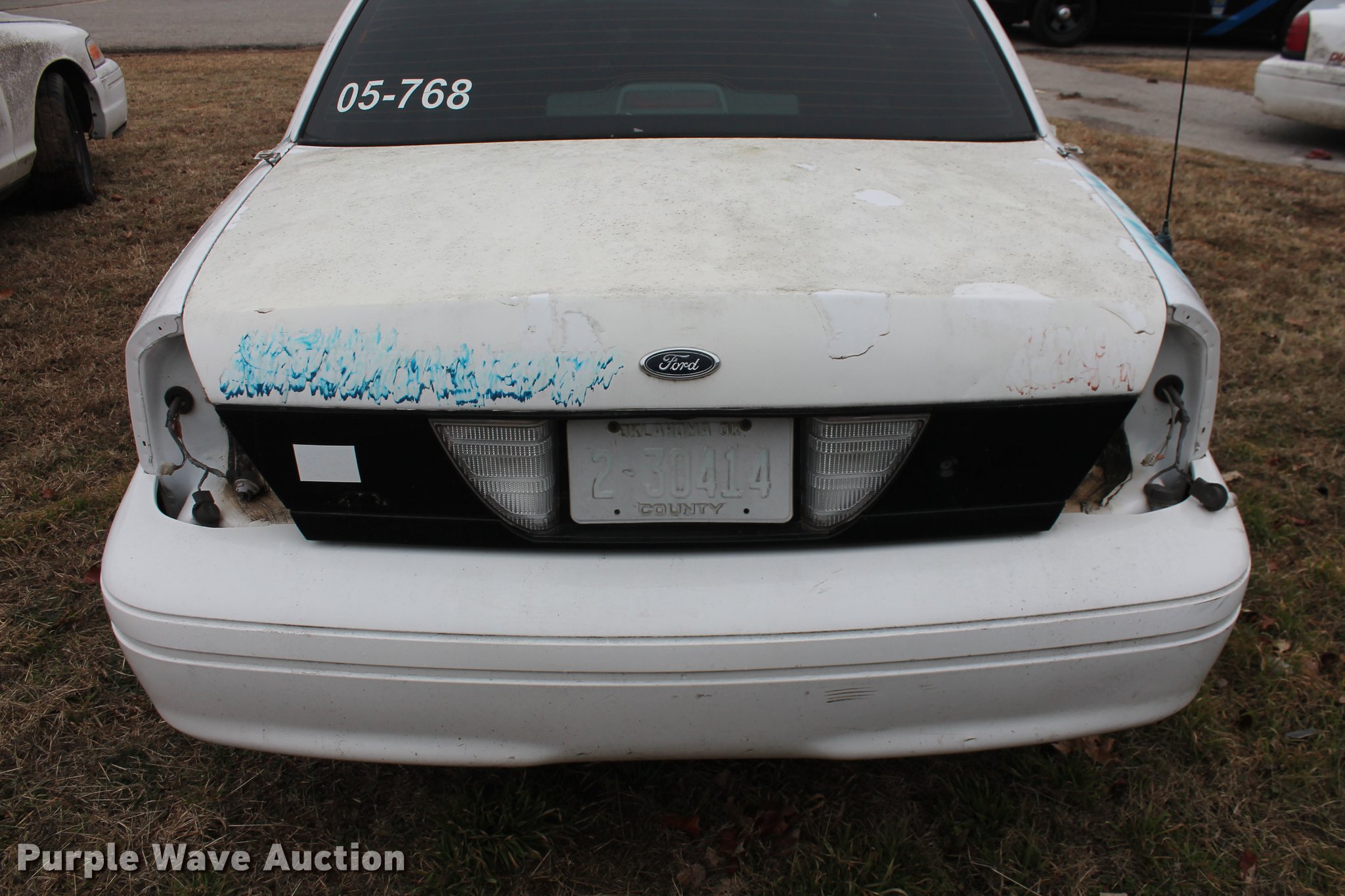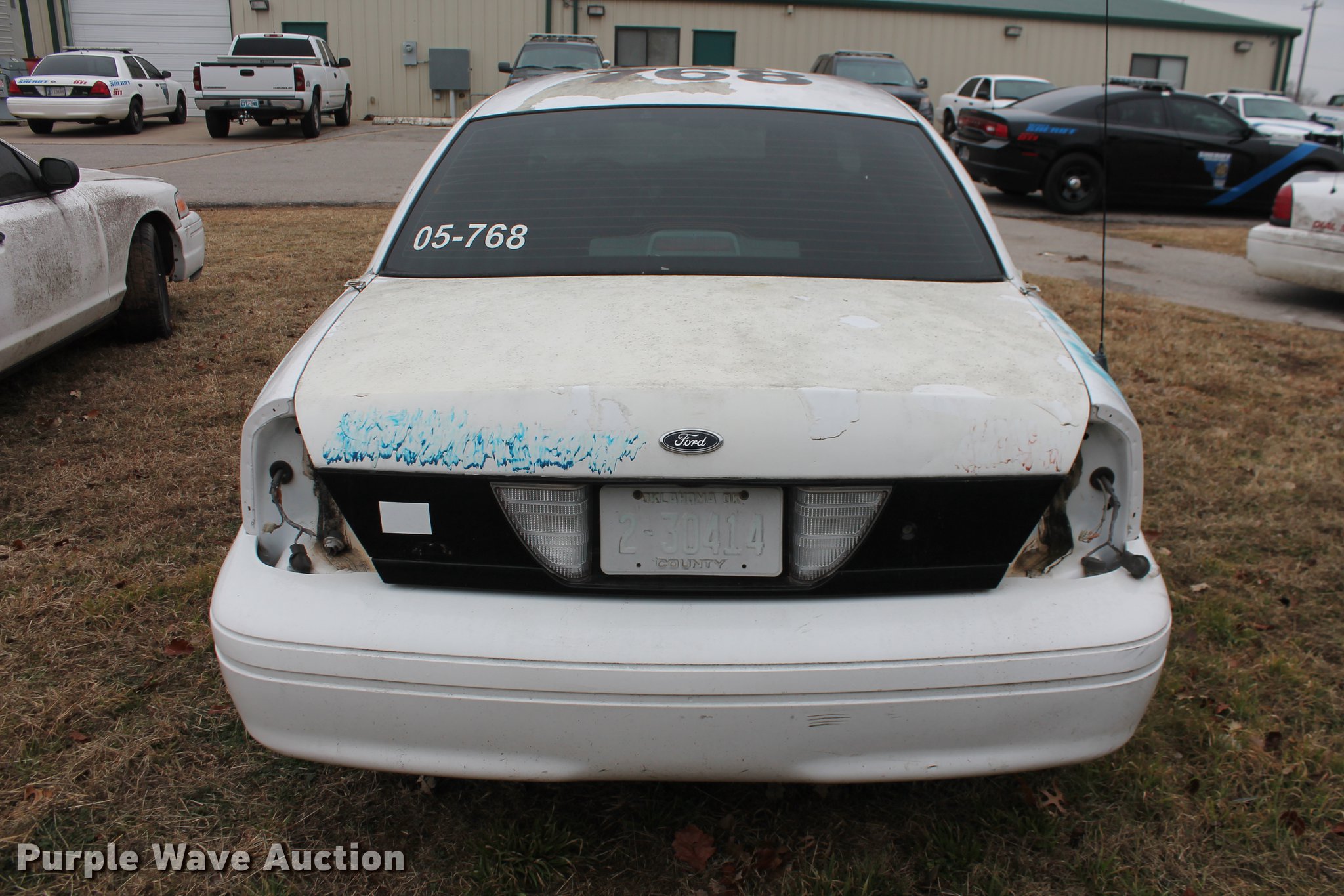 Purple Wave is selling a used Passenger Vehicle in Oklahoma. This item is a 2005 Ford Crown Victoria Police Interceptor with the following: 235,095 miles on odometer, 4.6L V8 SOHC 16V gas engine, Automatic transmission, AC and heat, Tilt, Cruise, AM/FM, Power windows, locks, and mirrors, Cloth interior, P225/60R16 tires, Unknown running condition, Engine issues, will not fire, Battery weak, Check engine light on, Emergency lighting, sirens, decals and associated equipment will be removed prior to auction., Unit# 05-768