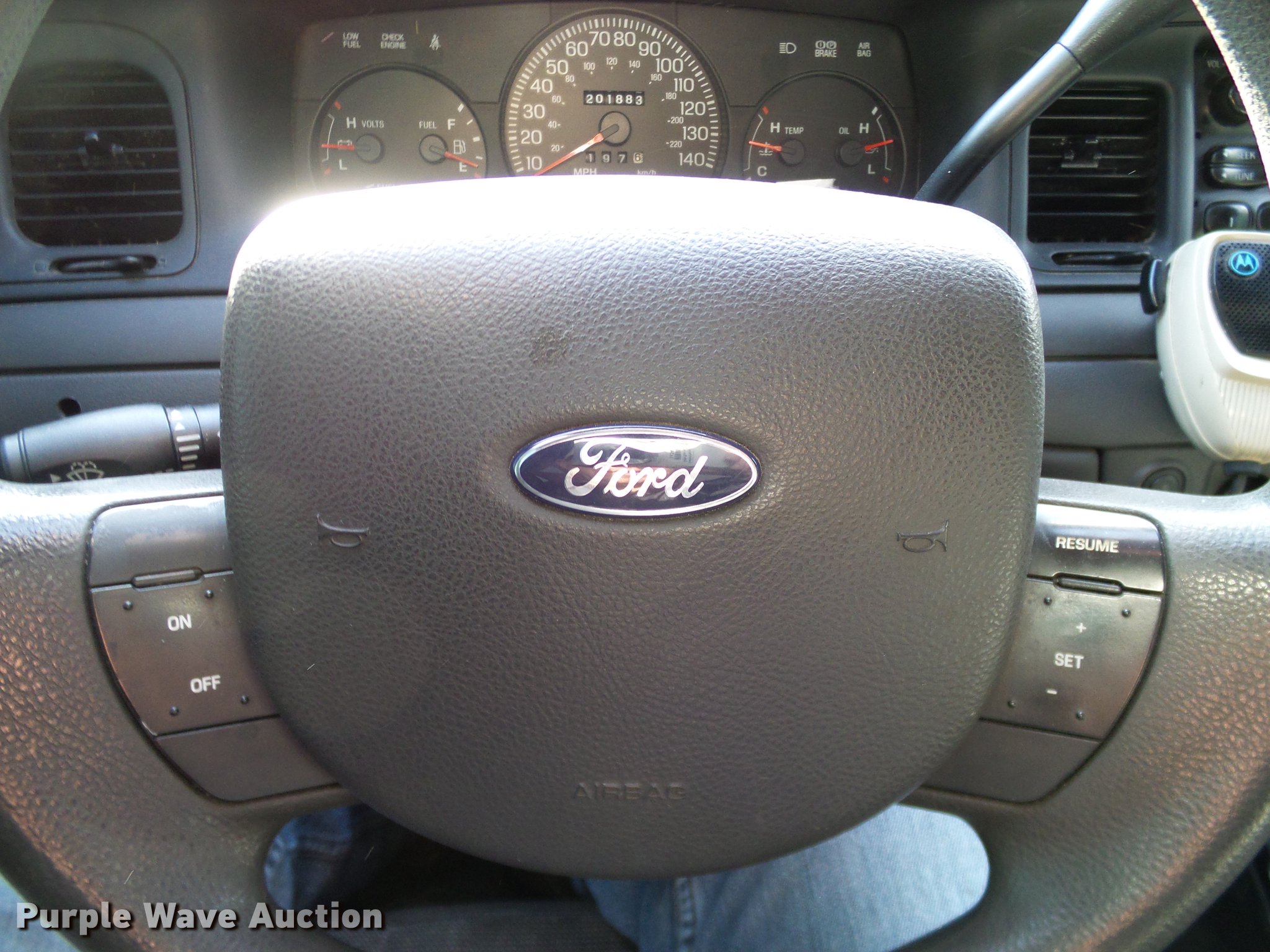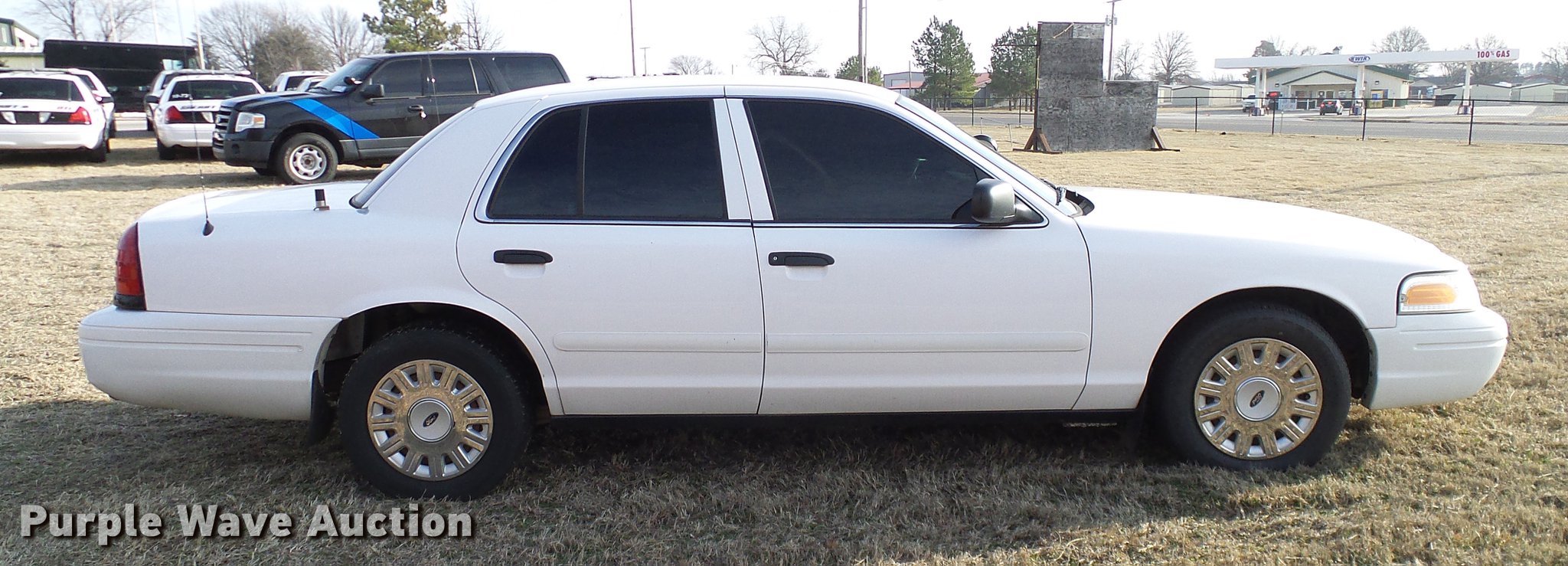 Purple Wave is selling a used Passenger Vehicle in Oklahoma. This item is a 2005 Ford Crown Victoria Police Interceptor with the following: 201,883 miles on odometer, 4.6L V8 SOHC 16V gas engine, Automatic transmission, AC and heat, Tilt, Cruise, AM/FM, Power windows, locks, mirrors, and seat, Cloth interior, 225/60R16 tires, Emergency lighting, sirens, decals and associated equipment will be removed prior to auction., Unit# 05-764