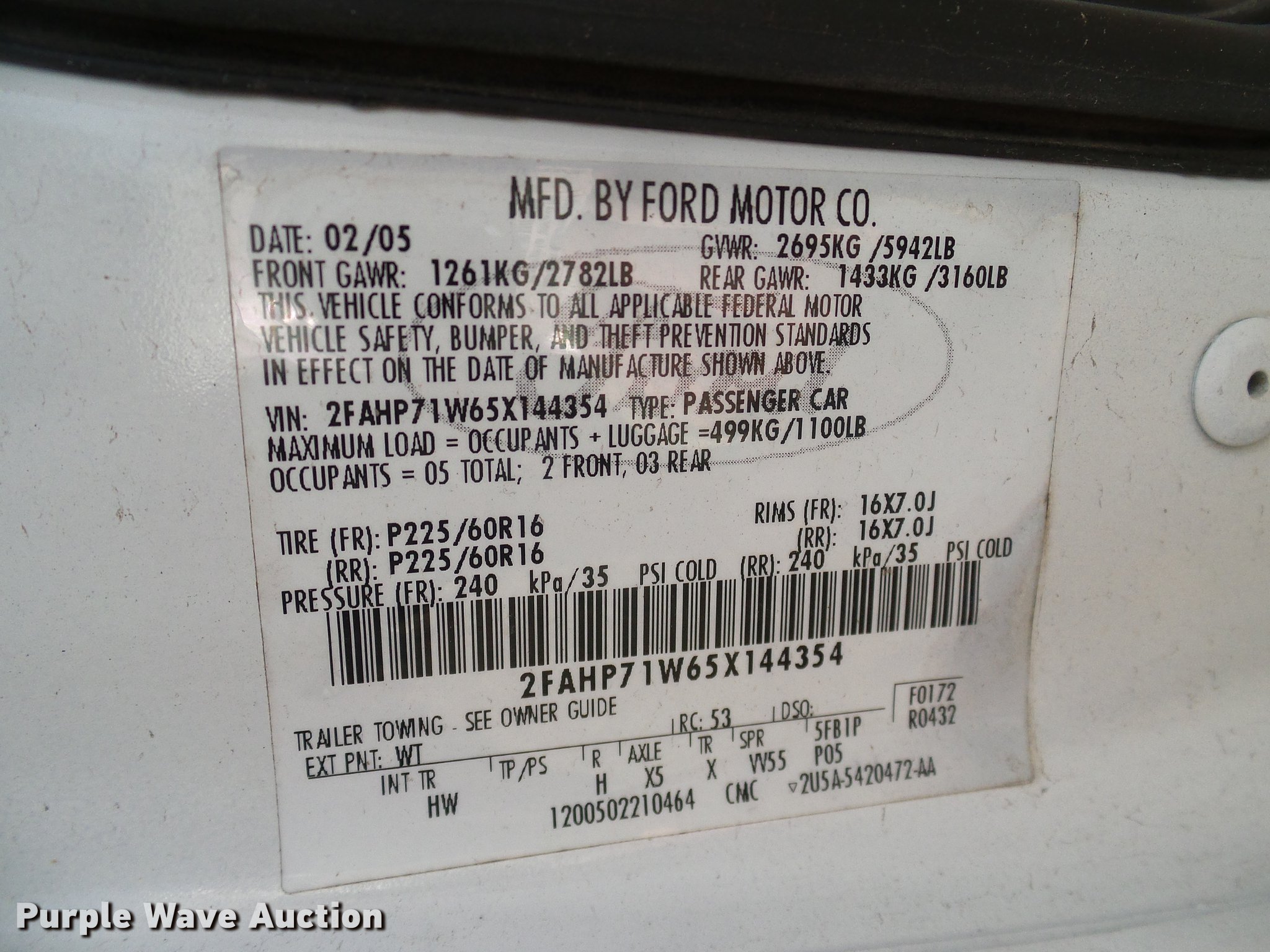 Purple Wave is selling a used Passenger Vehicle in Oklahoma. This item is a 2005 Ford Crown Victoria Police Interceptor with the following: 203,881 miles on odometer, 4.6L V8 SOHC 16V gas engine, Automatic transmission, AC and heat, Tilt, Cruise, AM/FM, Power windows, locks, mirrors, and seat, Cloth interior, P225/60R16 tires, Airbag light on, Emergency lighting, sirens, decals and associated equipment will be removed prior to auction., Unit# 05-746