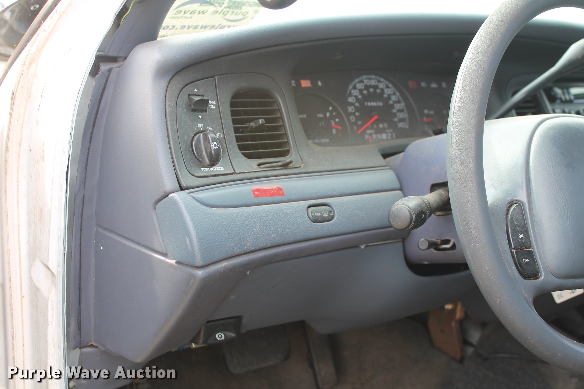 Purple Wave is selling a used Passenger Vehicle in Oklahoma. This item is a 2000 Ford Crown Victoria Police Interceptor with the following: 194,639 miles on odometer, 4.6L V8 SOHC 16V gas engine, Automatic transmission, AC and heat, Tilt, Cruise, AM/FM, Power windows, locks, and mirrors, Vinyl/cloth interior, P225/60R16 tires, Headlight missing, Weak battery, Emergency lighting, sirens, decals and associated equipment will be removed prior to auction., Unit# 00-732