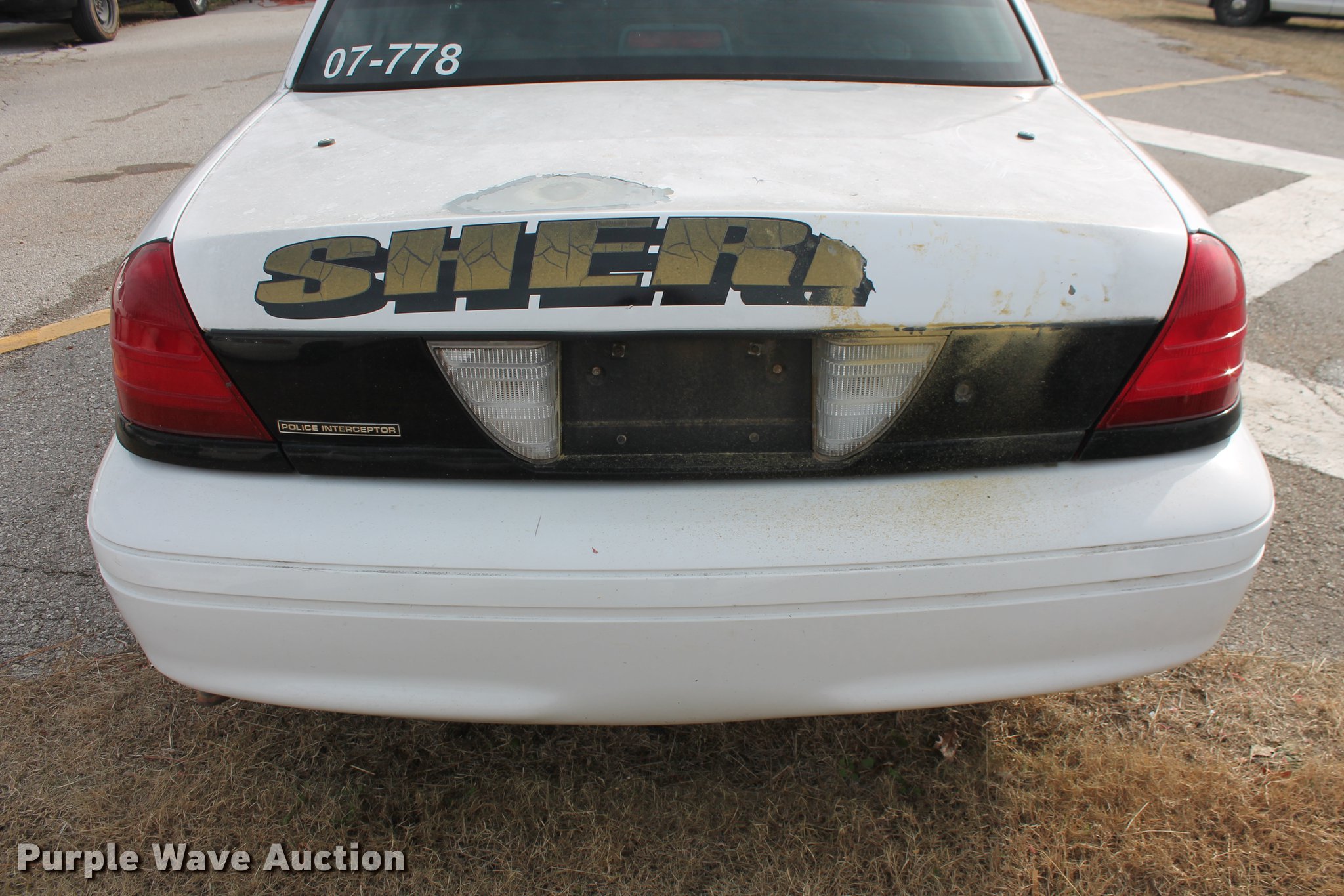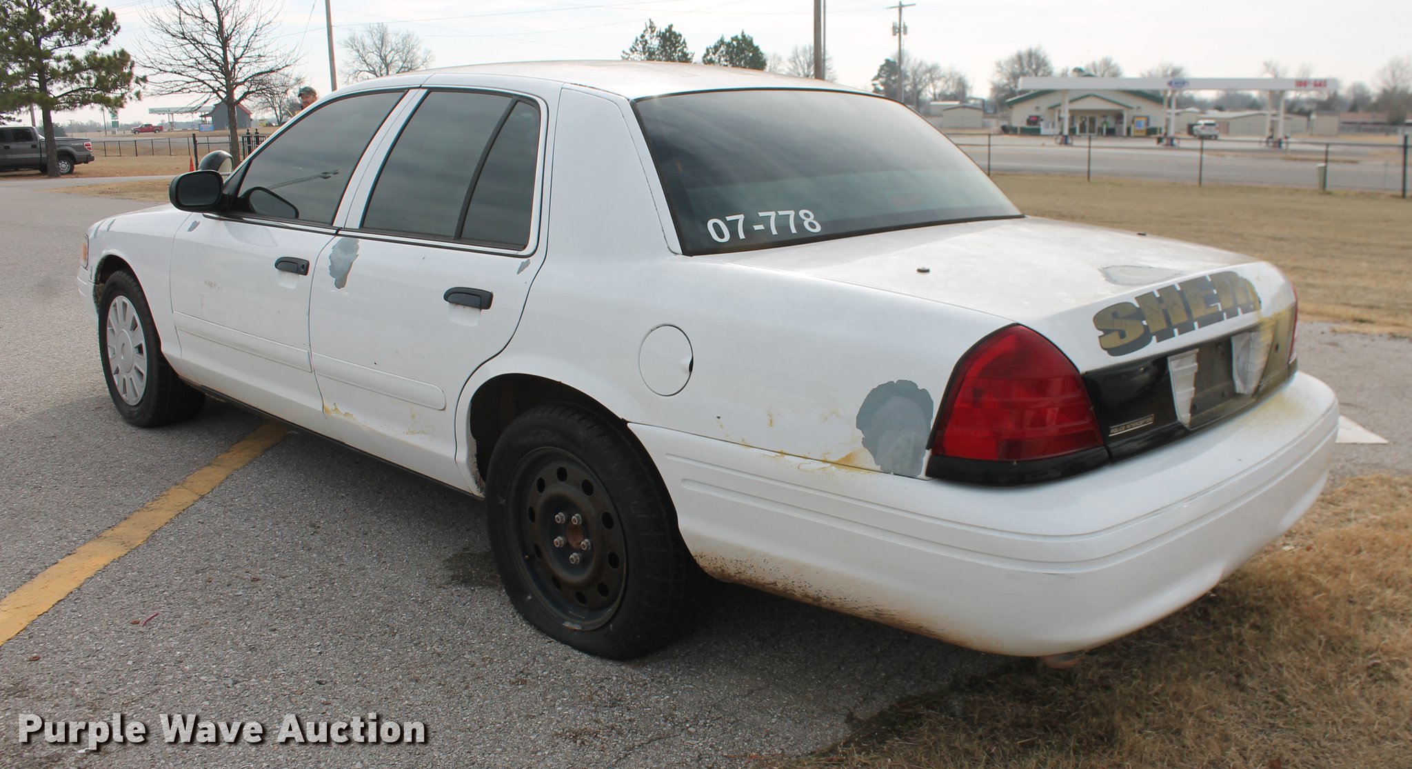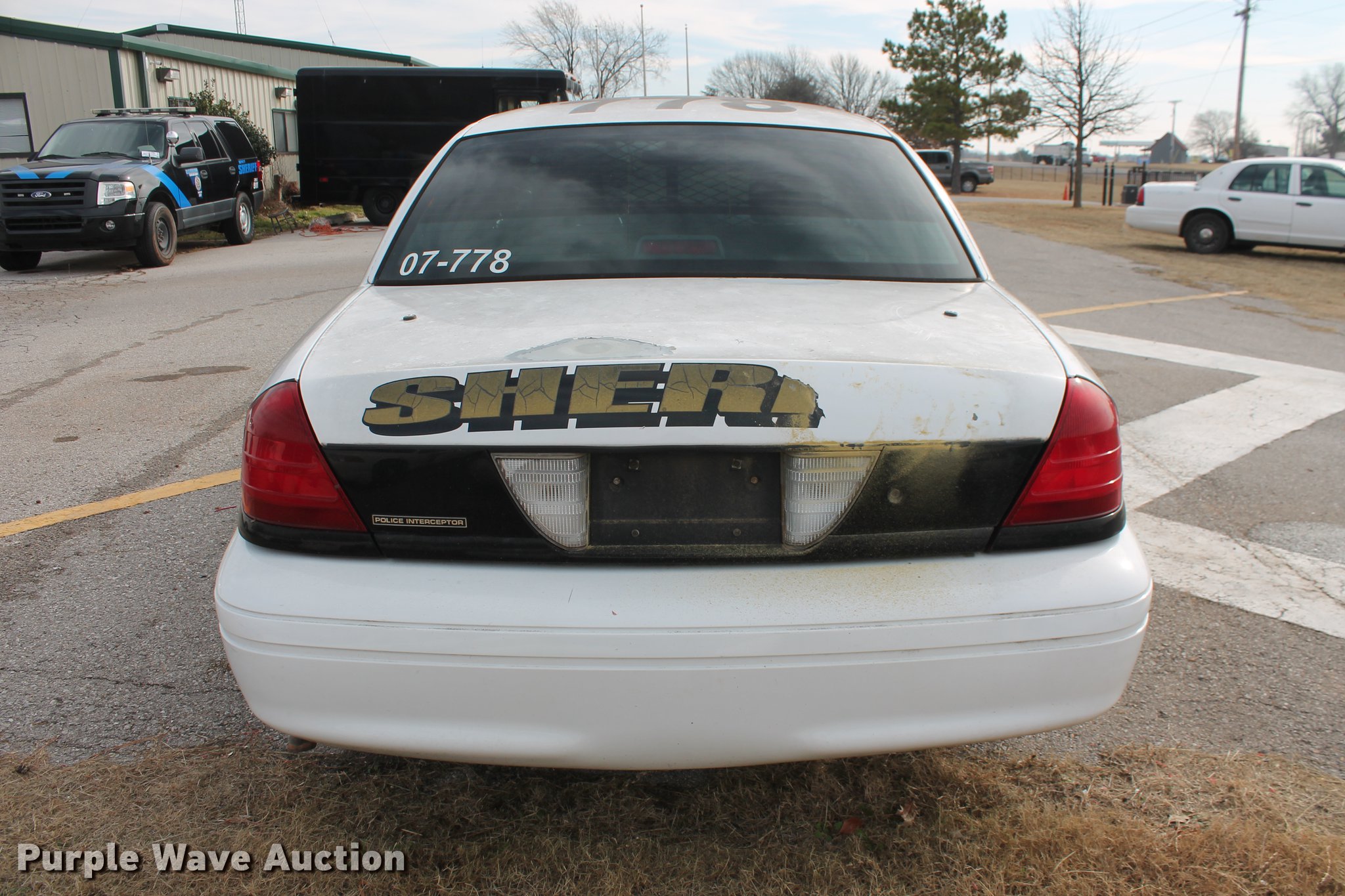 Purple Wave is selling a used Passenger Vehicle in Oklahoma. This item is a 2007 Ford Crown Victoria Police Interceptor with the following: 206,700 miles on odometer, 4.6L V8 SOHC 16V gas engine, Automatic transmission, AC and heat, Tilt, Cruise, AM/FM, Power windows, locks, mirrors, and seat, Vinyl/cloth interior, P235/55R17 tires, Engine turns over, but will not start, Check engine light on, Weak battery, Unknown operating condition, Emergency lighting, sirens, decals and associated equipment will be removed prior to auction., Unit# 07-778