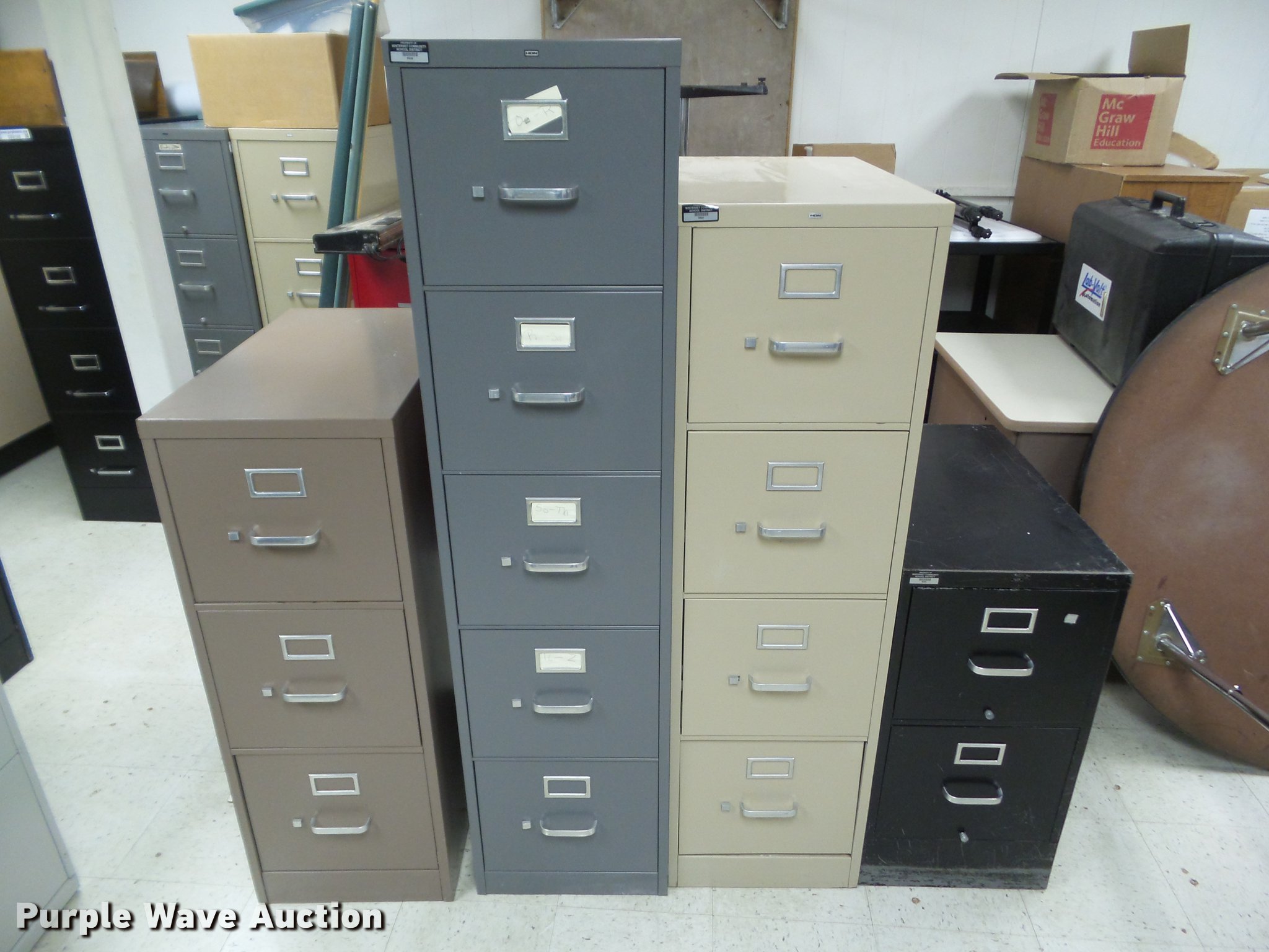 Purple Wave is selling a used Office Supplies and Equip. in Iowa. This item is a (22) file cabinets with the following: (2) five drawer, (9) four drawer, (4) three drawer, (7) two drawer