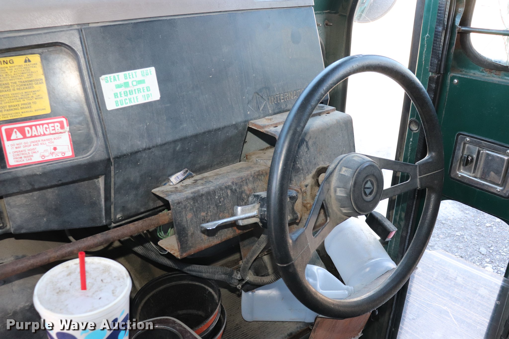 1996 International 4700LP recycling truck. 119,937 miles on odometer, 18,241 hours on meter, International DT466 7.6L L6 turbo diesel engine, Automatic transmission, Single axle, AC and heat, AM/FM, Suspension seat, Dual operators stations, PTO, Single rear exhaust stack, Recycling bed (6) compartments, Hydraulic controls, Unknown operating condition, Spring suspension, Air brakes, 21' wheelbase, 255/70R22.5 tires, AC and heat inoperable, Chipped windshield, Side window broken, Unknown operating condition, Unit# 540. Missouri title. Title distribution may be delayed up to 14 days from verification of funds. 1HTSLAAN2TH287253. City of Scott City. 1011 Rose-Con Rd. Scott City, MO 63780