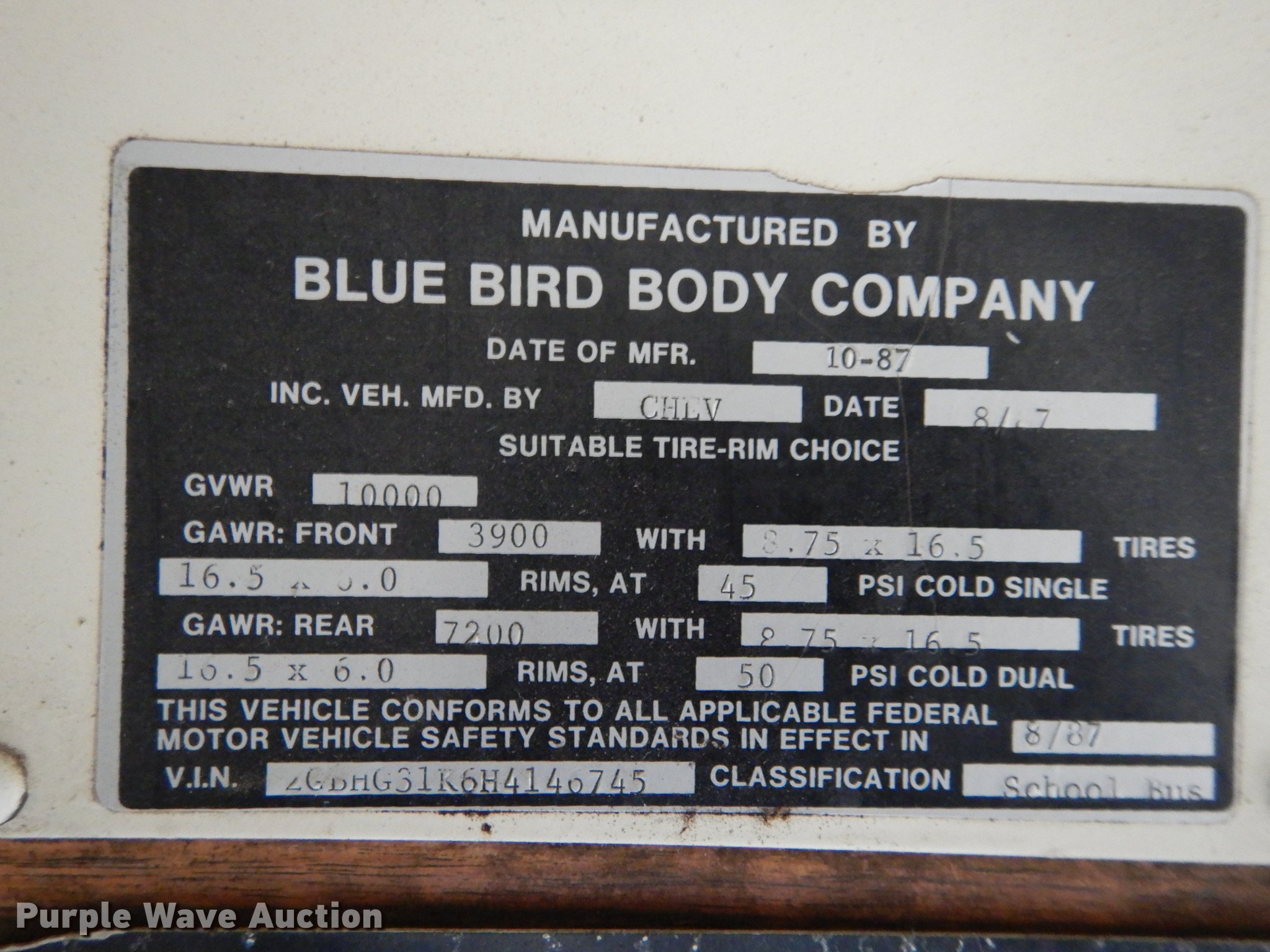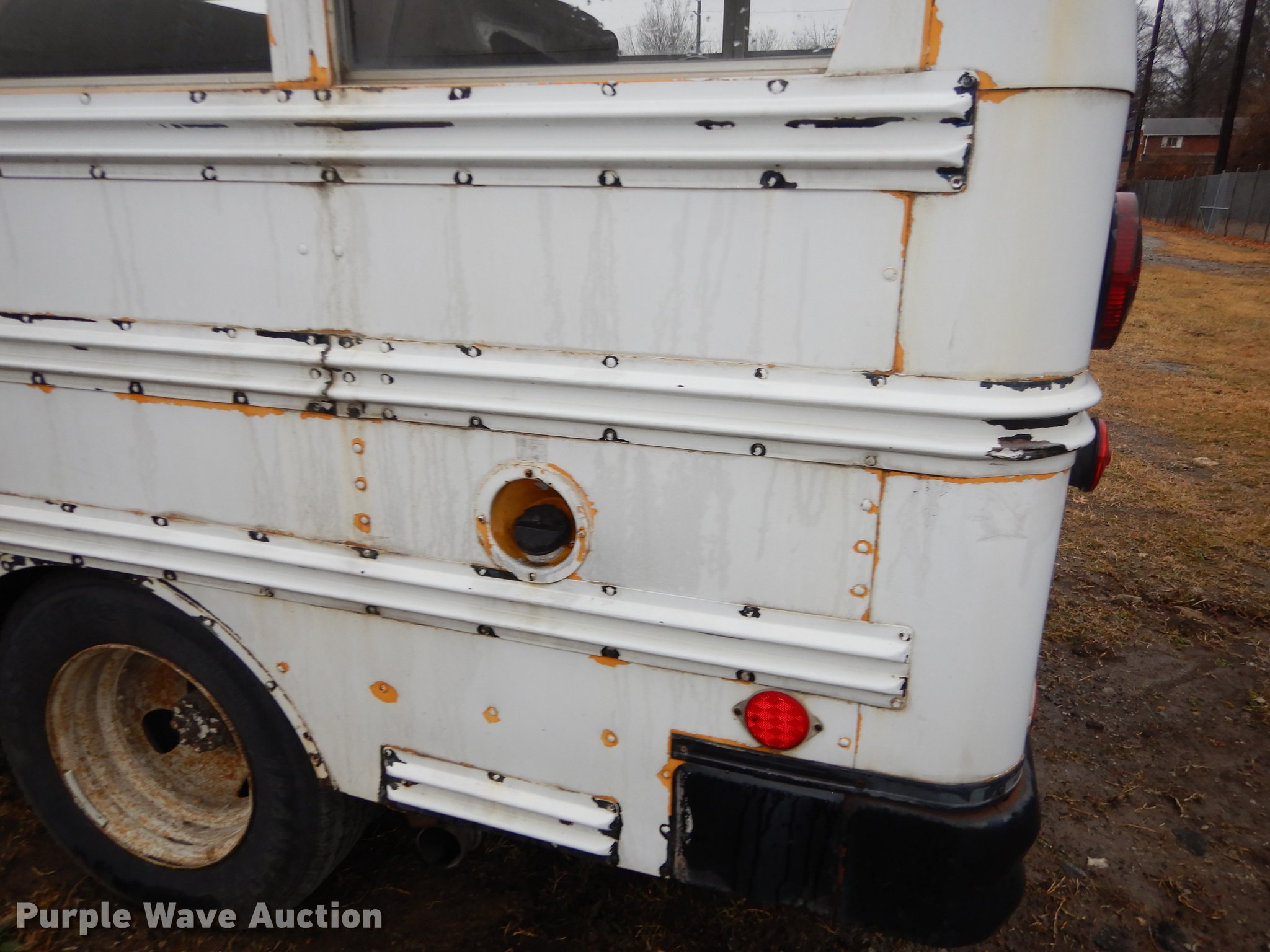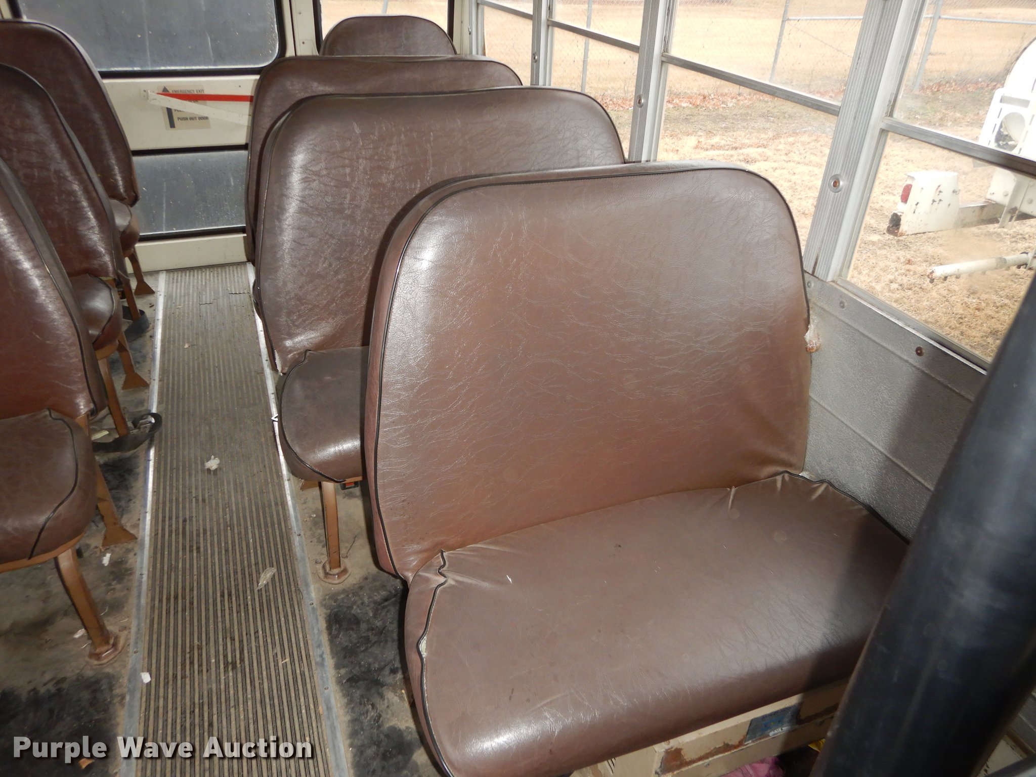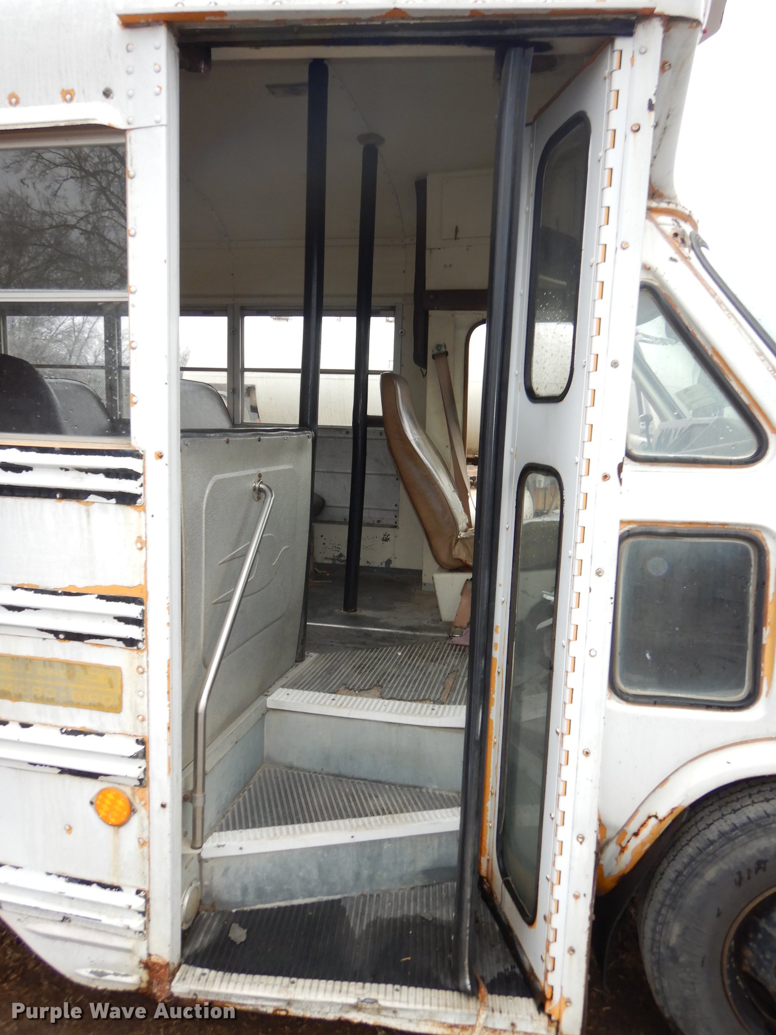 Purple Wave is selling a used Bus in Kansas. This item is a 1987 Chevrolet G30 school bus with the following: 85,707 miles on odometer, 5.7L V8 OHV 16V gas engine, Automatic transmission, Single axle, Heat, AM/FM, 21 passenger capacity, Rear emergency exits, Spring suspension, Hydraulic brakes, 126" wheelbase, Firestone 8.75R16.5 tires, Transmission fluid leaks, Transmission issues, needs replaced, Unit# 3335