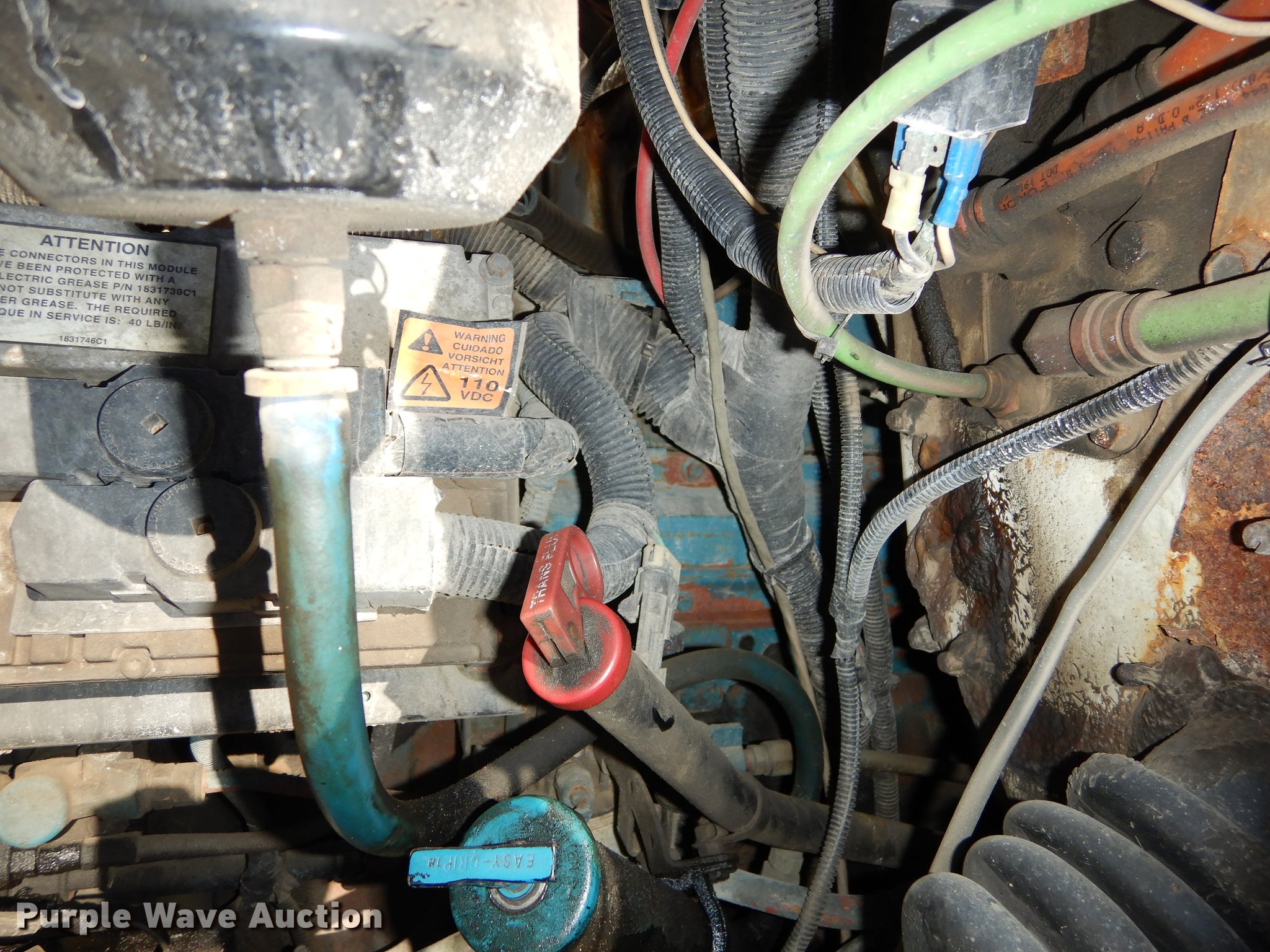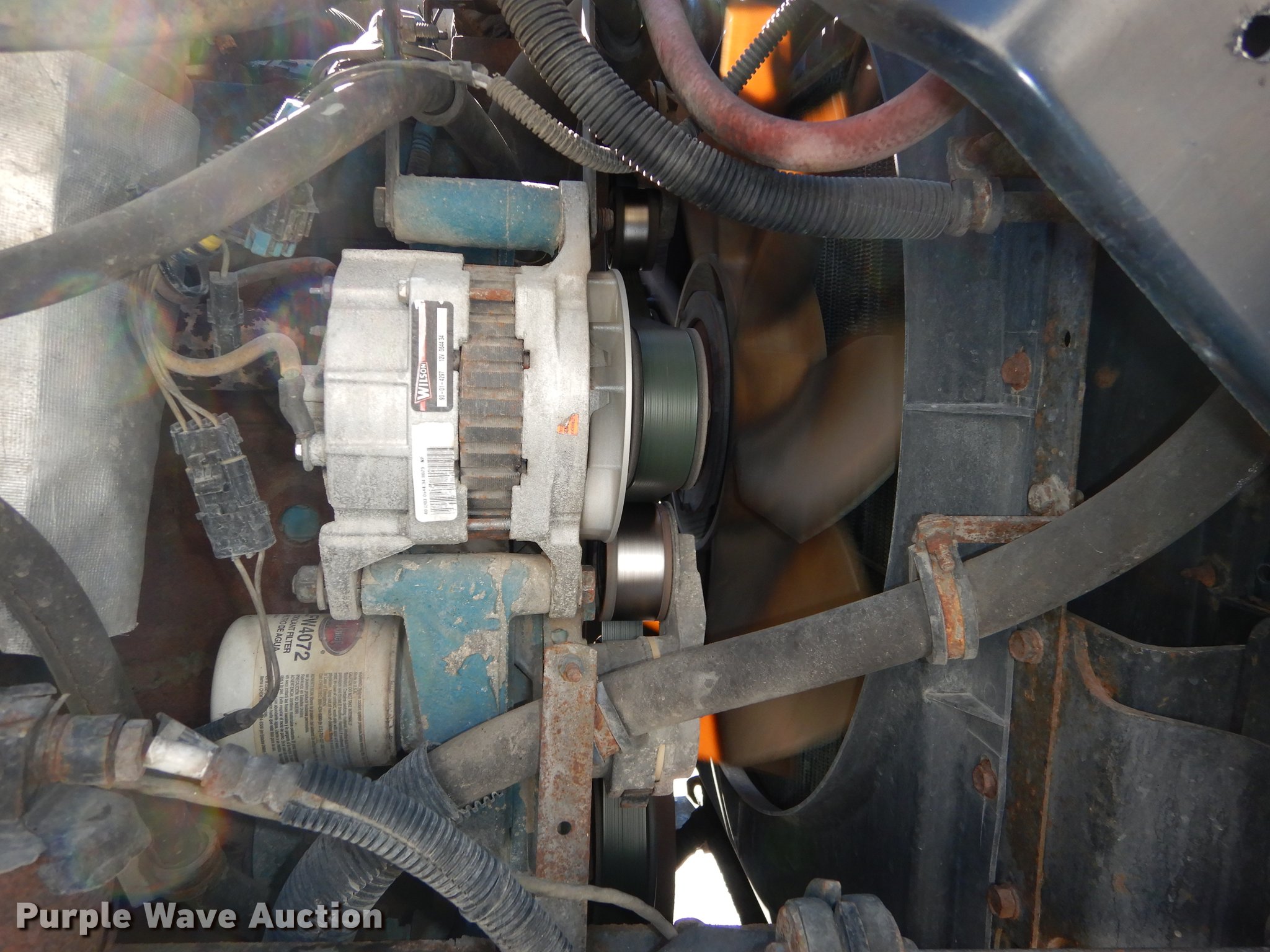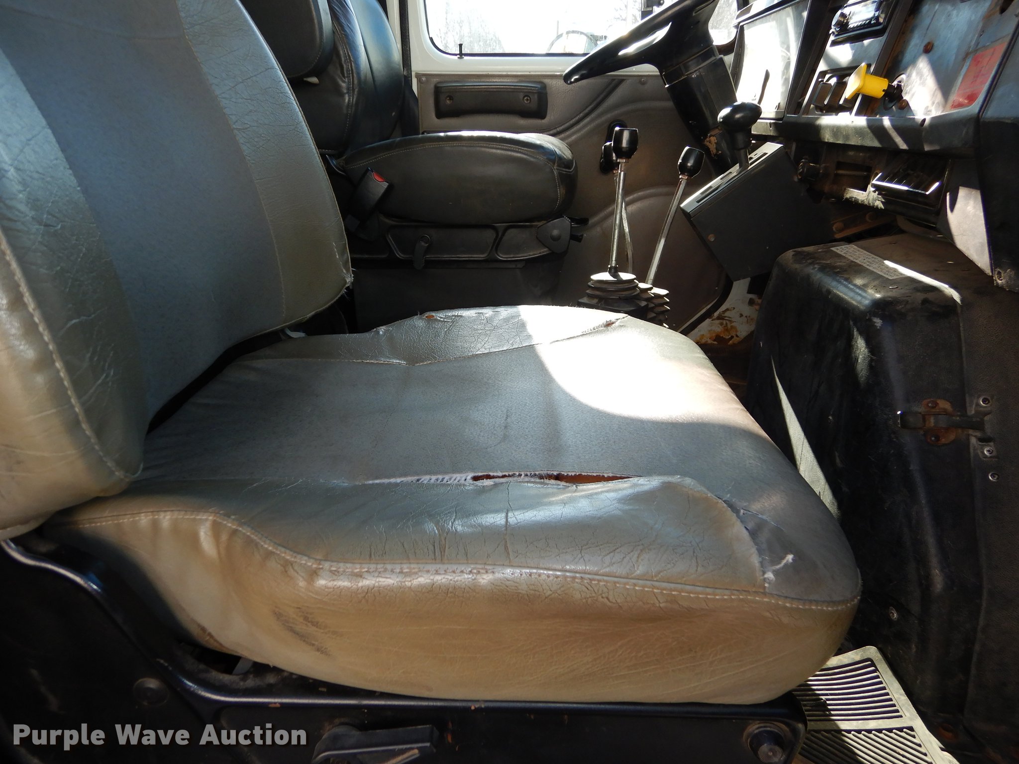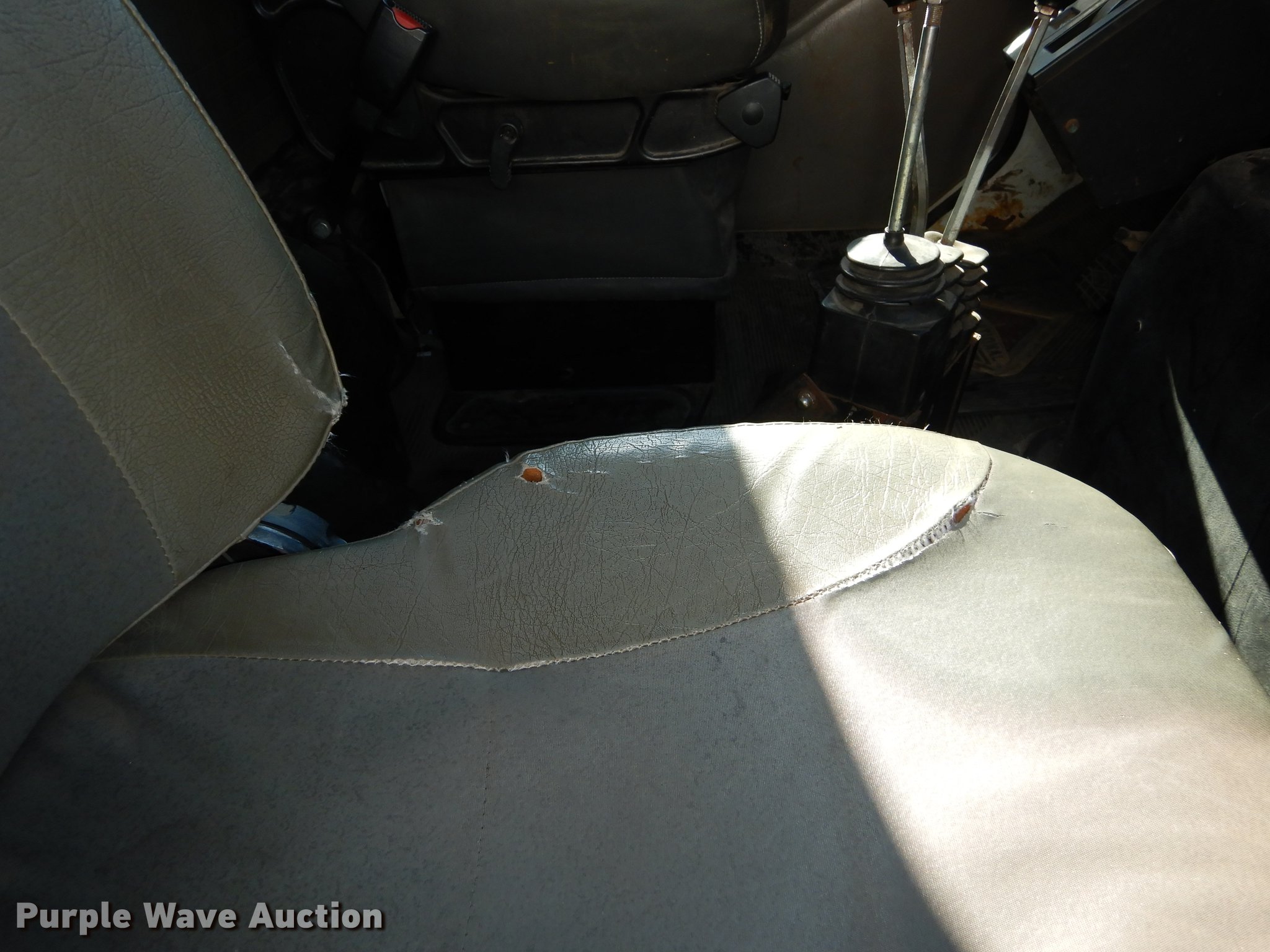 Purple Wave is selling a used Construction Dump Truck in Kansas. This item is a 2001 International 4900 dump truck with the following: 88,910 miles on odometer, 9,500 hours on meter, International DT466E 7.6L L6 turbo diesel engine, Automatic transmission, Inter-axle differential lock, Tandem axle, Power divider lock switch, AC and heat, Cruise, AM/FM/CD, Heated mirrors, Air suspension seat, Block heater, Warren FL650-13 steel dump bed, 13'L x 8'W, 40" side height, Single ram hoist, Roll tarp, Air operated end gate, 11/13 cu.yd. capacity, Snow plow brackets, Single fuel tank, Front tow hooks, Double wall frame, Pintle hitch, Rear hydraulic connectors, Trailer wiring, Spring over walking beam suspension, Air brakes, 11R22.5 tires, GVWR 47,220 lbs, FAWR 13,220 lbs, RAWR 34,000 lbs, Intermittent engine hesitation, Non-operational AC, Exterior frame wall cracked, Instrument cluster operates intermittently, Battery weak