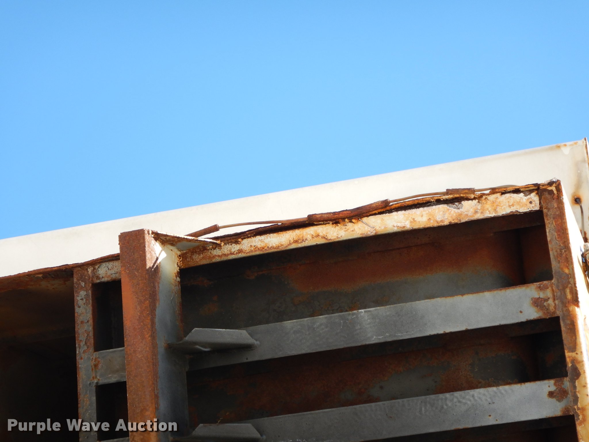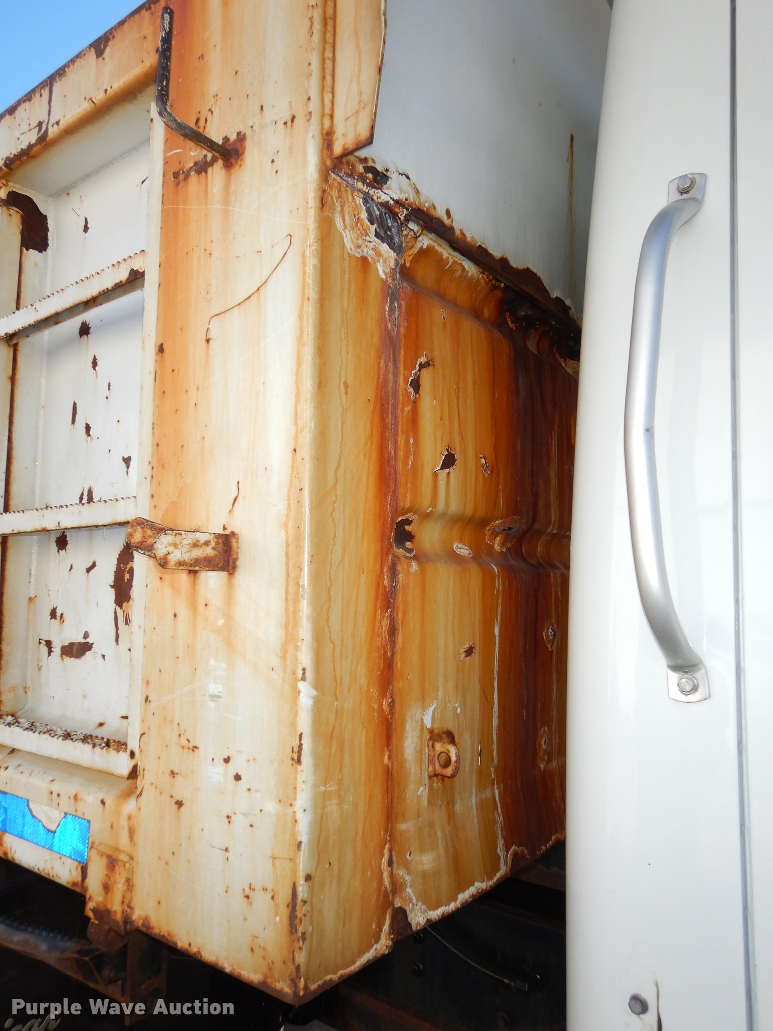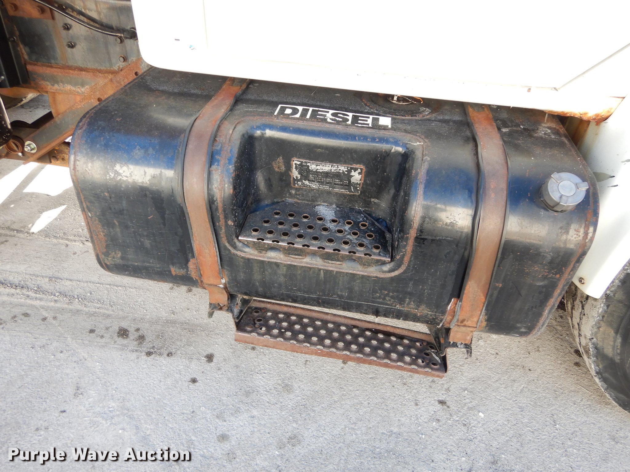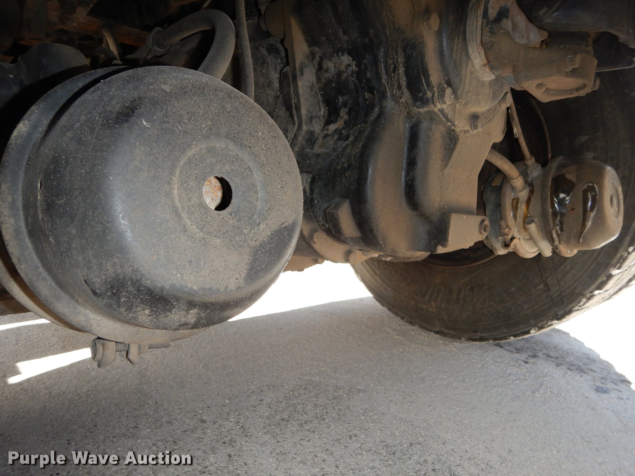 Purple Wave is selling a used Construction Dump Truck in Kansas. This item is a 2001 International 4900 dump truck with the following: 88,910 miles on odometer, 9,500 hours on meter, International DT466E 7.6L L6 turbo diesel engine, Automatic transmission, Inter-axle differential lock, Tandem axle, Power divider lock switch, AC and heat, Cruise, AM/FM/CD, Heated mirrors, Air suspension seat, Block heater, Warren FL650-13 steel dump bed, 13'L x 8'W, 40" side height, Single ram hoist, Roll tarp, Air operated end gate, 11/13 cu.yd. capacity, Snow plow brackets, Single fuel tank, Front tow hooks, Double wall frame, Pintle hitch, Rear hydraulic connectors, Trailer wiring, Spring over walking beam suspension, Air brakes, 11R22.5 tires, GVWR 47,220 lbs, FAWR 13,220 lbs, RAWR 34,000 lbs, Intermittent engine hesitation, Non-operational AC, Exterior frame wall cracked, Instrument cluster operates intermittently, Battery weak