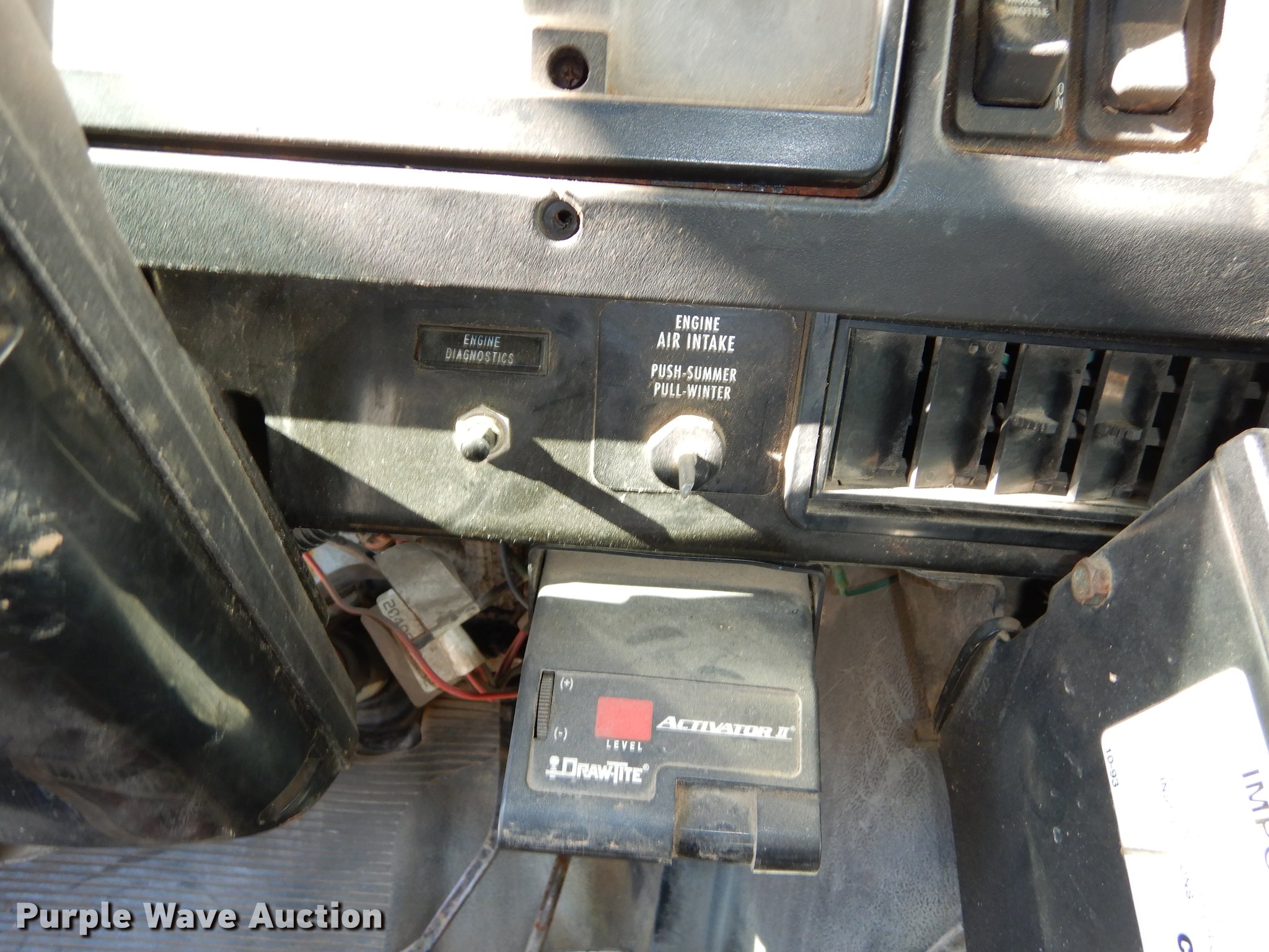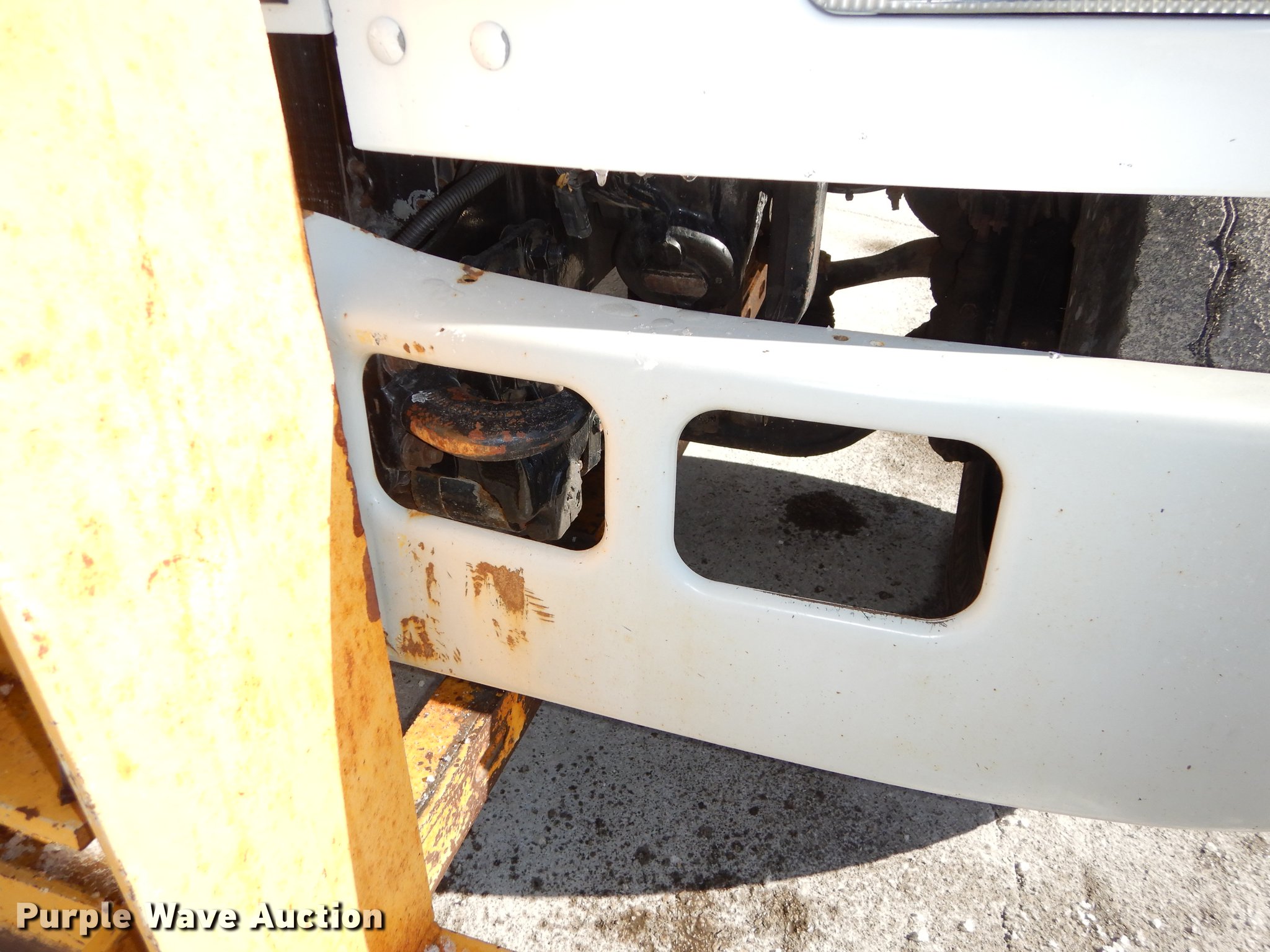 2001 International 4900 dump truck. 88,910 miles on odometer, 9,500 hours on meter, International DT466E 7.6L L6 turbo diesel engine, Automatic transmission, Inter-axle differential lock, Tandem axle, Power divider lock switch, AC and heat, Cruise, AM/FM/CD, Heated mirrors, Air suspension seat, Block heater, Warren FL650-13 steel dump bed 13'L x 8'W, 40" side height, Single ram hoist, Roll tarp, Air operated end gate, 11/13 cu.yd. capacity, Snow plow brackets, Single fuel tank, Front tow hooks, Double wall frame, Pintle hitch, Rear hydraulic connectors, Trailer wiring, Spring over walking beam suspension, Air brakes, 11R22.5 tires, GVWR 47,220 lbs, FAWR 13,220 lbs, RAWR 34,000 lbs, Intermittent engine hesitation, Non-operational AC, Exterior frame wall cracked, Instrument cluster operates intermittently, Battery weak. Kansas title. 1HTSHAAR91H351435. Merriam, KS 66203