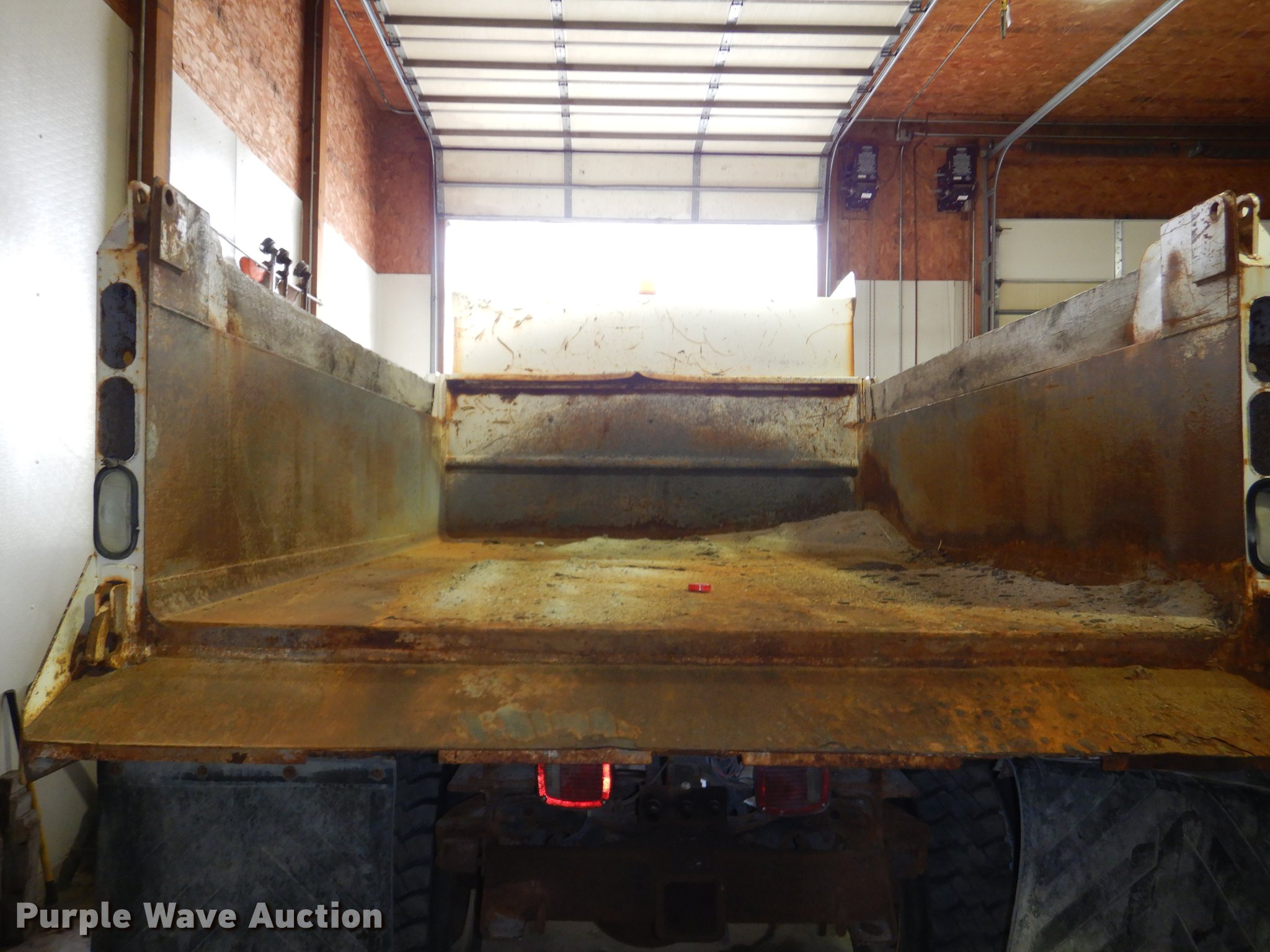 Purple Wave is selling a used Construction Dump Truck in Kansas. This item is a 2005 International 7300 dump truck with the following: 47,851 miles on odometer, International DT466 7.6L L6 diesel engine, Automatic transmission, Single axle, Front mounted PTO, AC and heat, Cruise, AM/FM/cassette, Air suspension seat, In-cab spreader controls, Strobe light, Warren steel dump bed, 10'L x 8'W, 22" side height, 8" side board height, Single ram hoist, Manual operated end gate, Front mounted PTO, Single fuel tank, Receiver hitch, 160" wheelbase, Spring suspension, Air brakes, 11R22.5 tires, GVWR 33,000 lbs, FAWR 12,000 lbs, RAWR 21,000 lbs, Unit wrecked, Batteries not included, Alternator locked up, Taillights missing, Unit# 14448